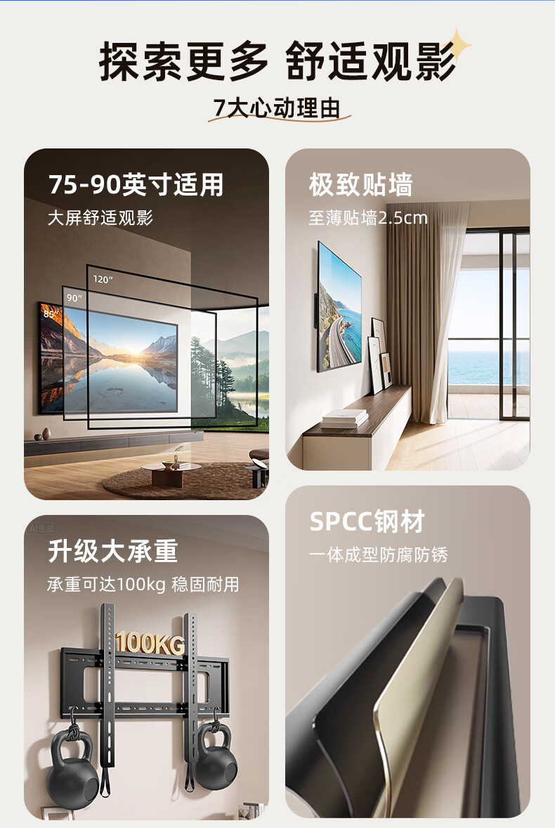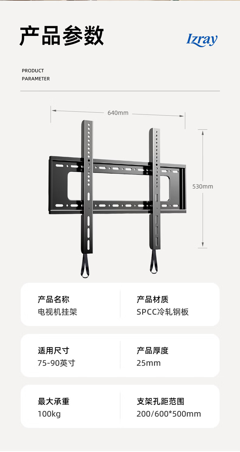 艾知瑞电视挂架(75-90英寸)加厚电视支架超薄贴墙电视架壁挂墙架子适用小米三星海信TCL雷鸟创维等