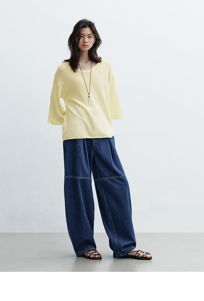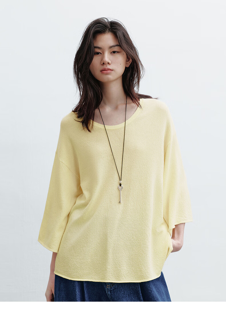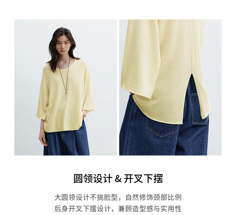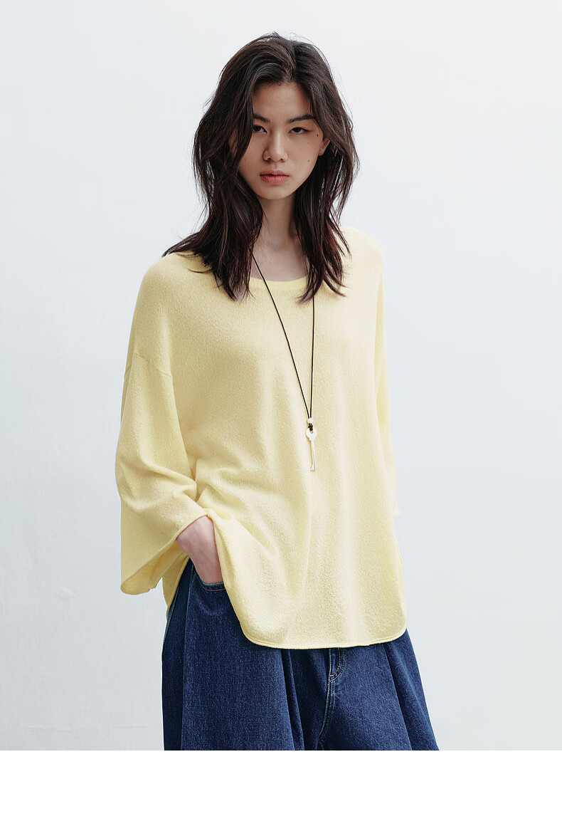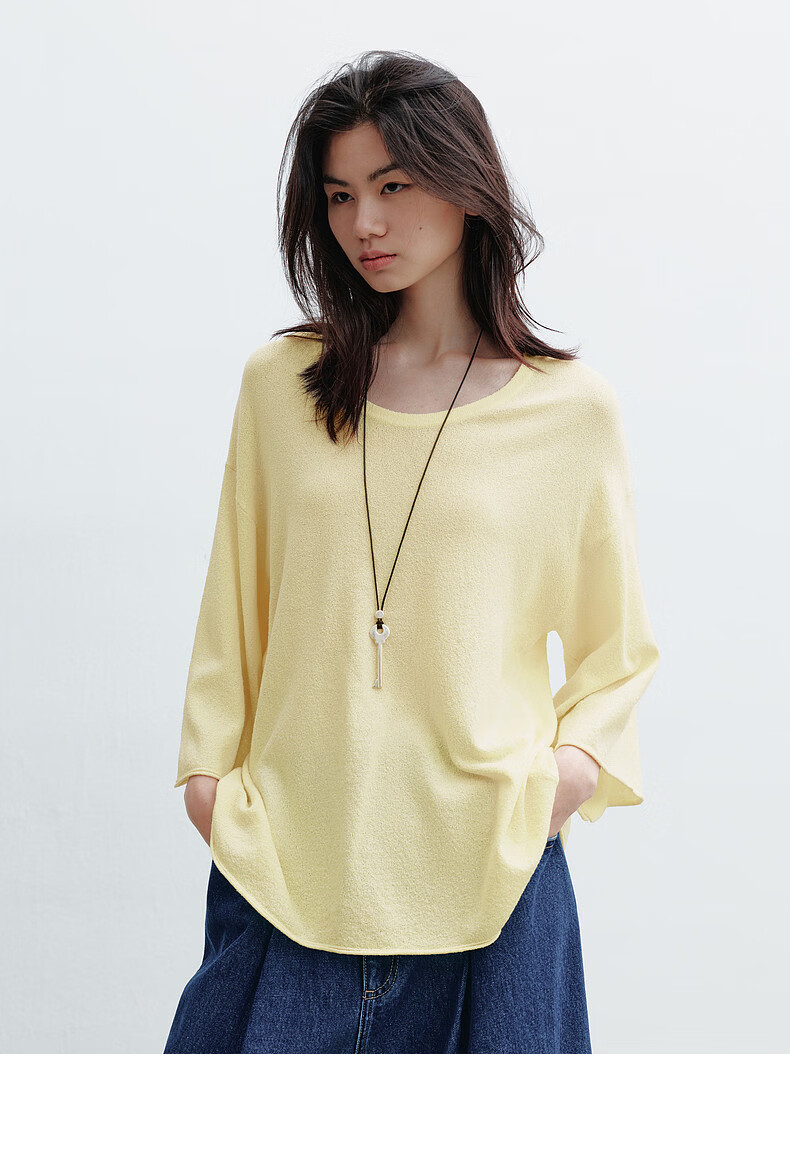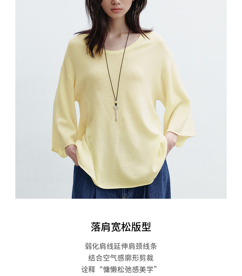 H's柠檬黄套头针织衫女26年春季新款高级感圆领落肩宽松内搭打底衫 柠檬奶黄色 M