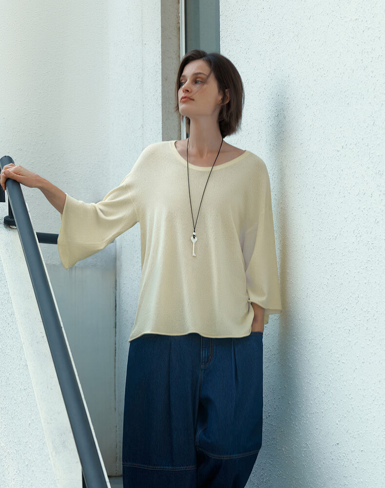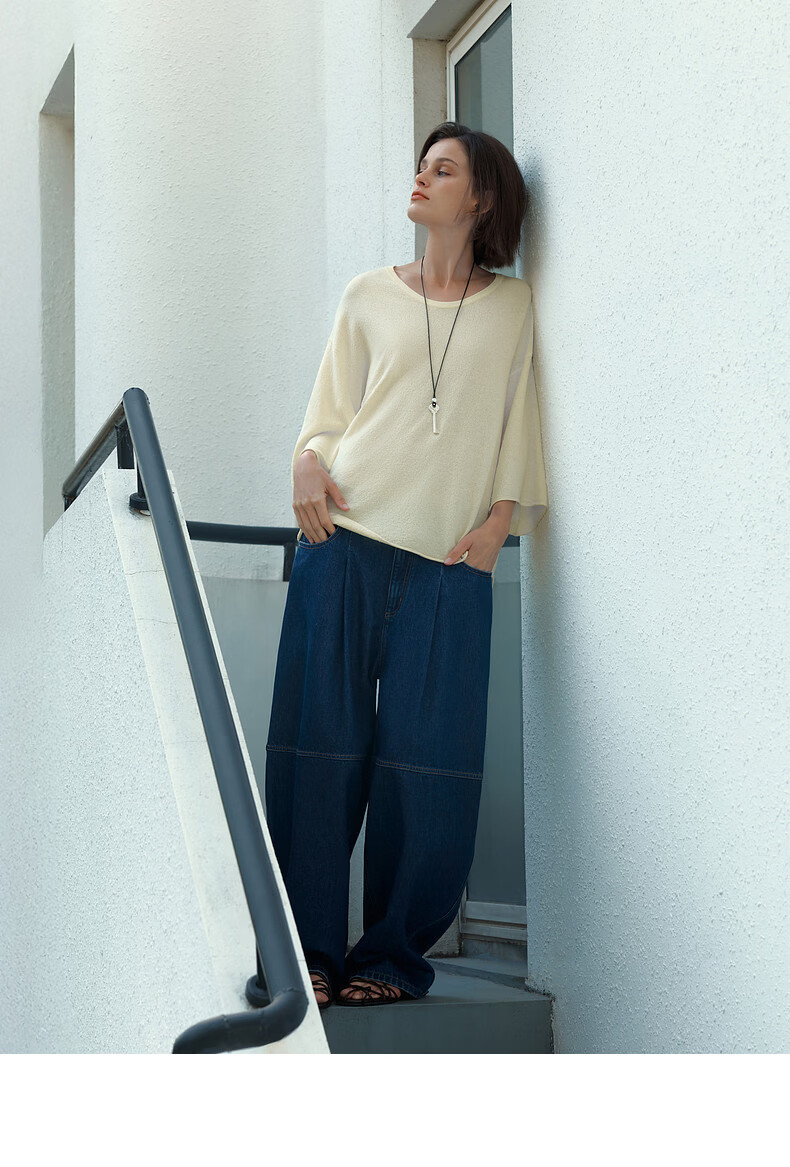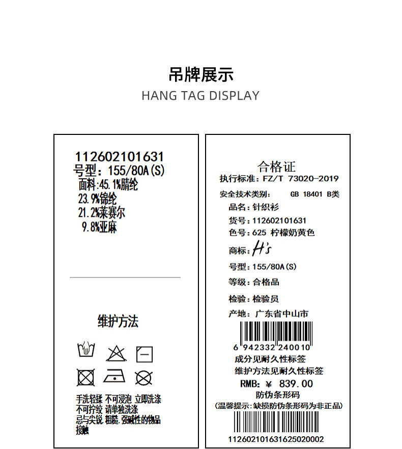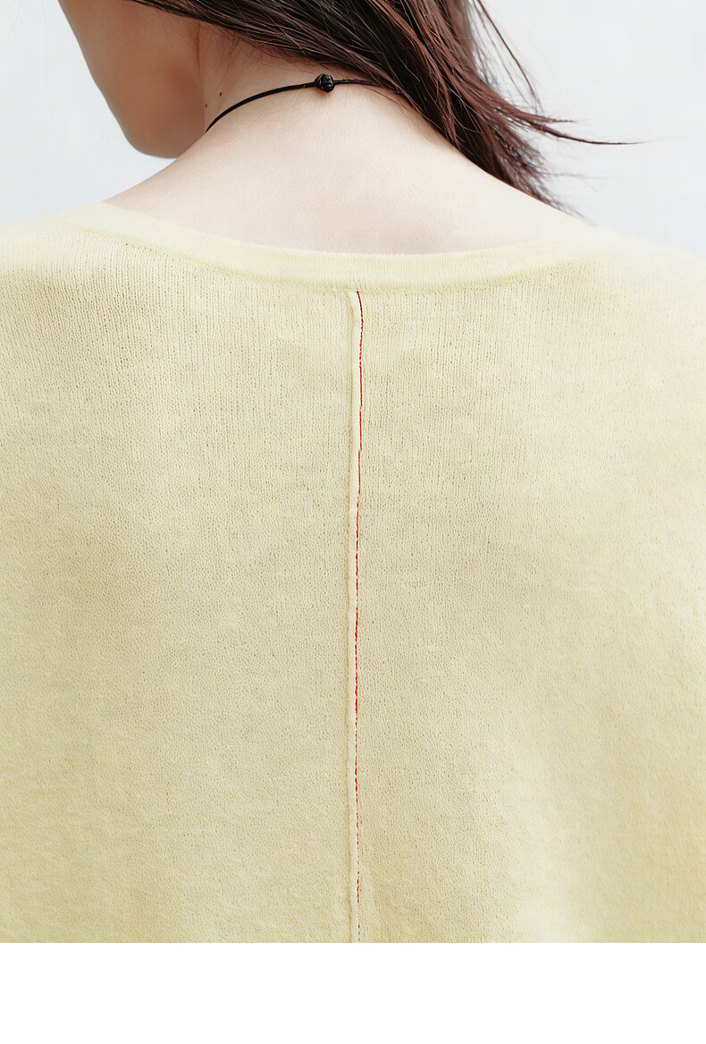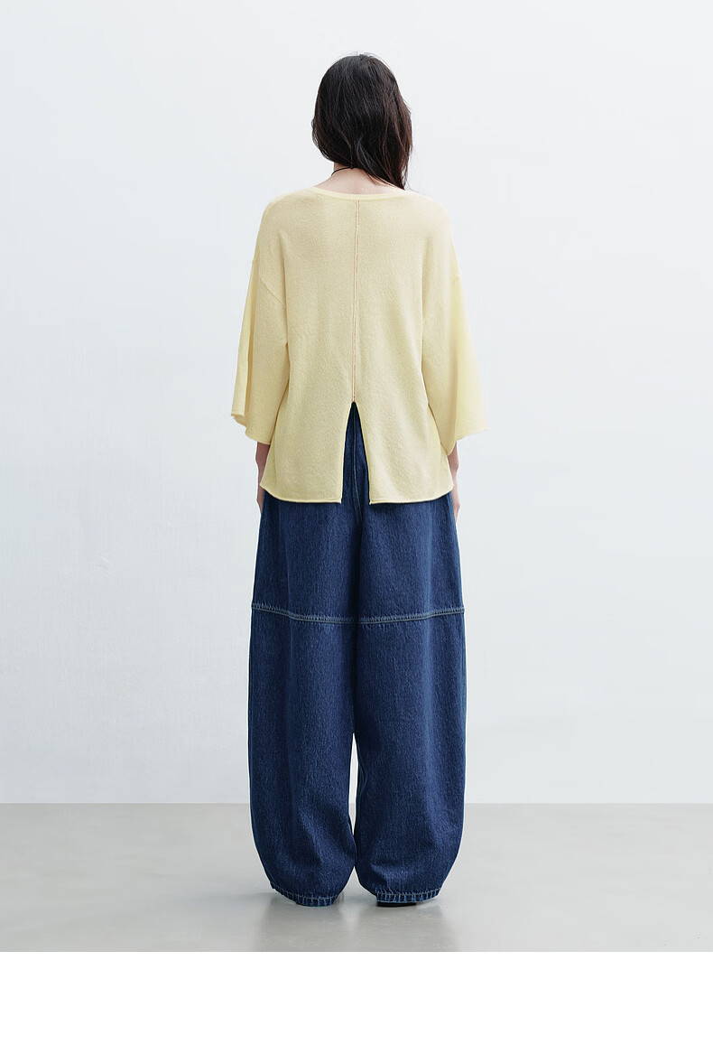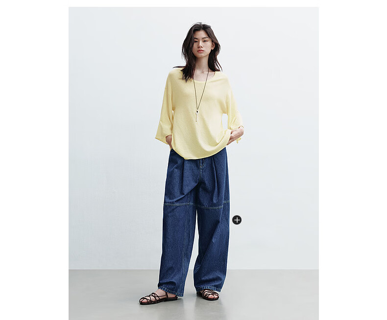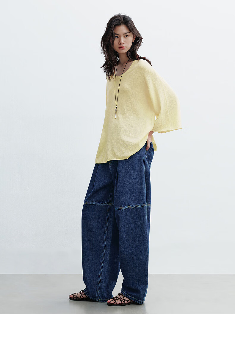 H's柠檬黄套头针织衫女26年春季新款高级感圆领落肩宽松内搭打底衫 柠檬奶黄色 M
