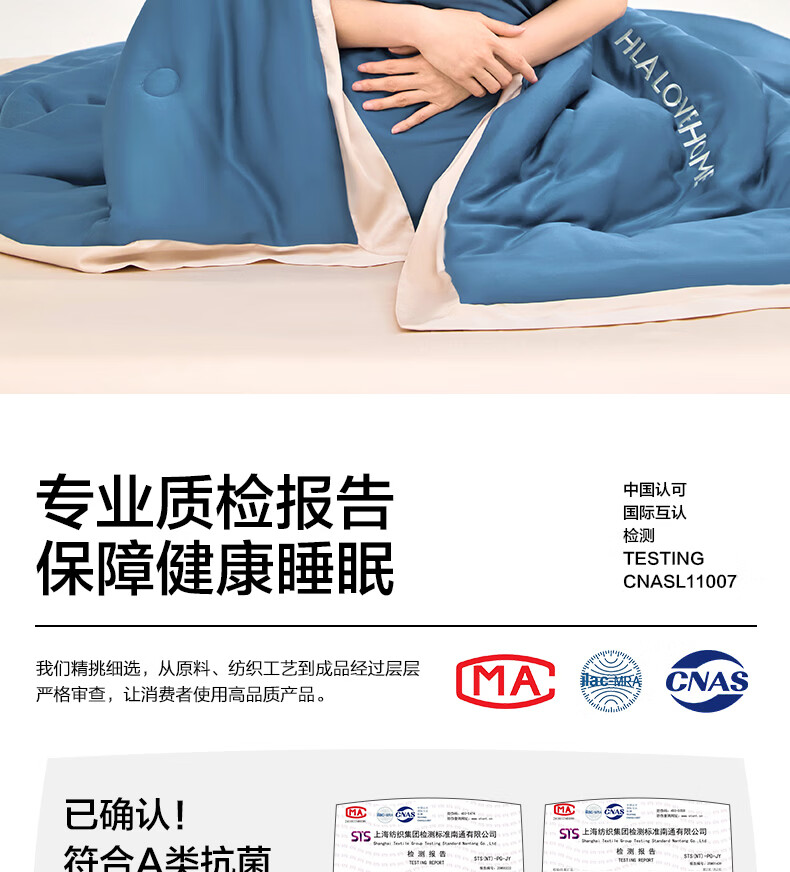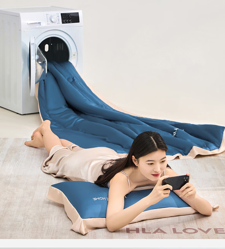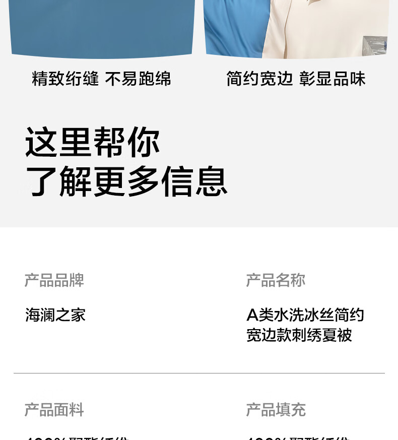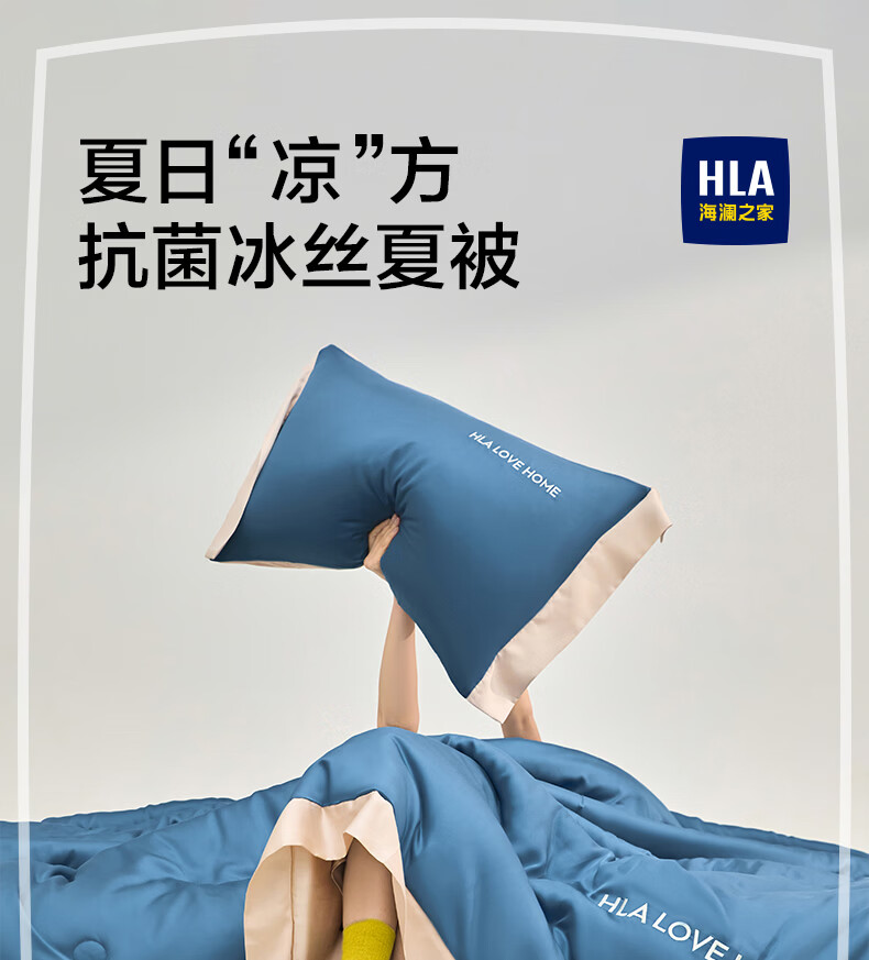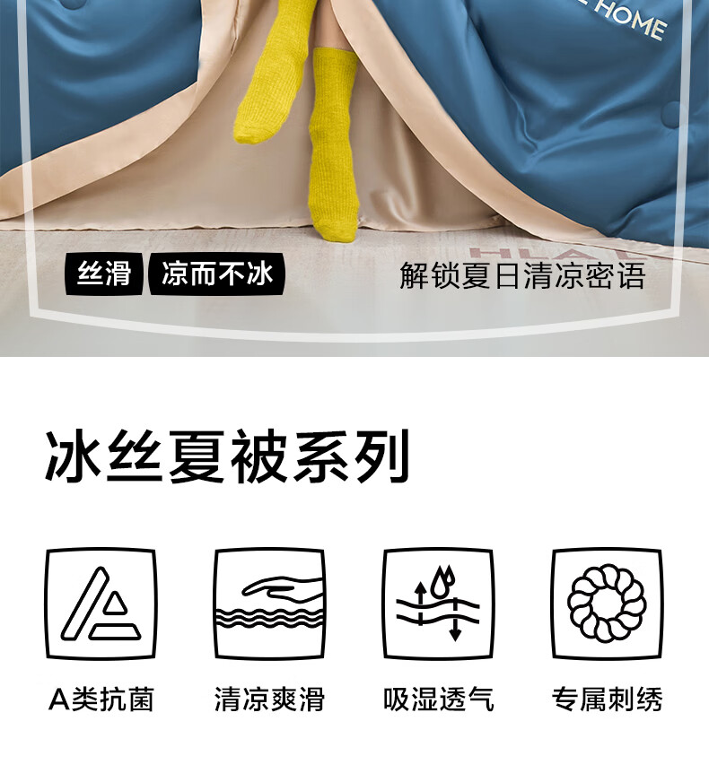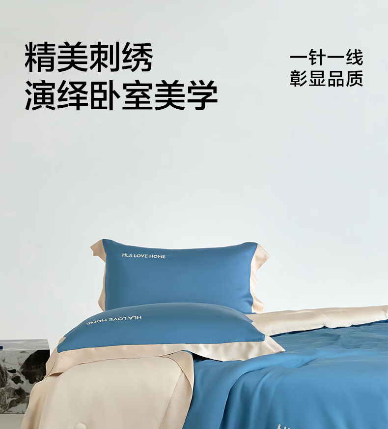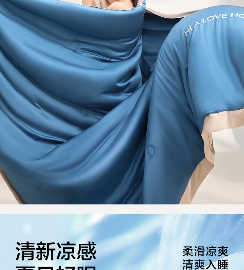 海澜之家(HLA)冰丝夏凉被空调被A类夏季可机洗夏天薄被芯刺绣家用单双人夏被子 宾利蓝+梧桐杏【水感柔软 丝滑触感】 单夏被150*200cm