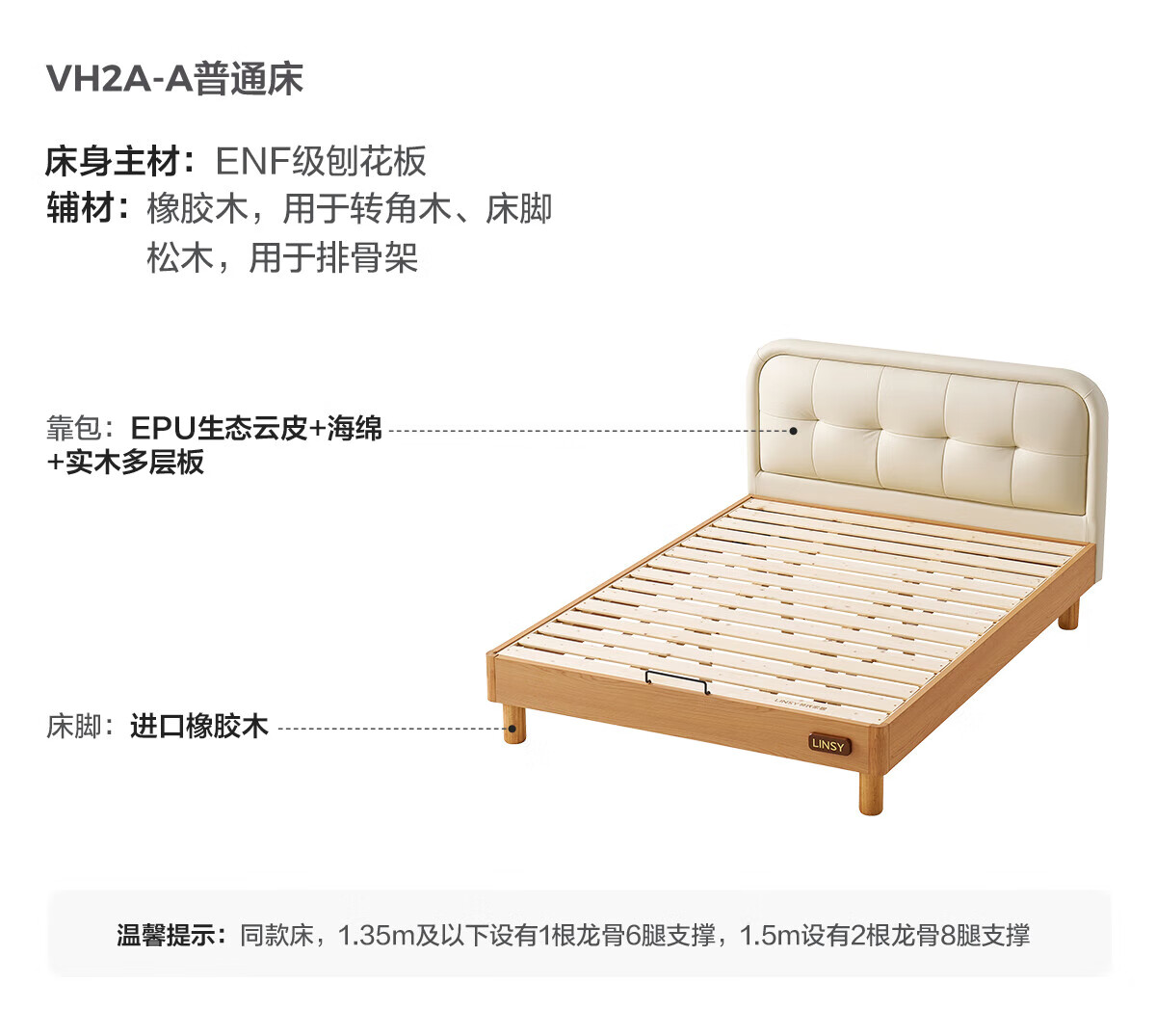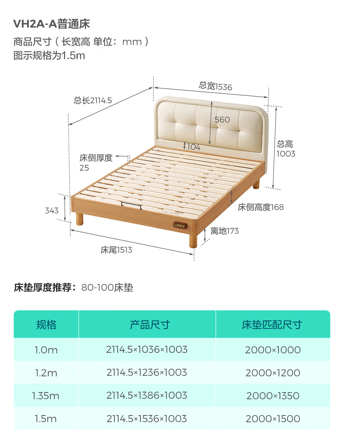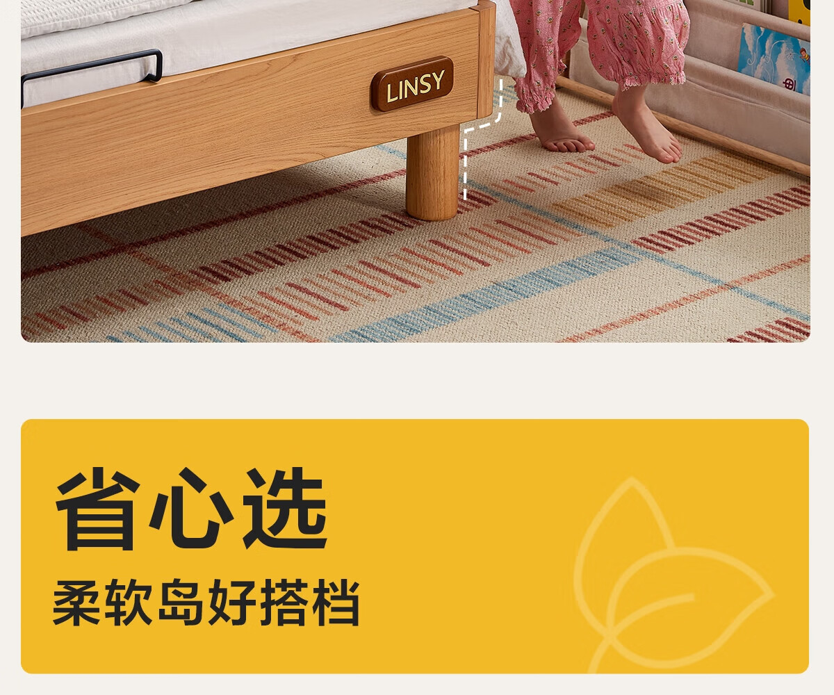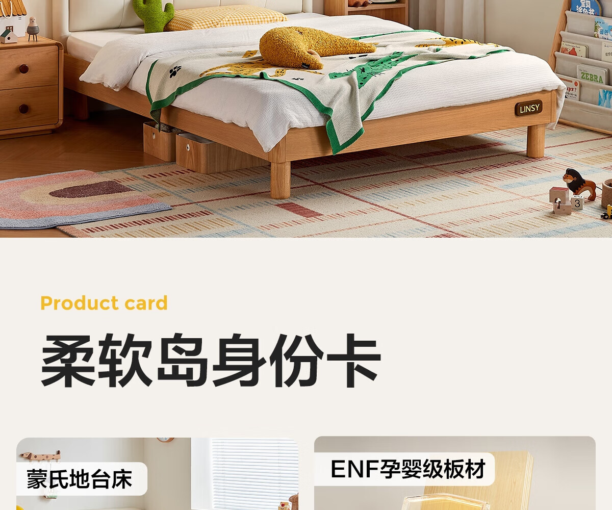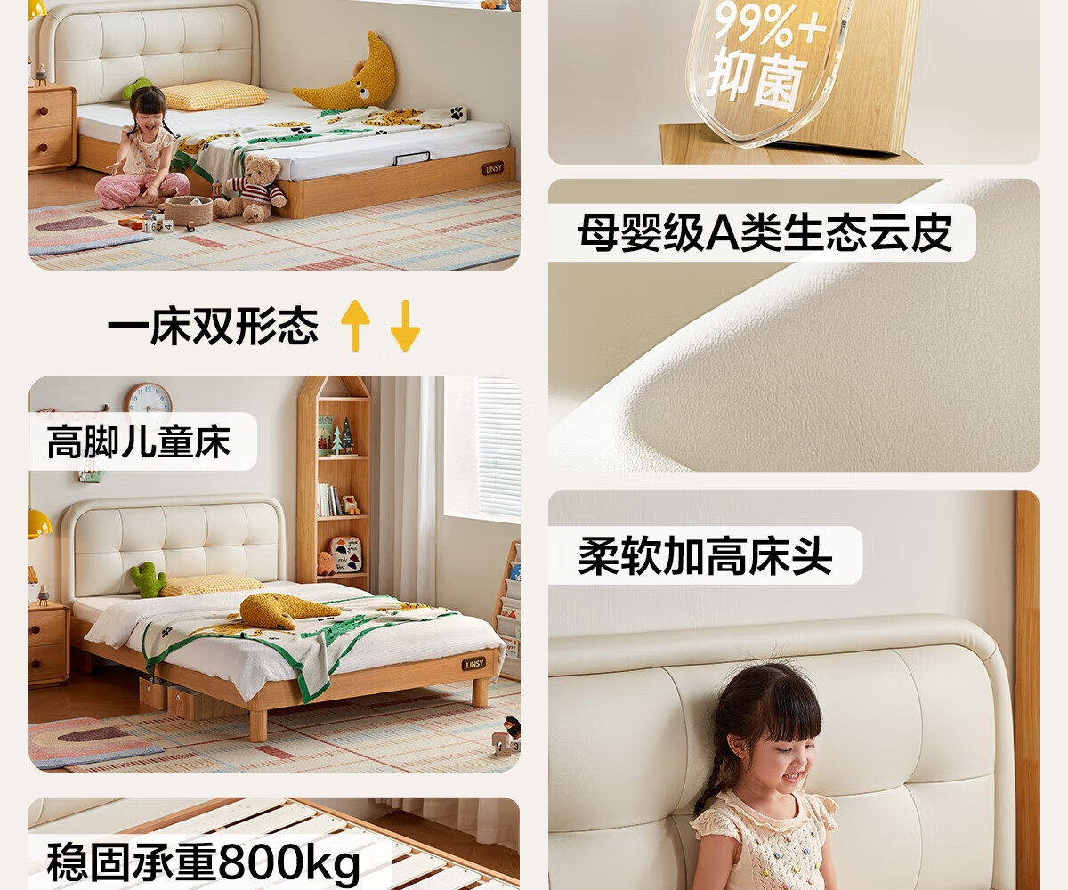 LINSY KIDS林氏家居儿童床卧室床1米2单人床软包床男孩女孩公主床VH2A 软包款+5cm椰棕垫 1.0*2.0