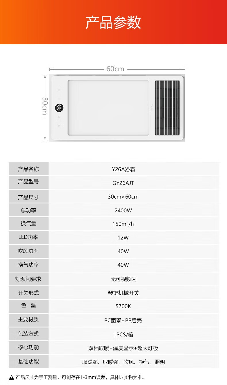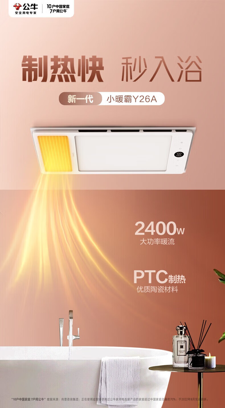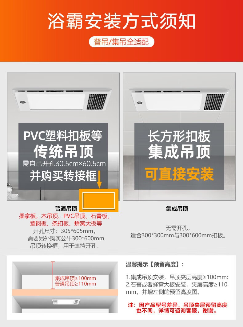 公牛风暖浴霸照明灯排气一体300x600卫生间浴室集成吊顶多功能暖风机 包安装【琴键开关+2600W】Y37A
