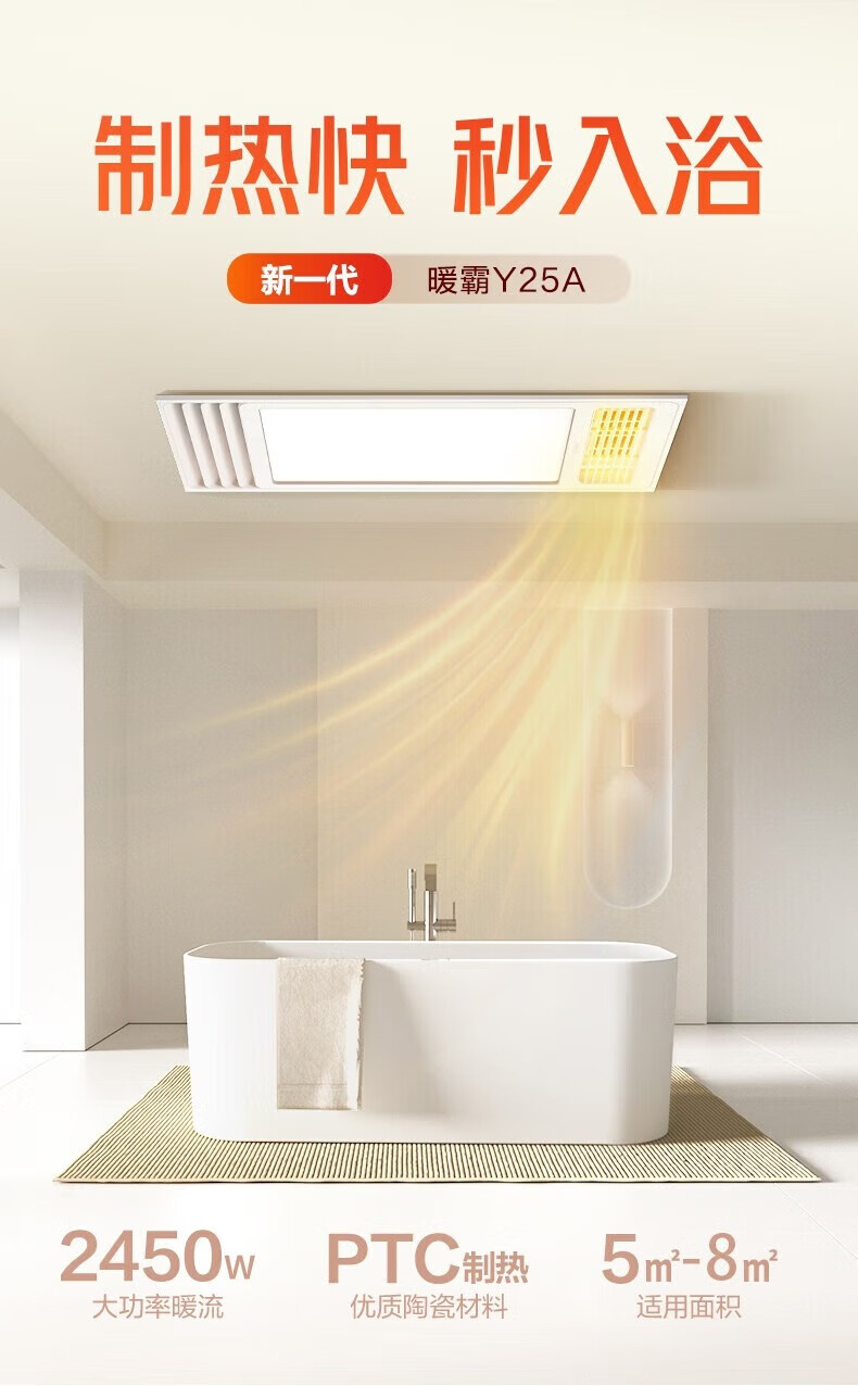 美的(Midea)浴霸暖风照明排气一体摆风速暖浴室取暖器卫生间灯集成吊顶Y5触摸
