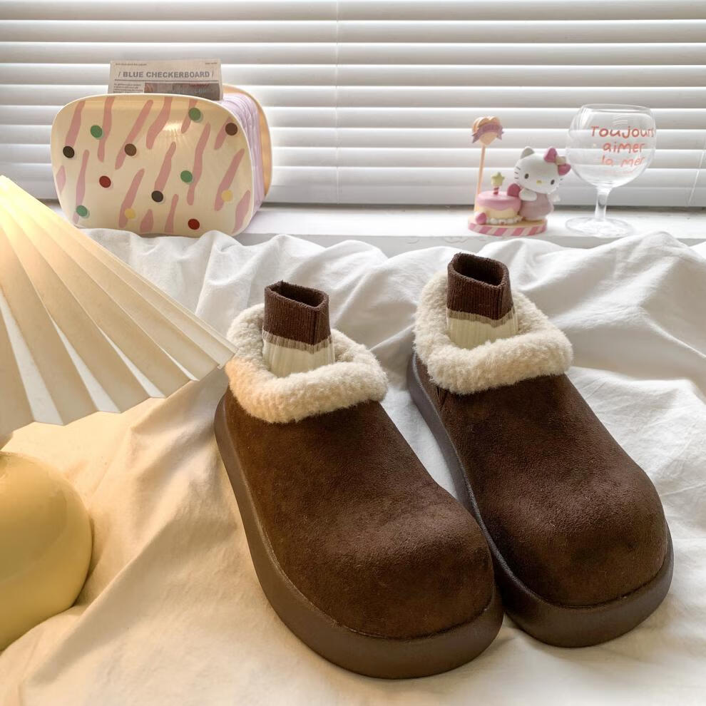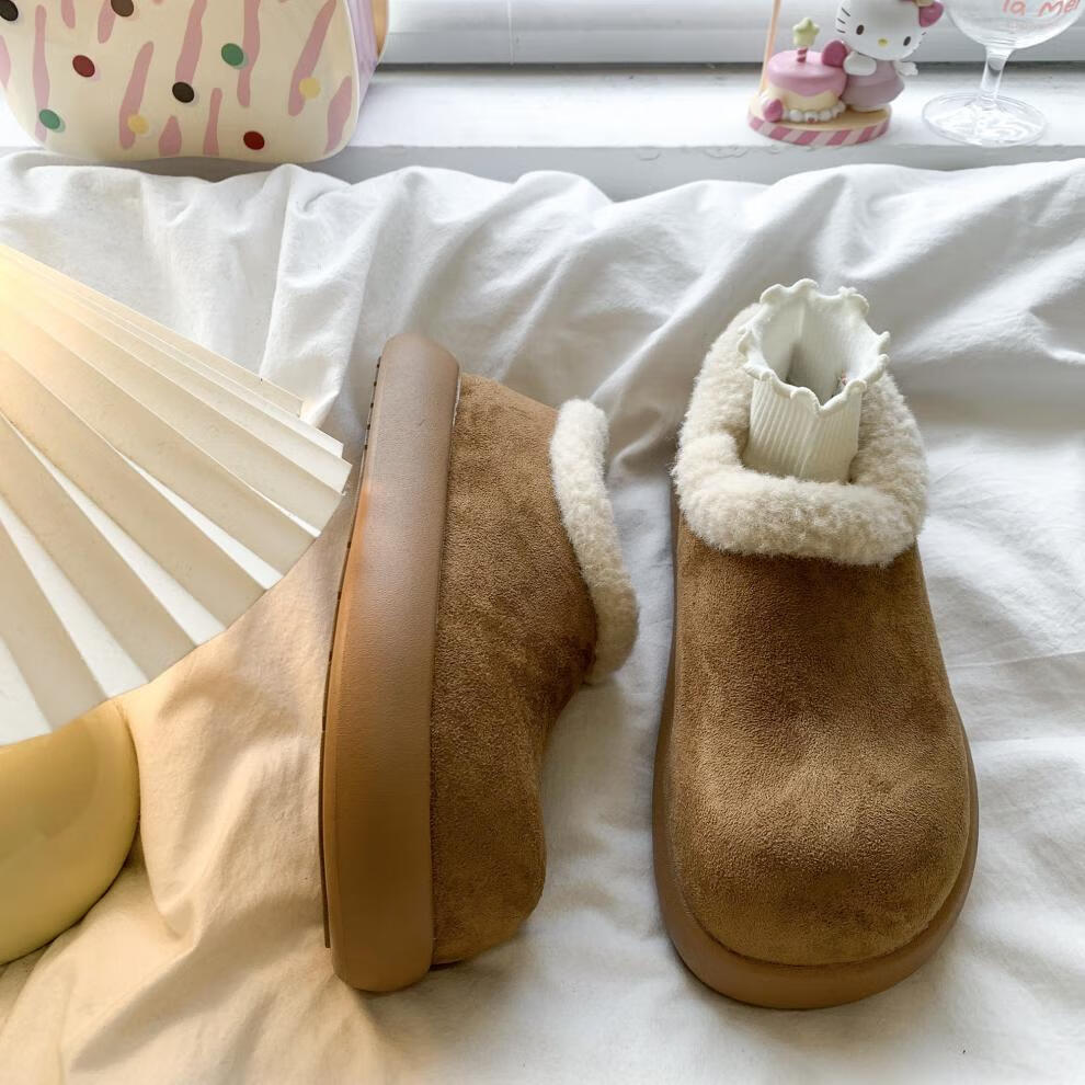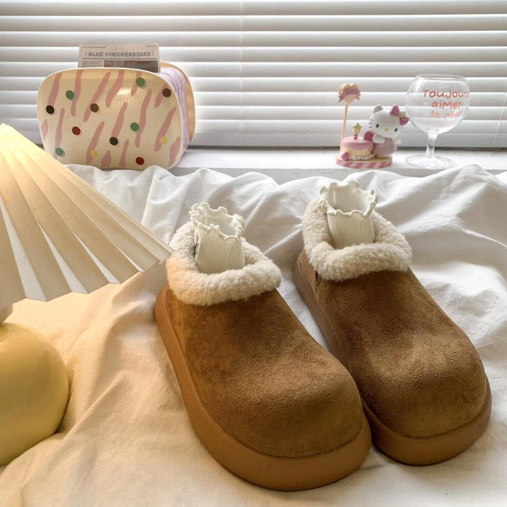 稻草人(MEXICAN)复古加绒小土豆勃肯鞋女款2025新款秋冬一脚蹬雪地靴厚底加绒棉鞋 棕色精品版 39