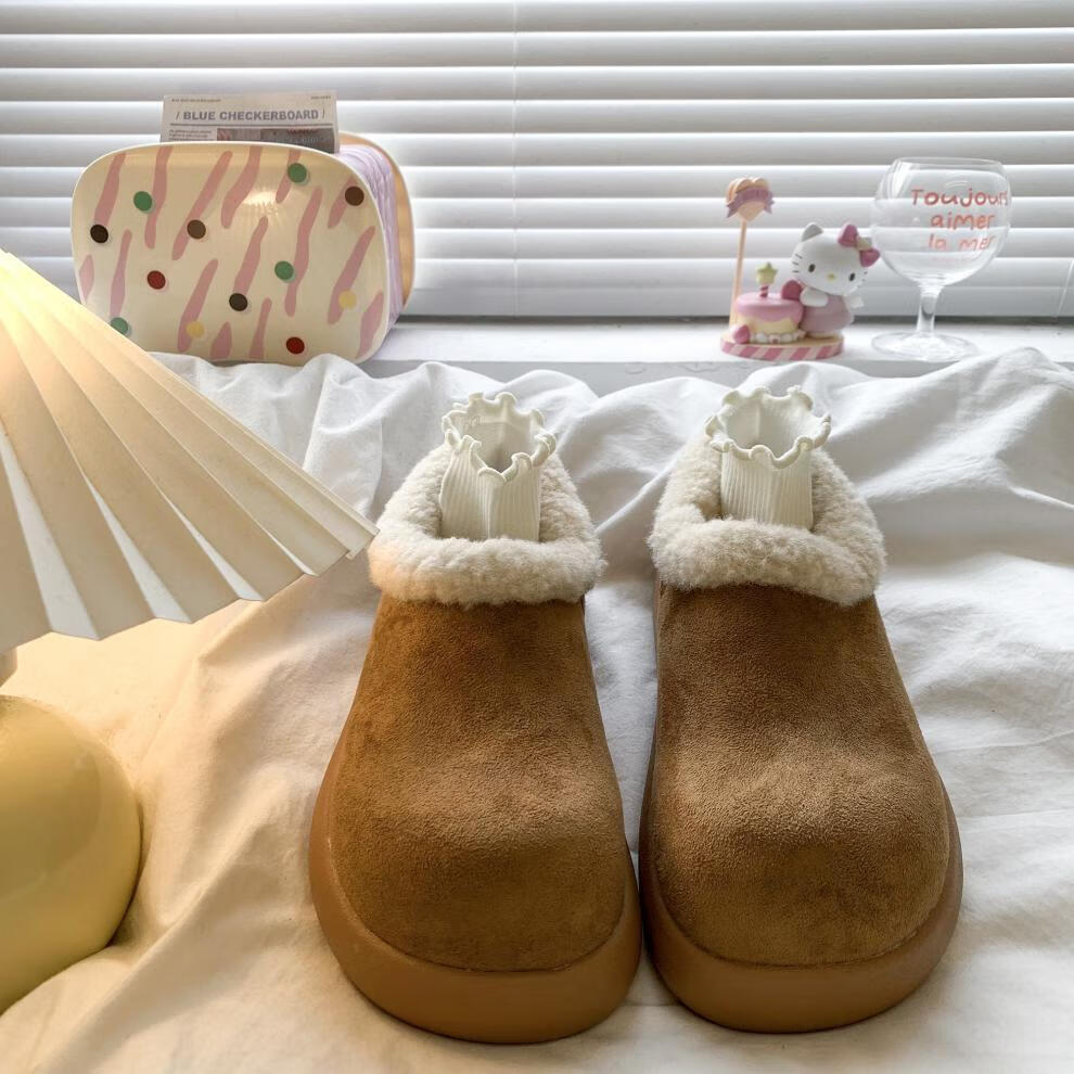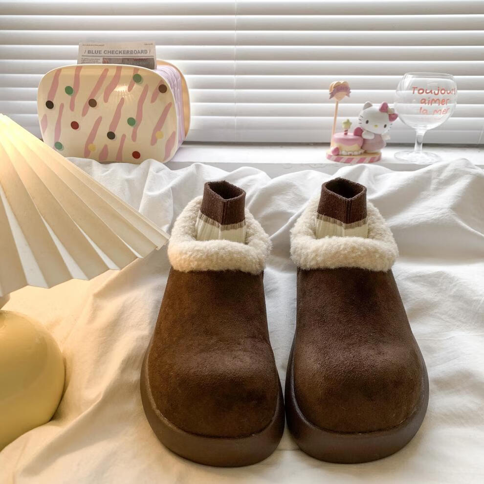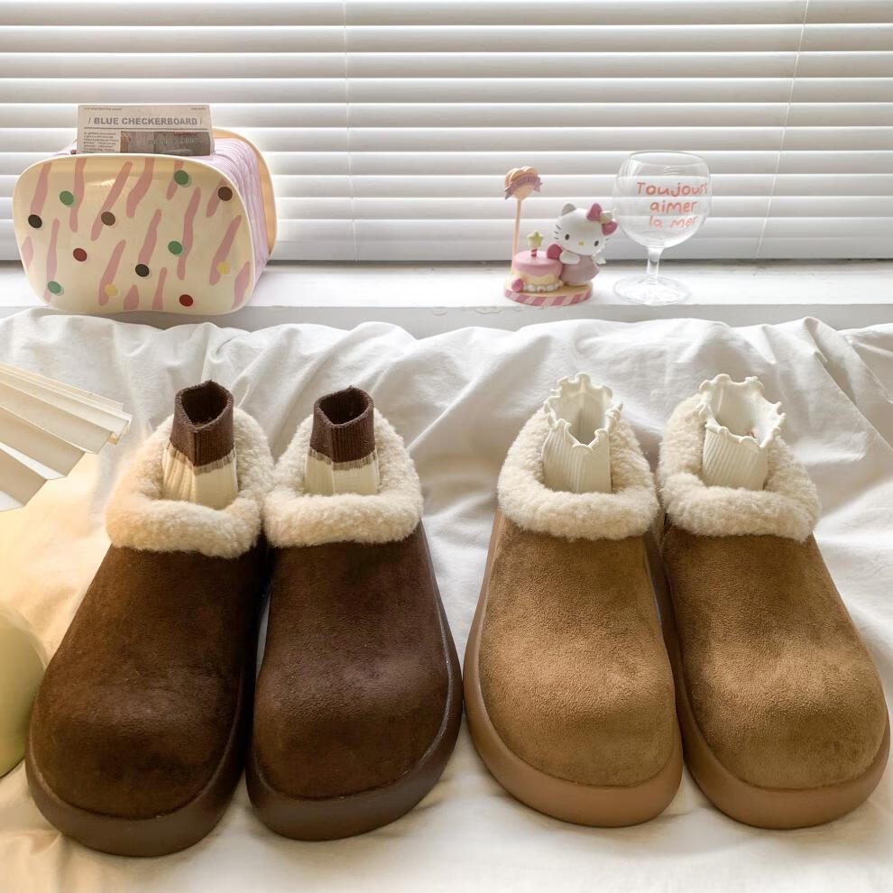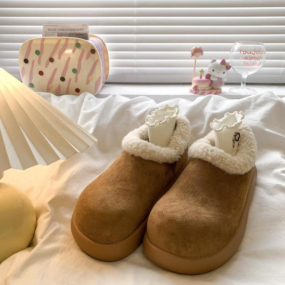 稻草人(MEXICAN)复古加绒小土豆勃肯鞋女款2025新款秋冬一脚蹬雪地靴厚底加绒棉鞋 棕色精品版 39