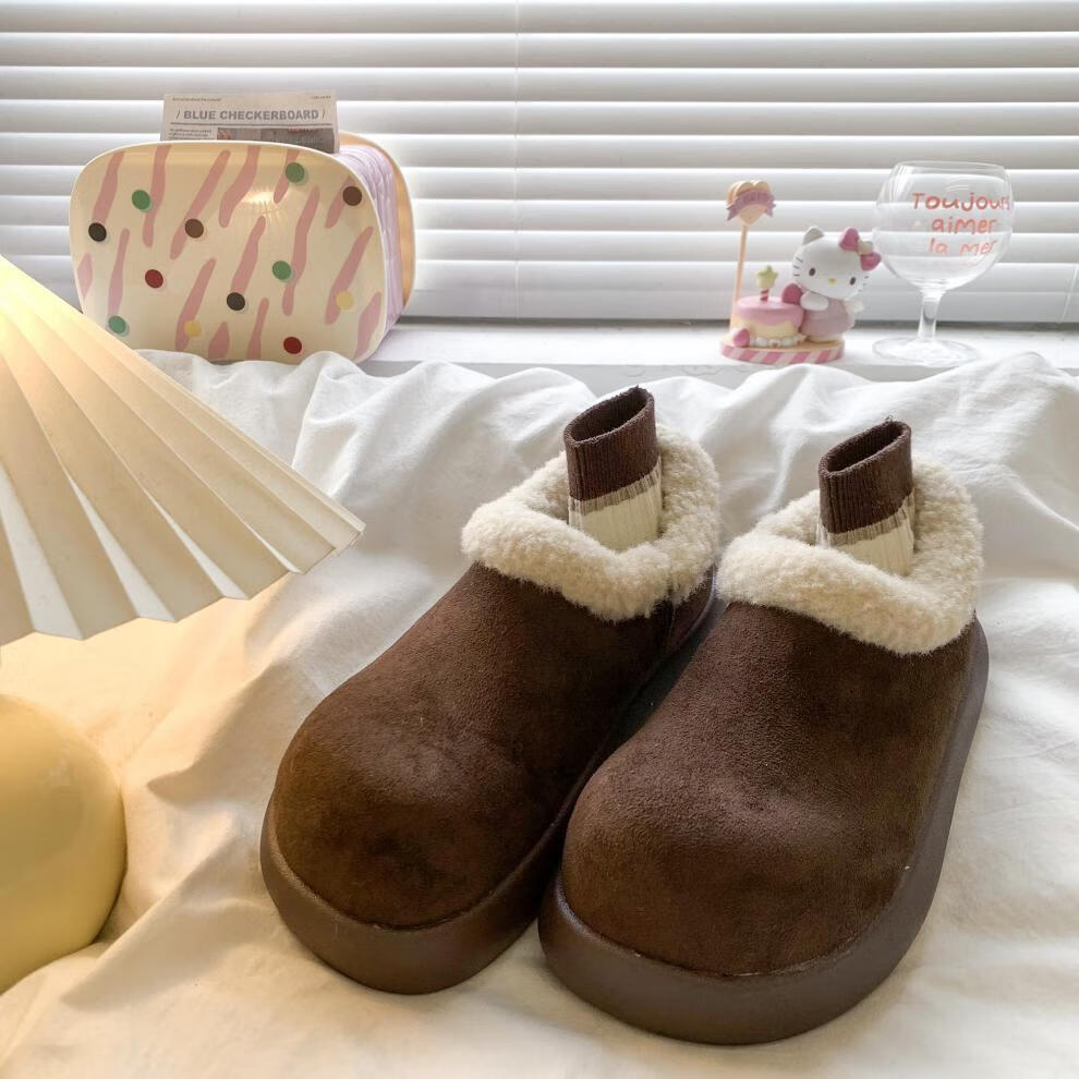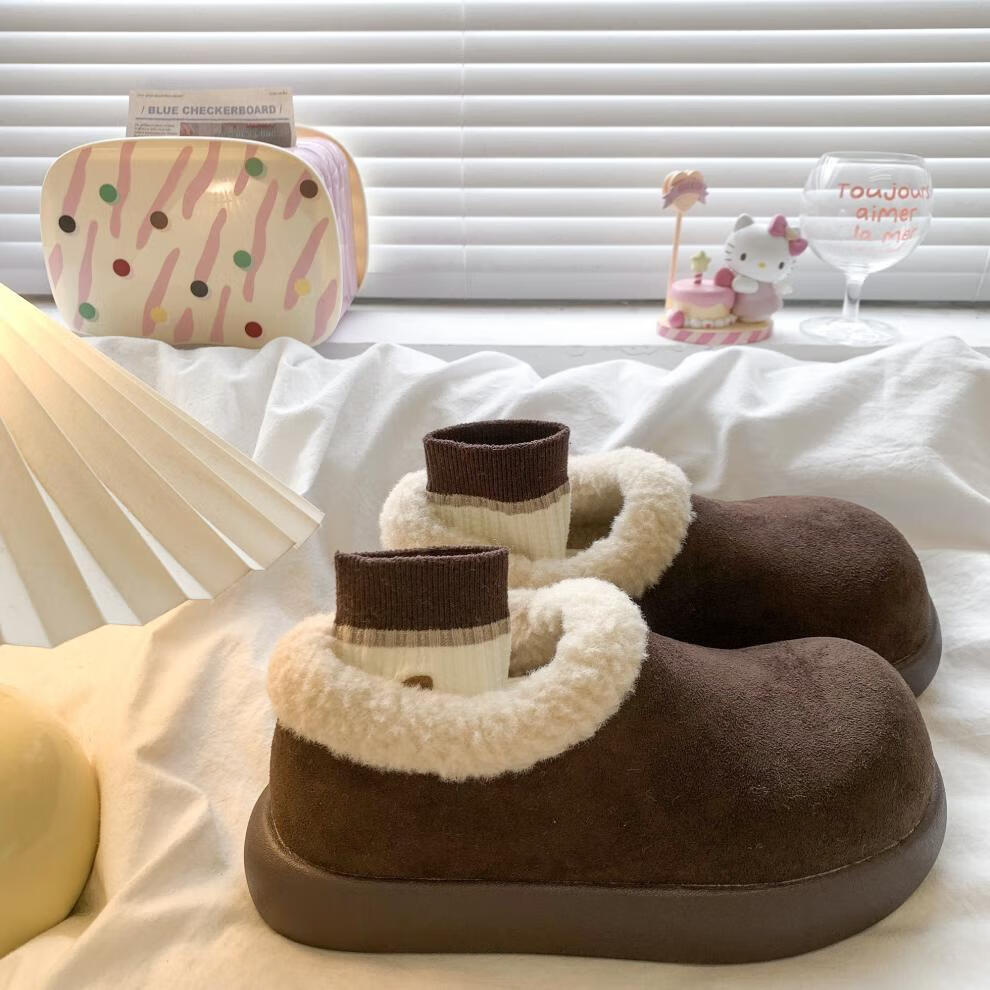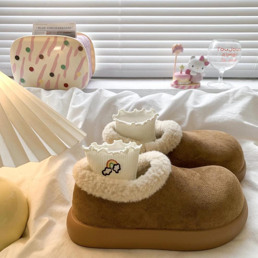 朴西加绒保暖可拆卸博肯棉拖鞋女冬室内居家防滑静音不掉毛情侣棉拖男 博肯棕 【防水防滑】 36-37 适合(35-36)