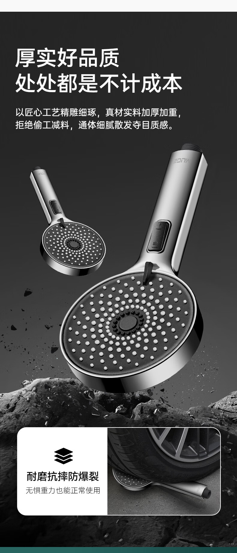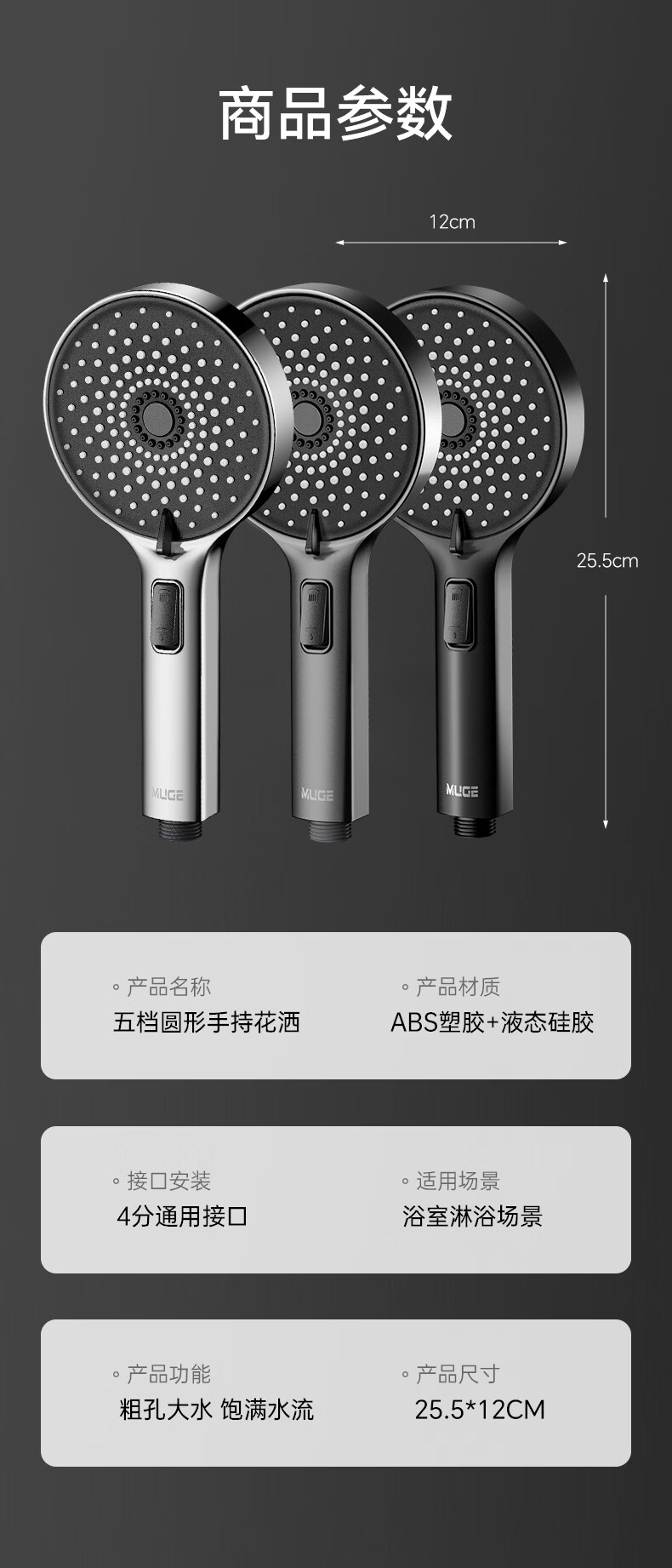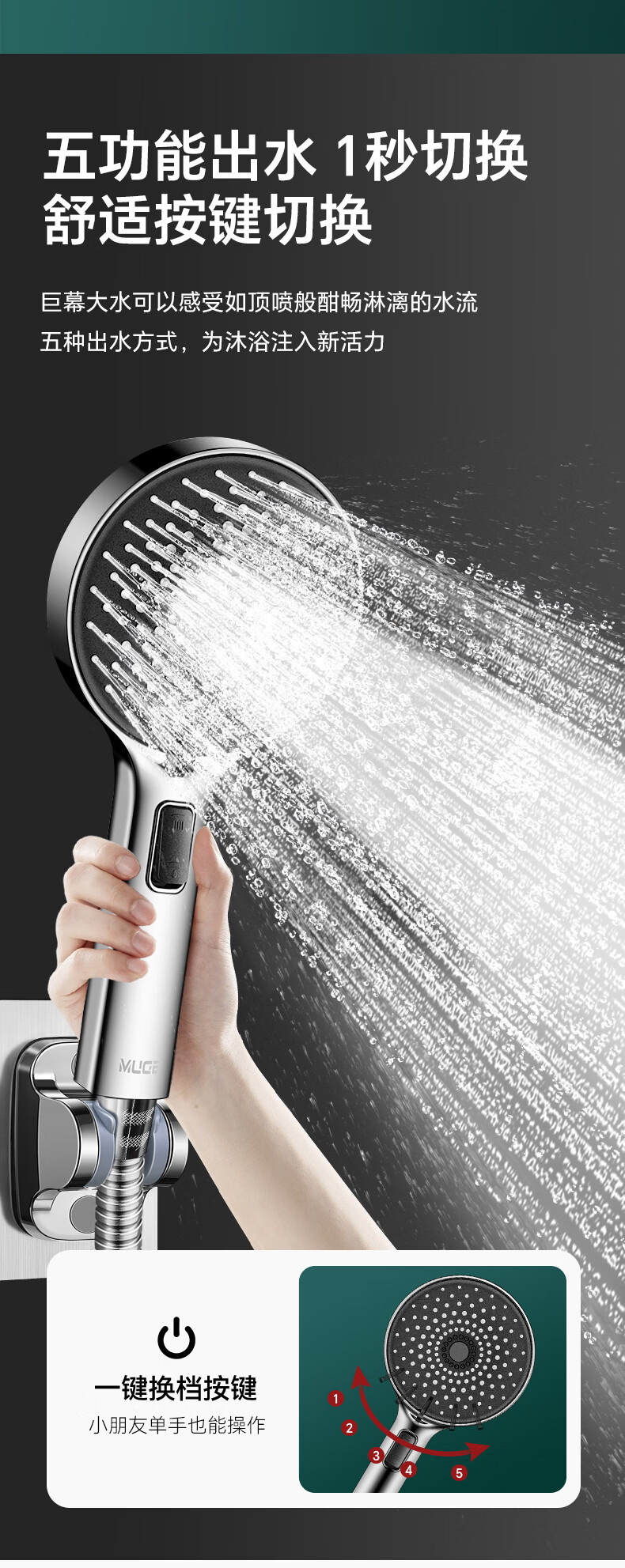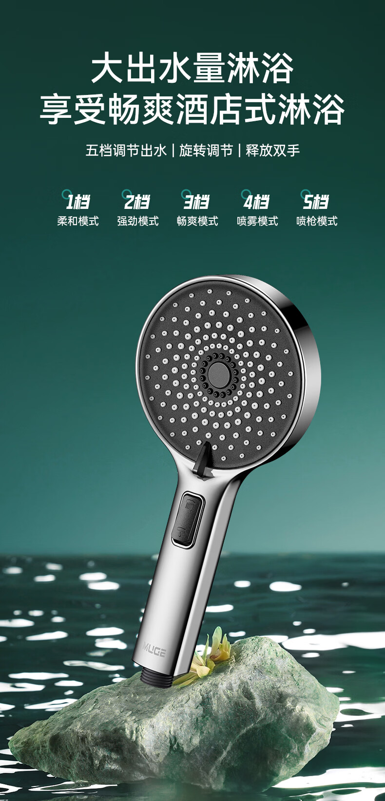 睦歌(MUGE)【德国】增压花洒淋浴喷头超强加压大出水卫浴淋浴头手持莲蓬头 五档涡轮增压【枪灰色】花洒喷头