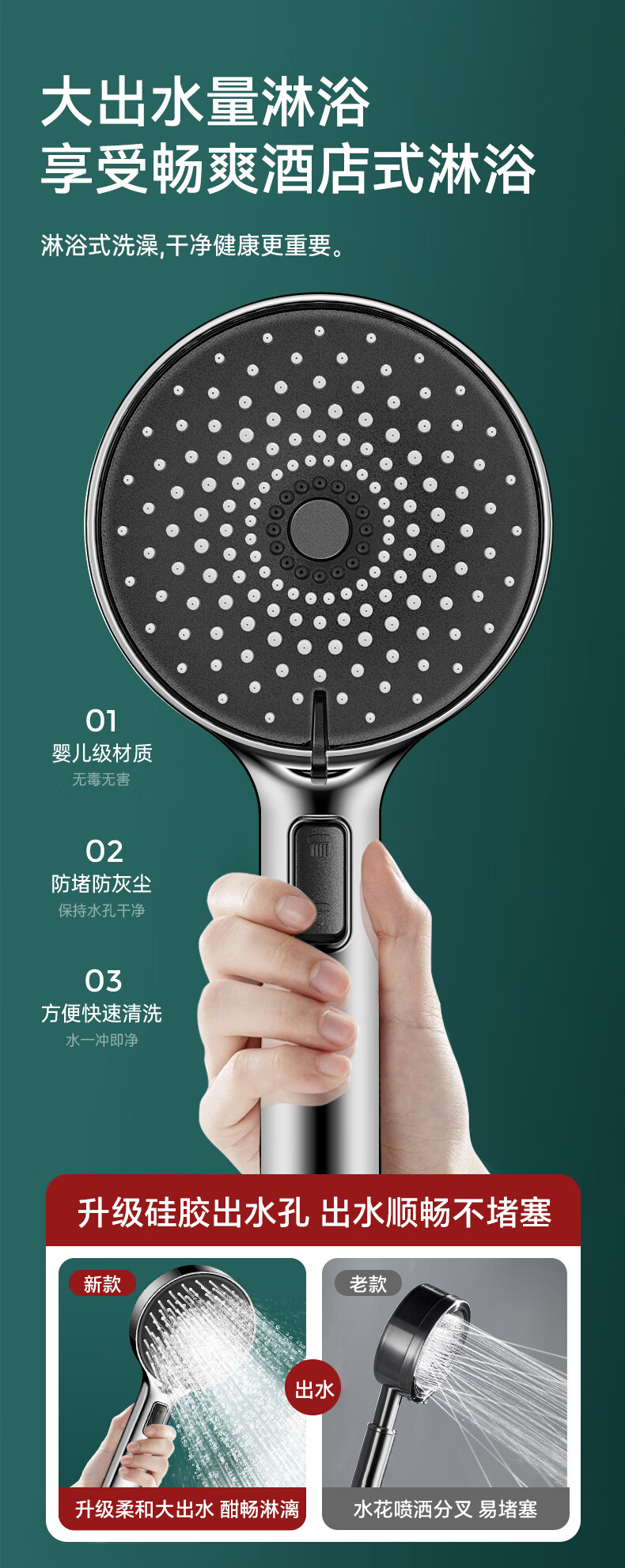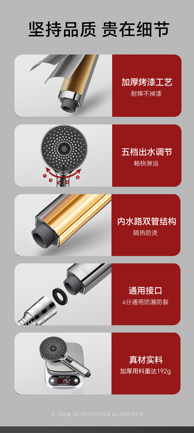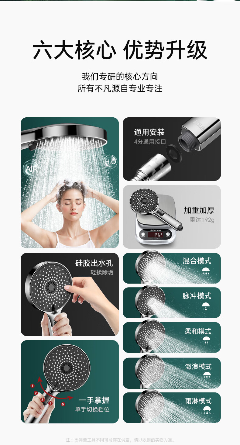 【甄选百货】通用淋浴花洒喷头增压大出水淋雨套装家用洗澡手持花 增压花洒【十年质保】 无规格