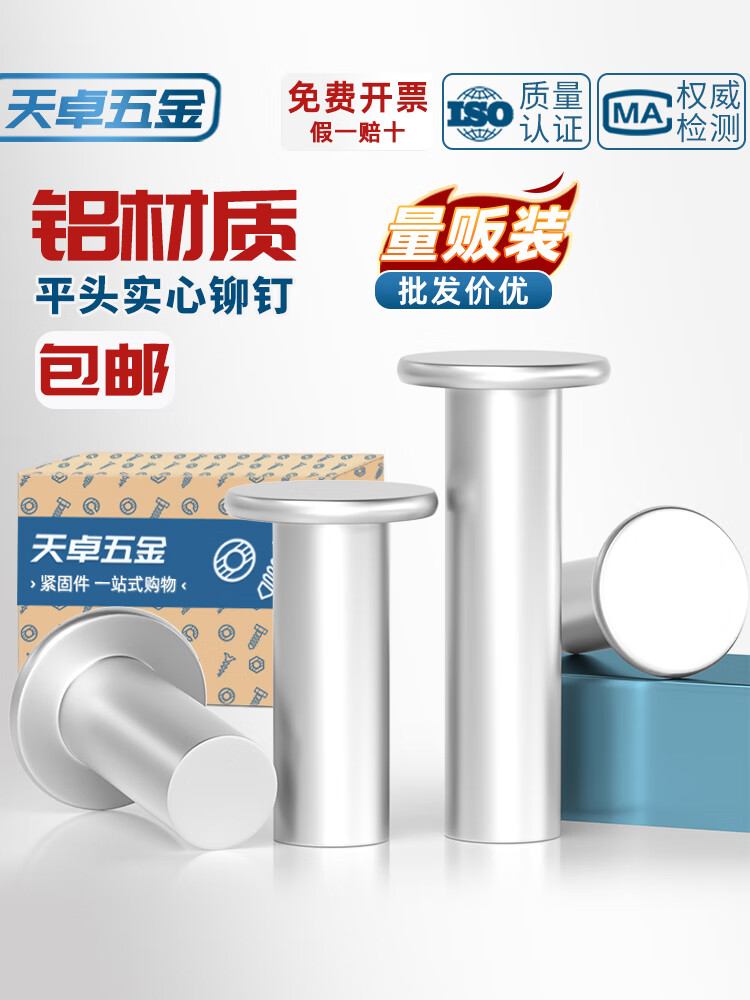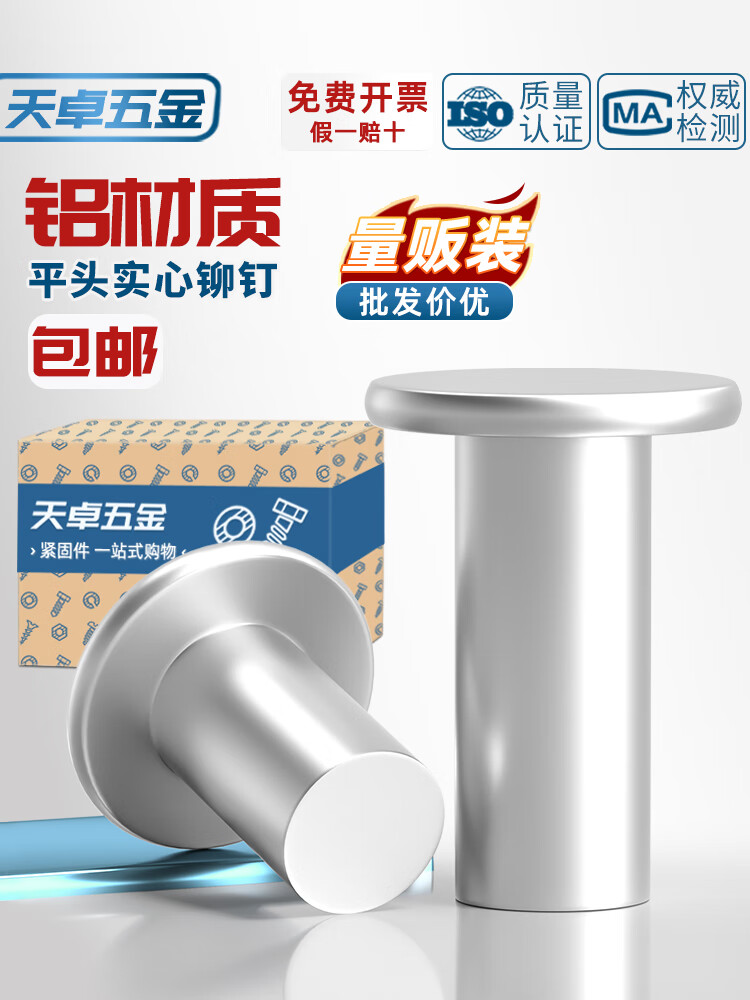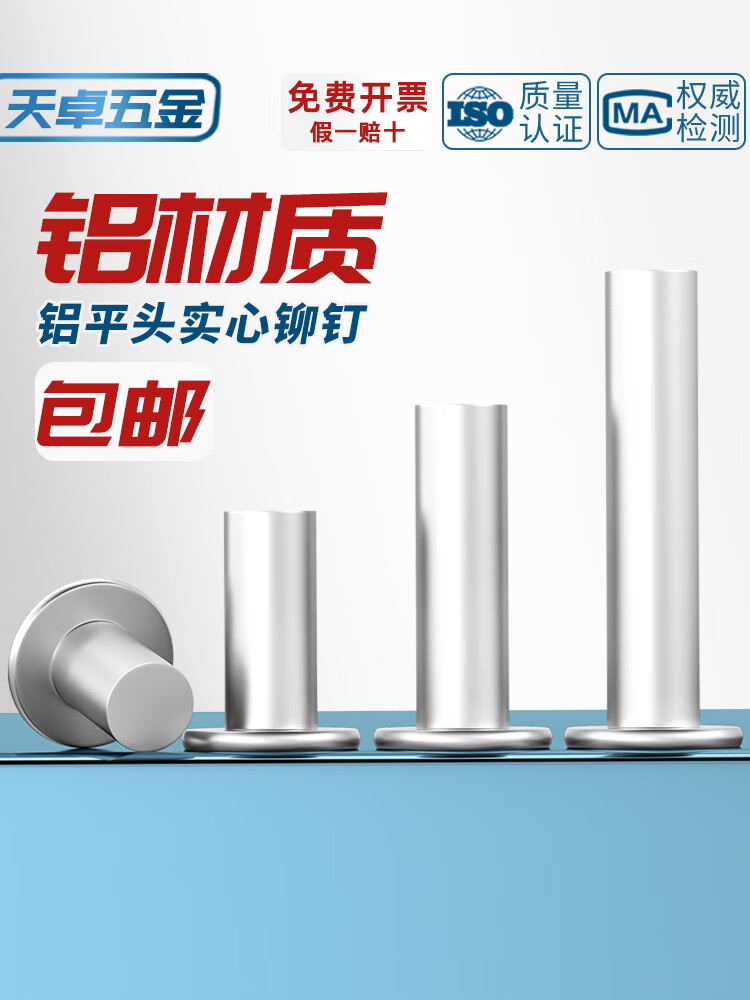 天卓五金铝平头实心铆钉平帽铆钉GB109手打敲击式柳钉平卯M2M3M4M5M6M8mm M2*3【5000个】