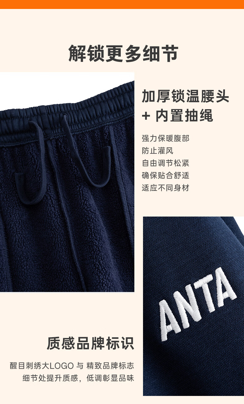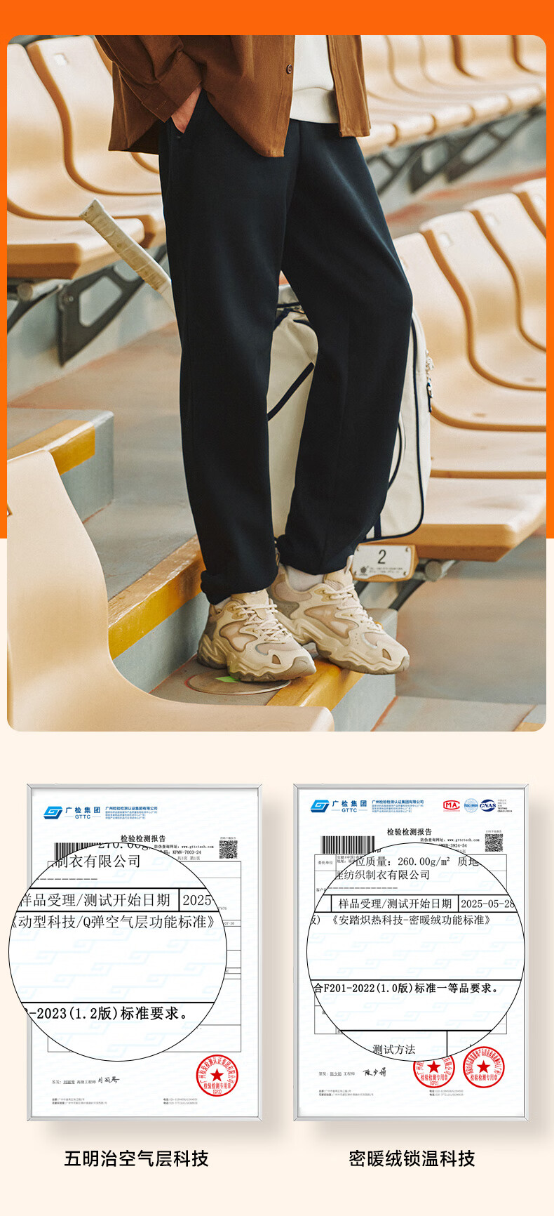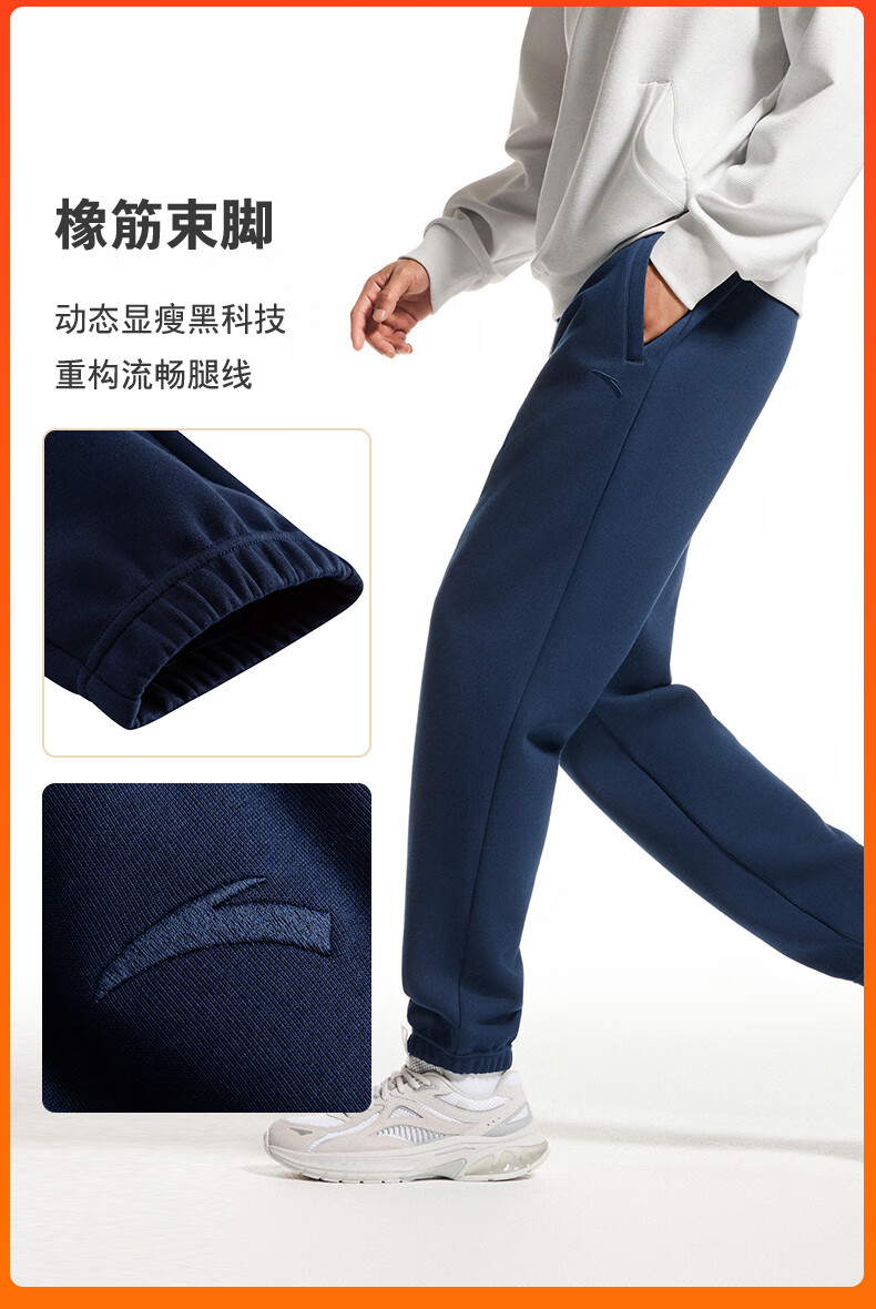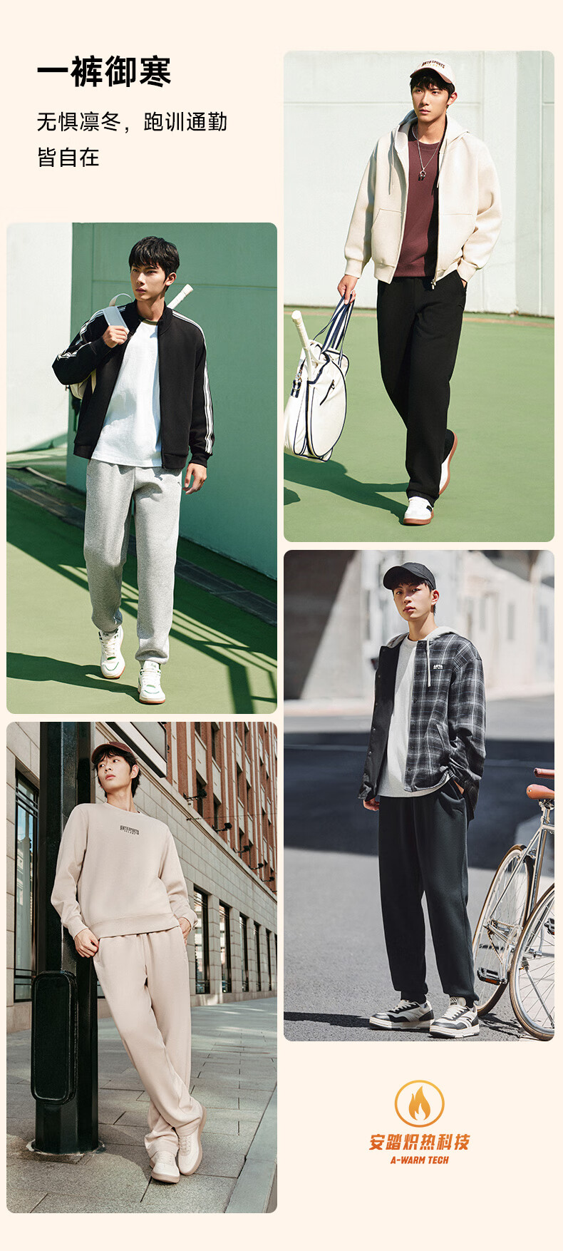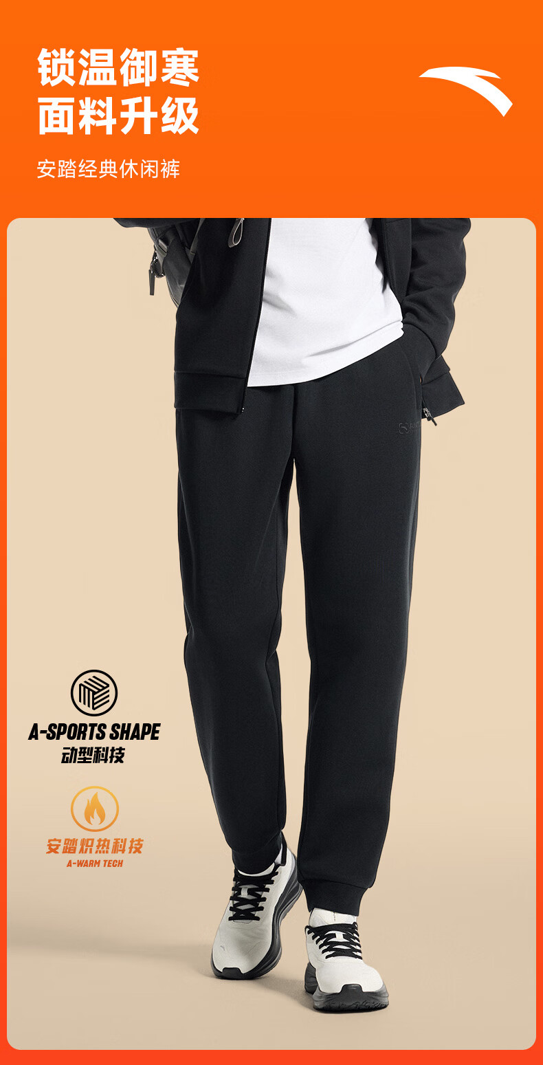 安踏加绒保暖运动裤男士卫裤冬季针织户外跑步长裤休闲裤束脚收口