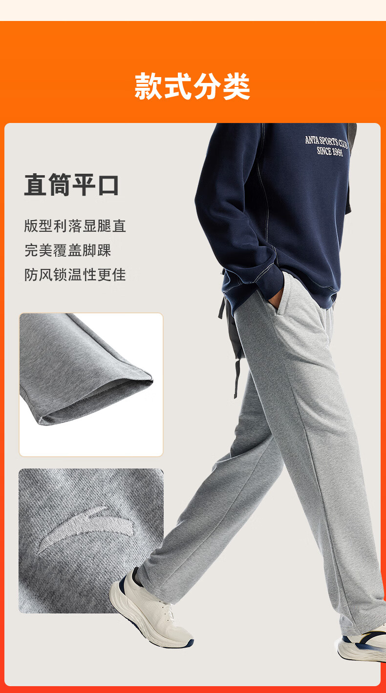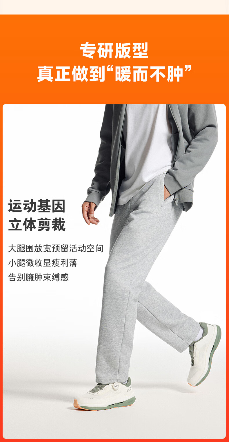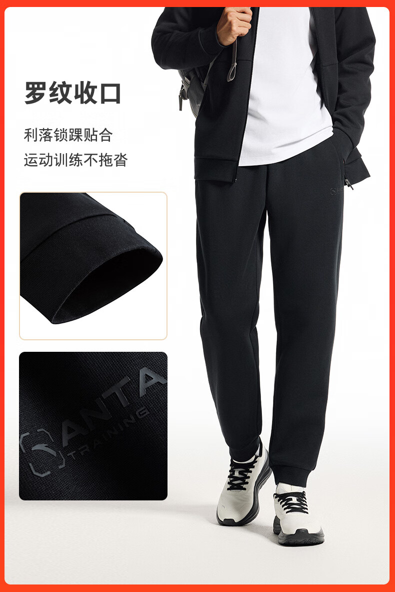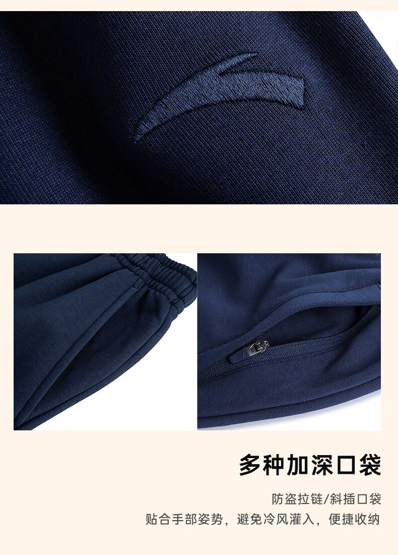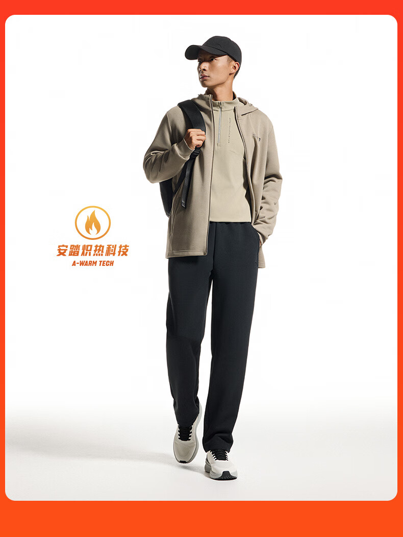 安踏加绒保暖运动裤男士卫裤冬季针织户外跑步长裤休闲裤束脚收口