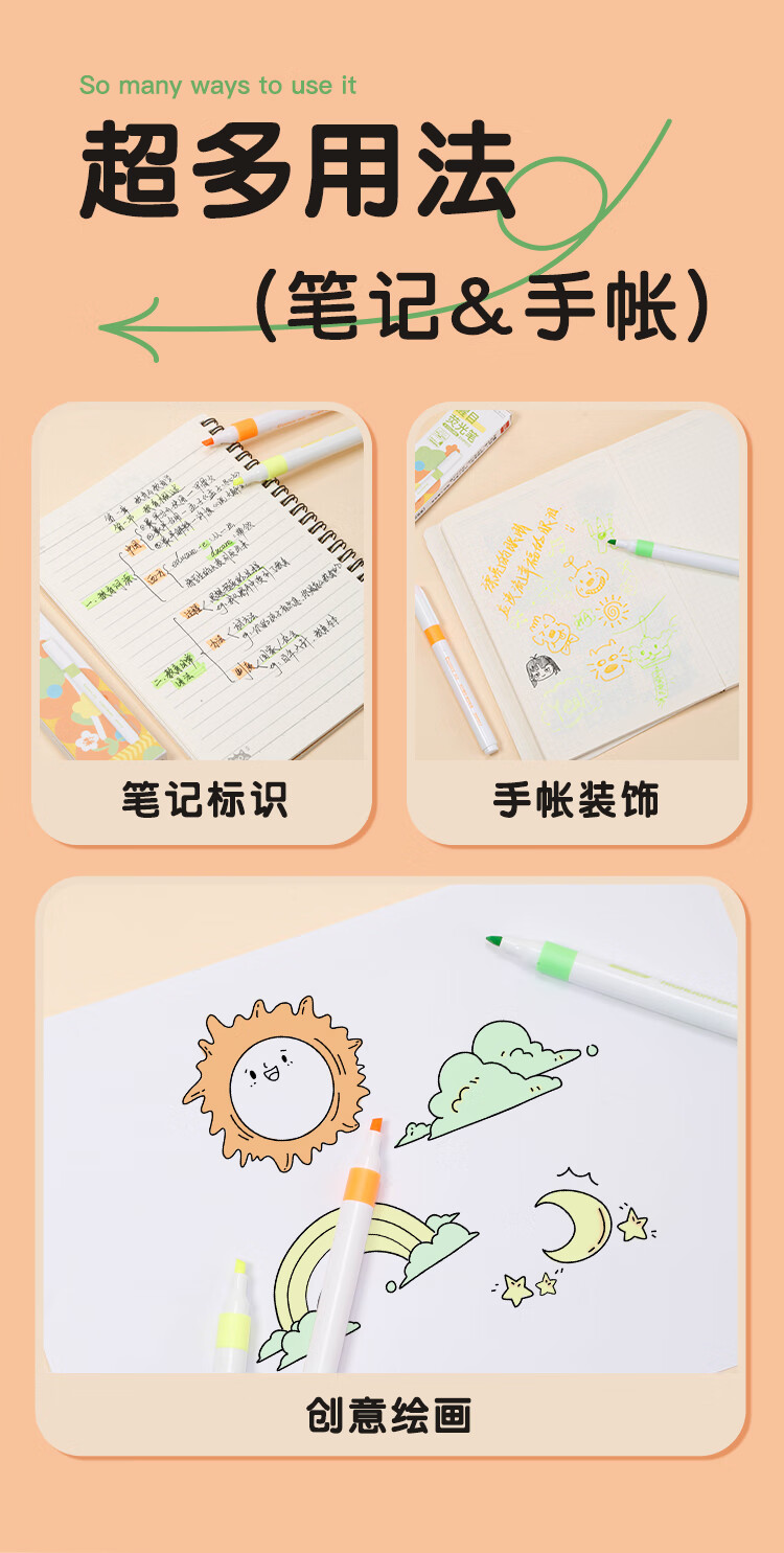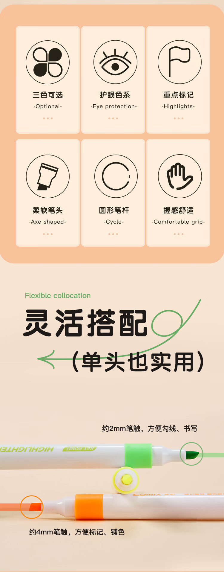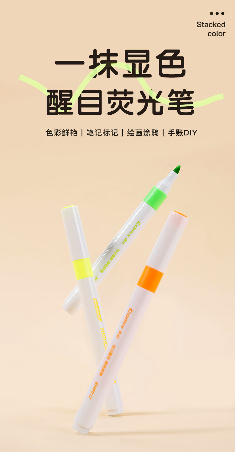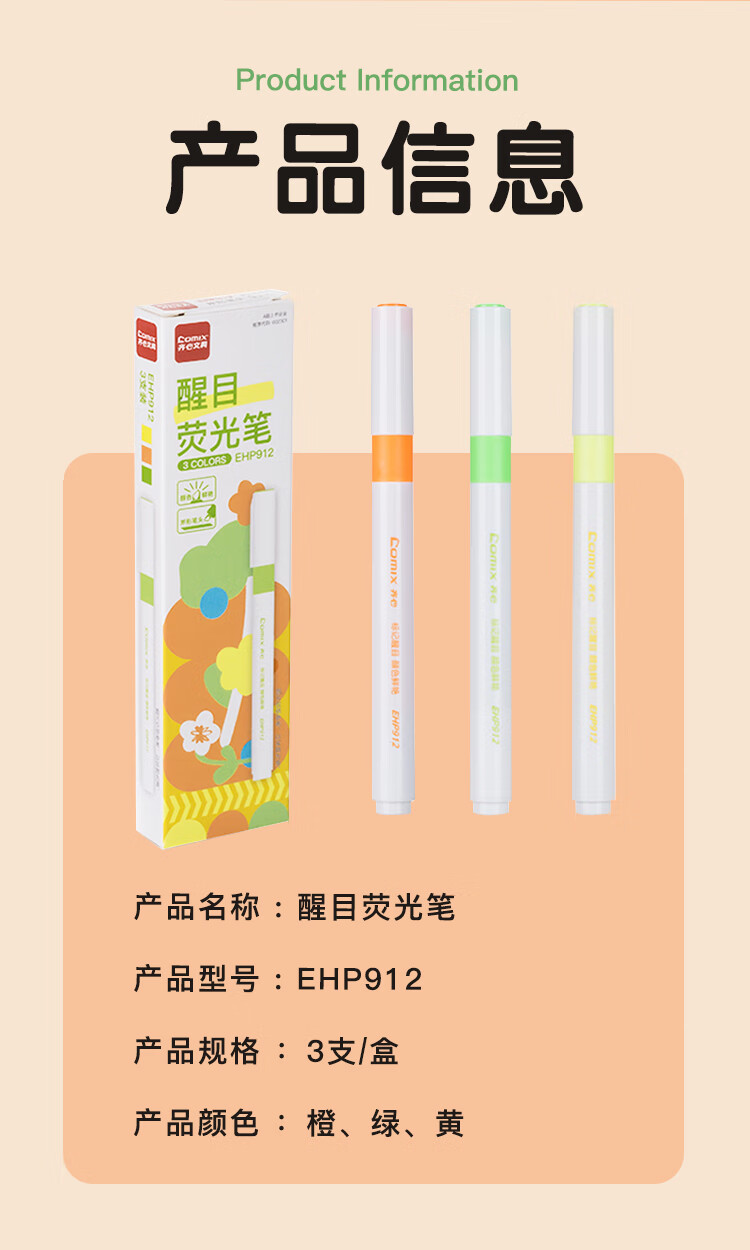 齐心(Comix)彩色荧光笔小包装 学生文具考试复习重点记号笔马克笔笔记手帐绘画 3支/盒EHP912