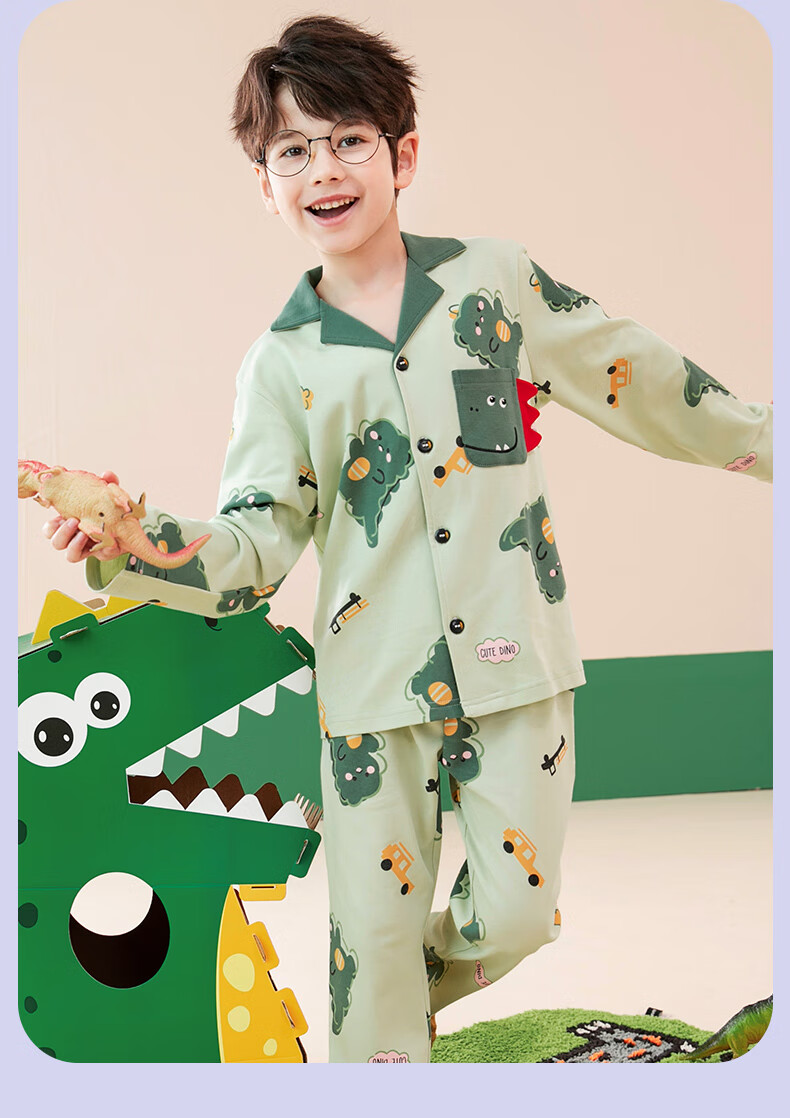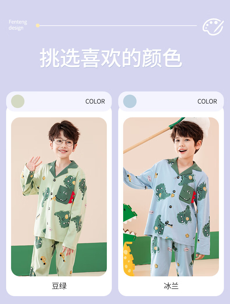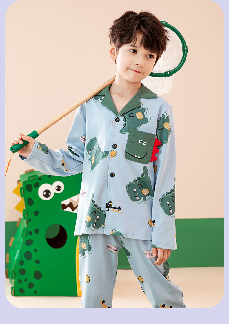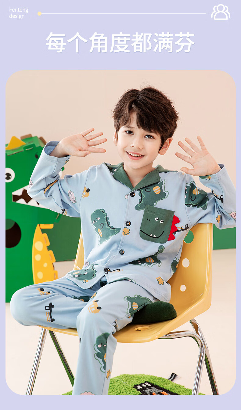 芬腾儿童睡衣男纯棉春季大童可外穿男童家居服