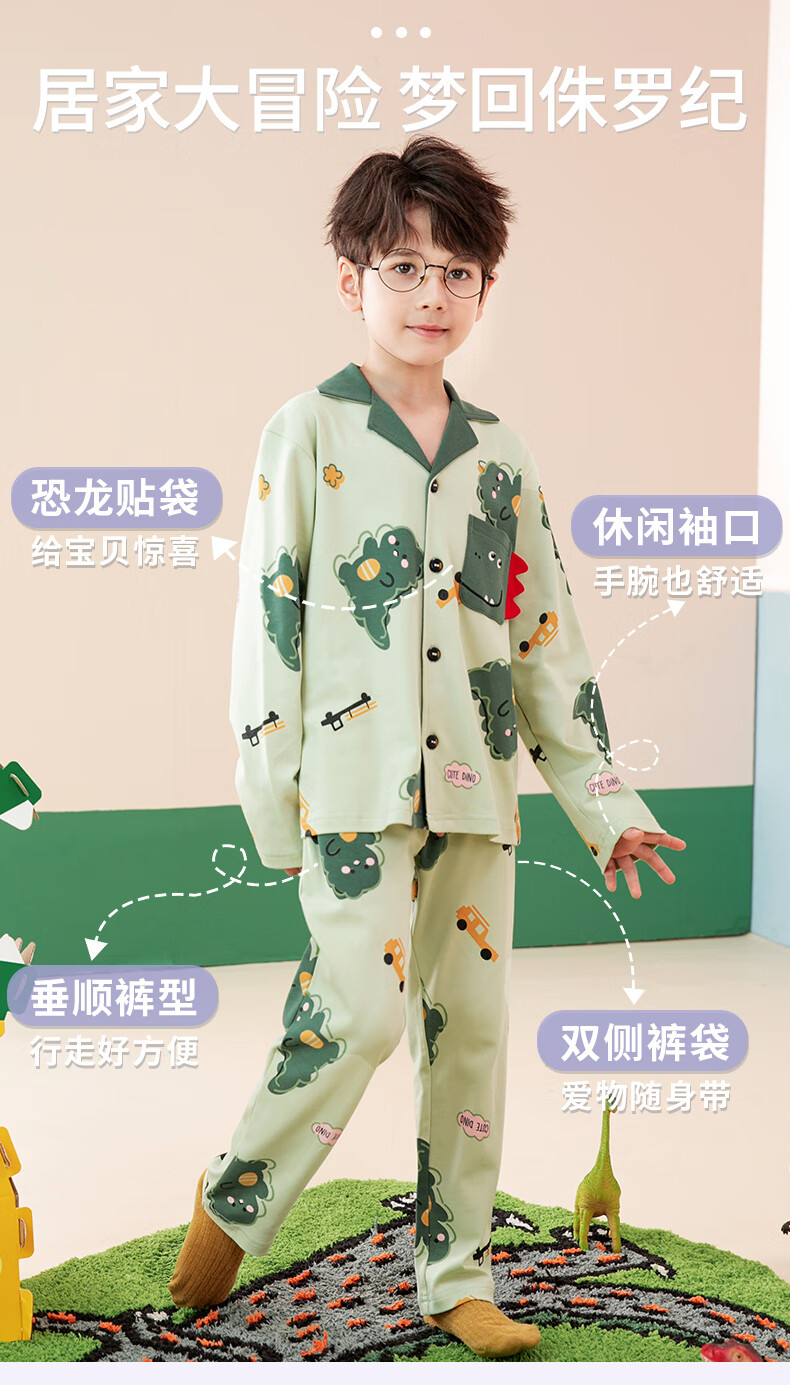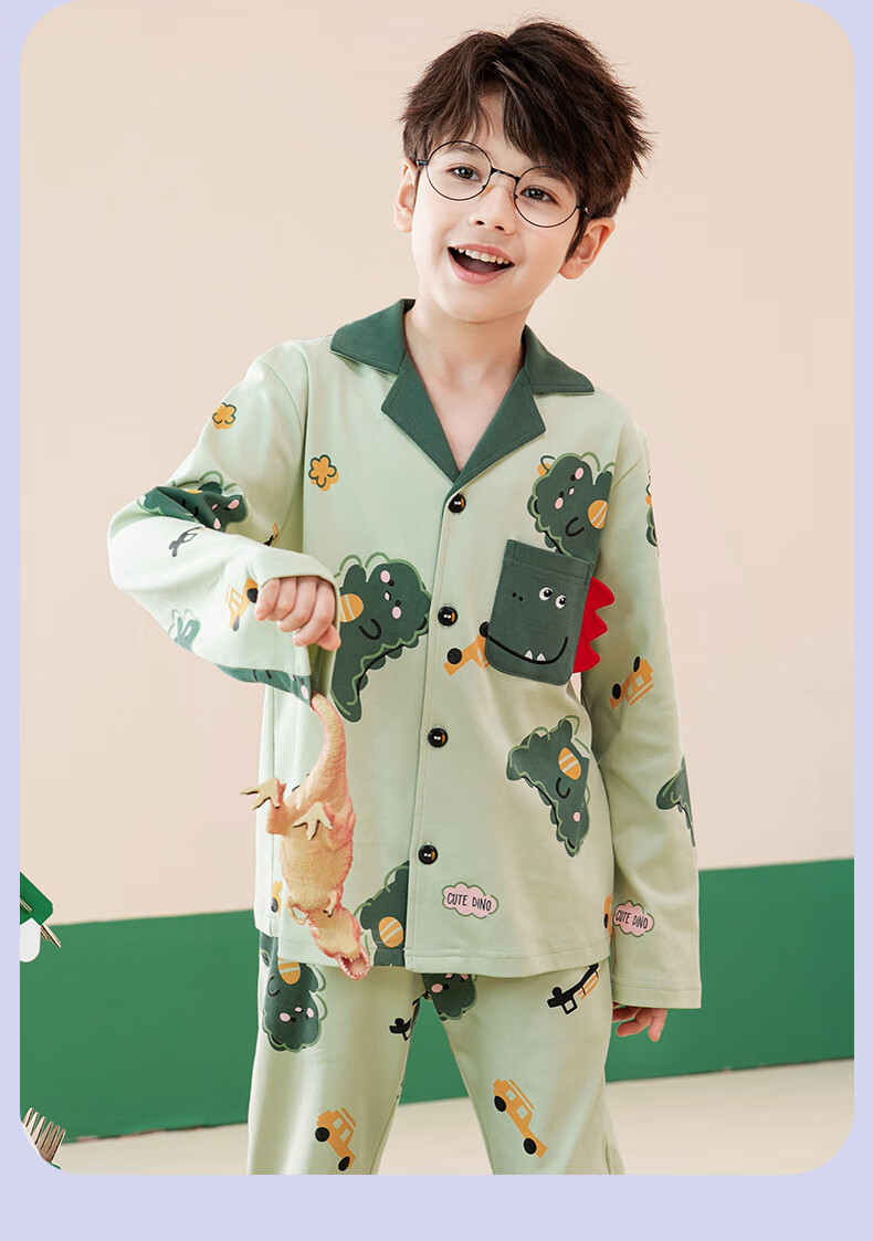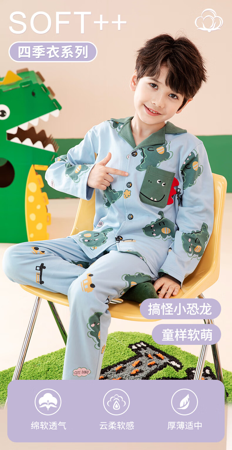 芬腾儿童睡衣男纯棉春季大童可外穿男童家居服