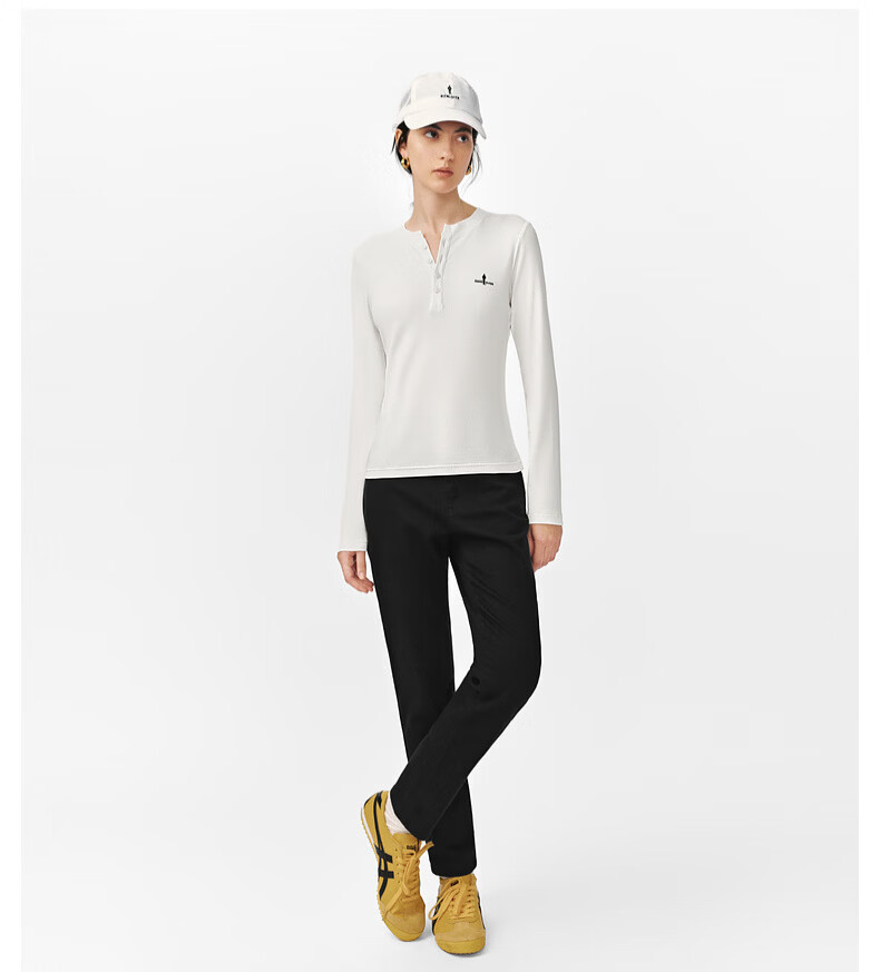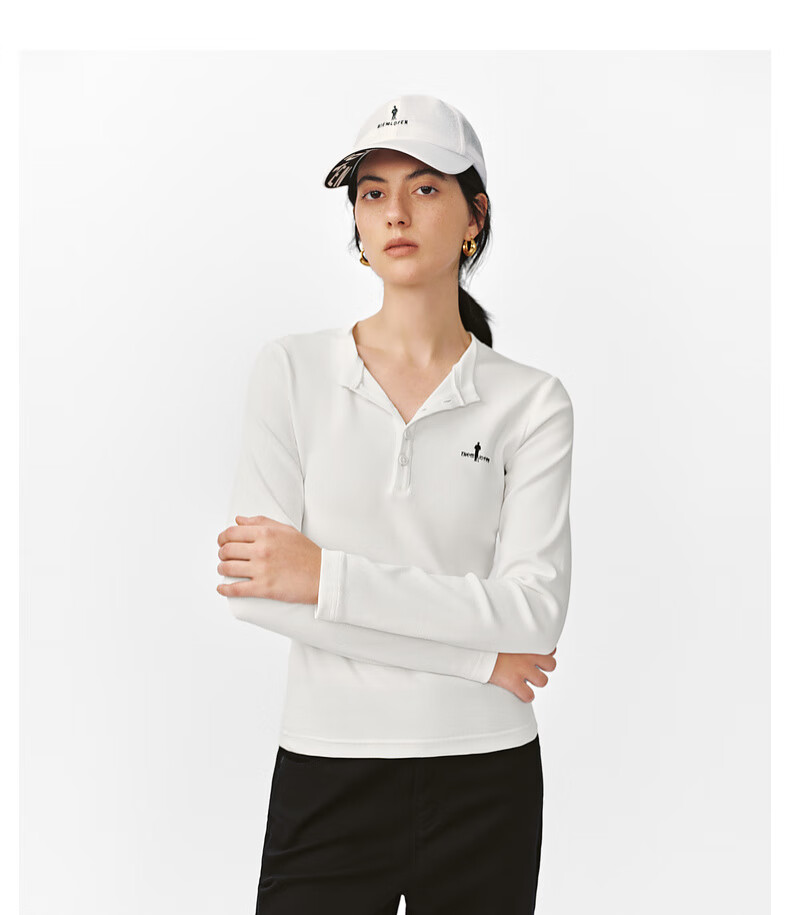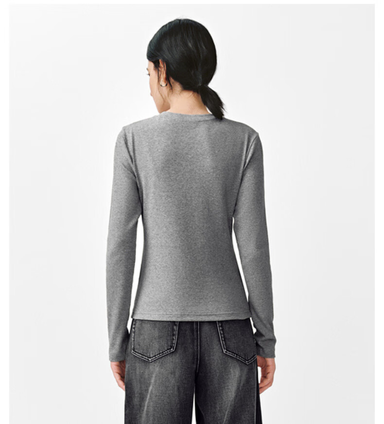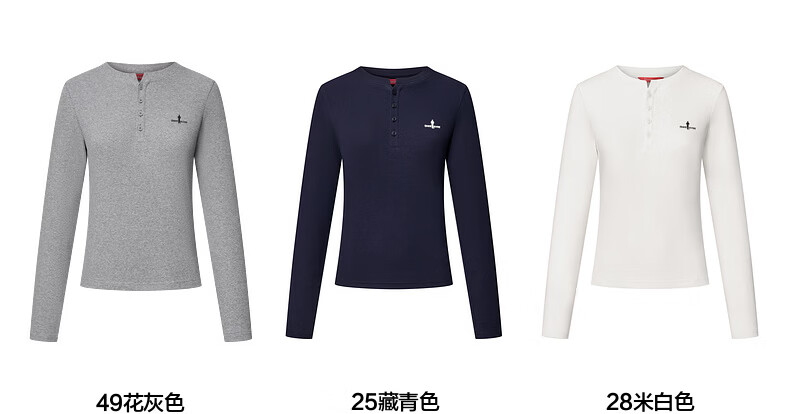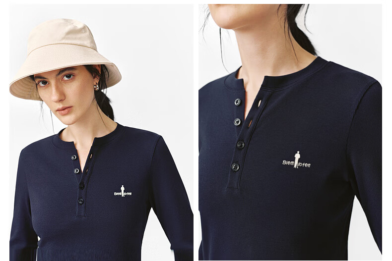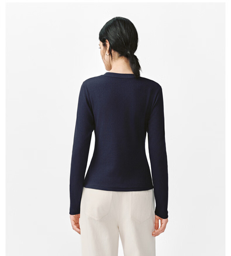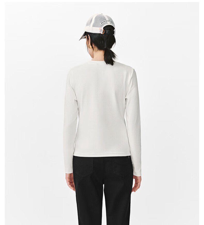 比音勒芬春秋女士上衣休闲户外通勤风简约百搭半开领圆领长袖T恤内搭