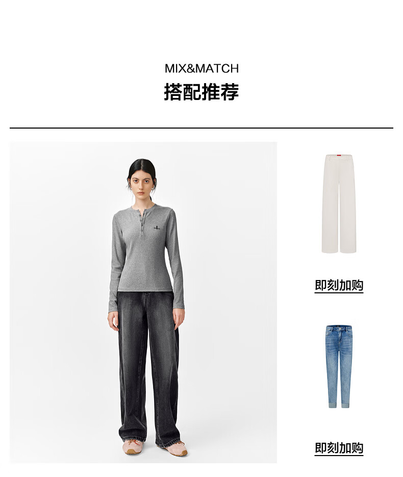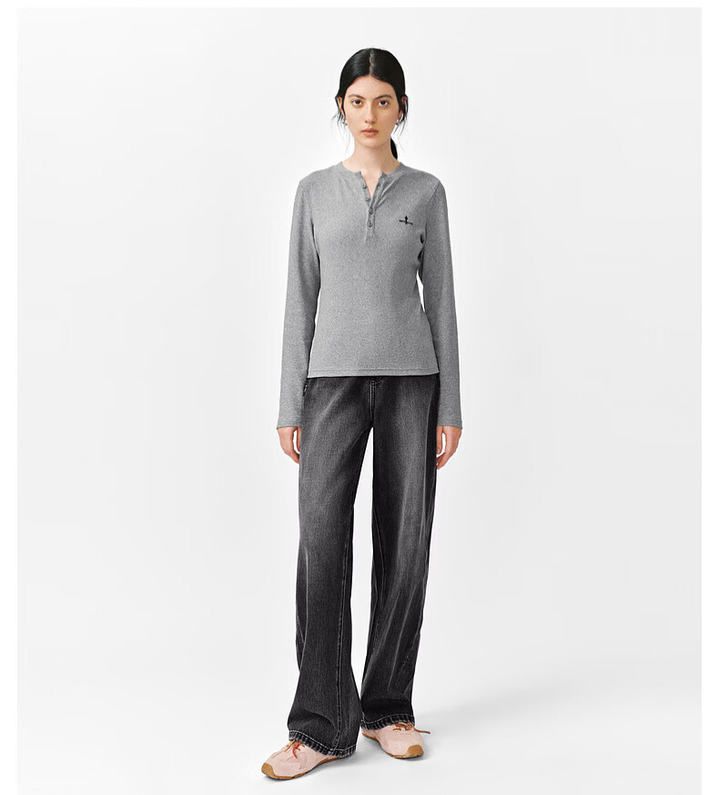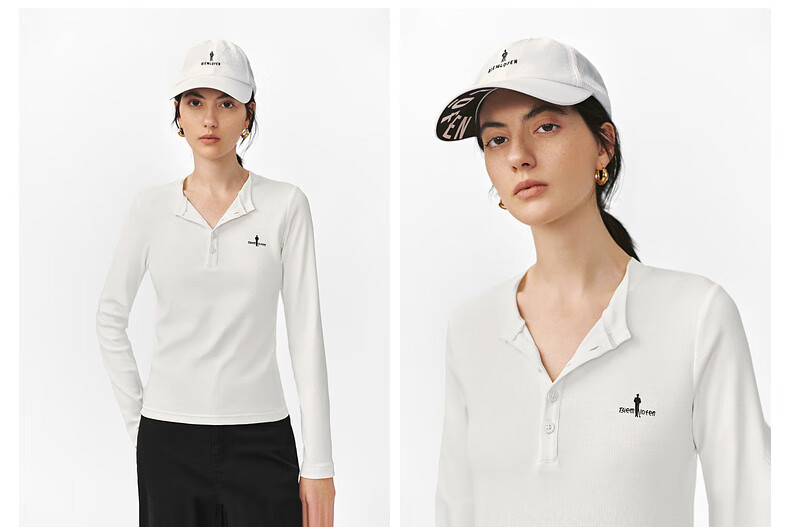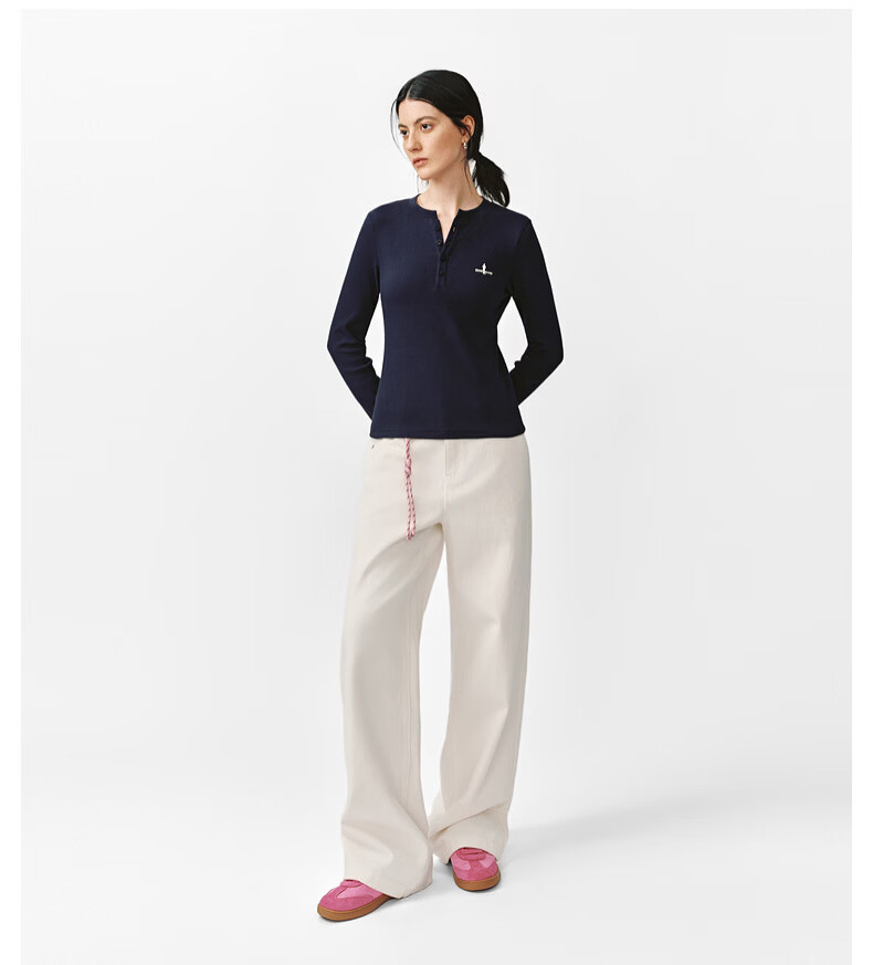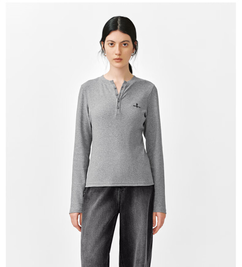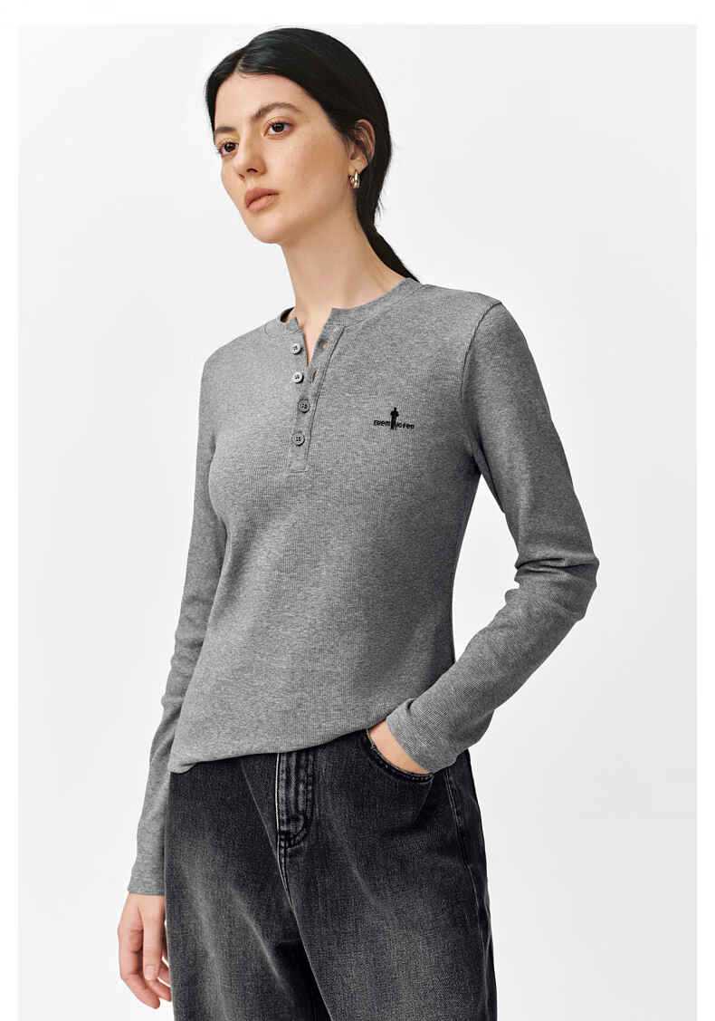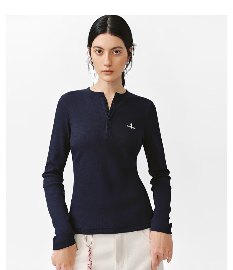 比音勒芬春秋女士上衣休闲户外通勤风简约百搭半开领圆领长袖T恤内搭