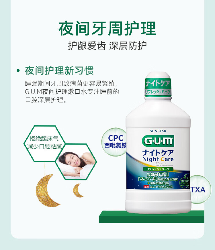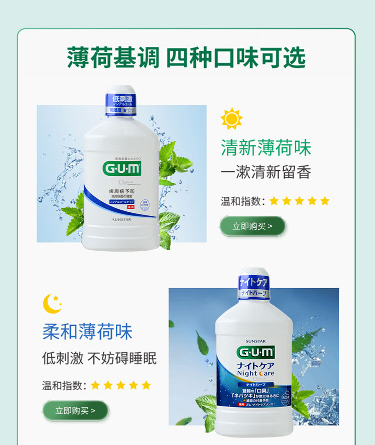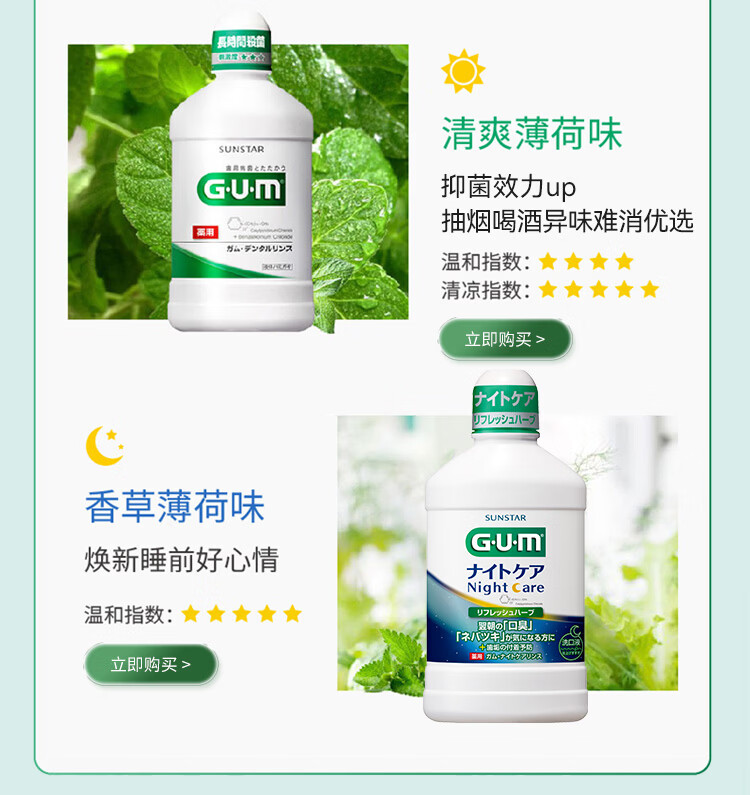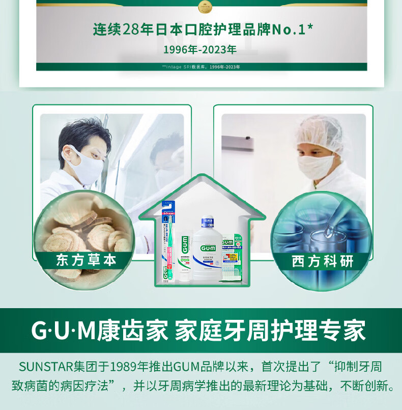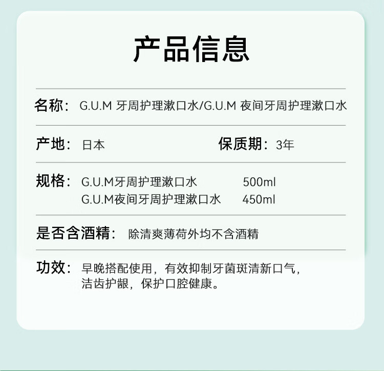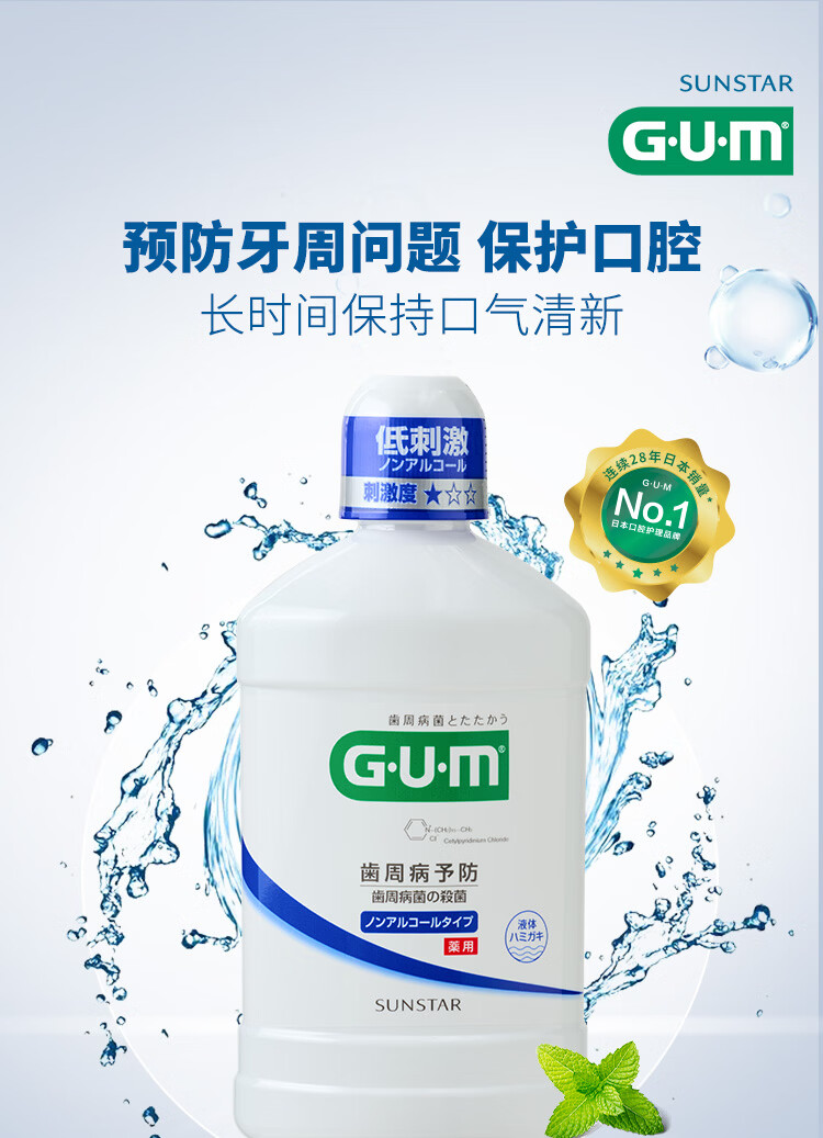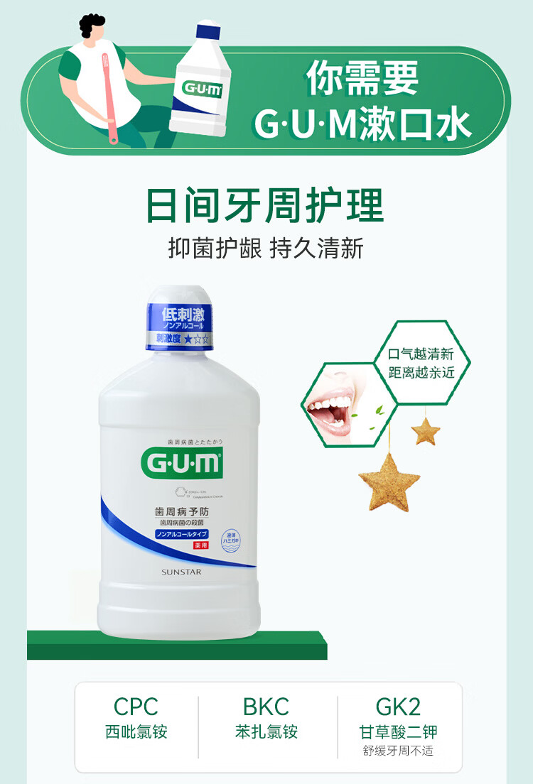 G·U·M康齿家漱口水 长效抑菌持久清新 采销优选 清新薄荷日用款500ml