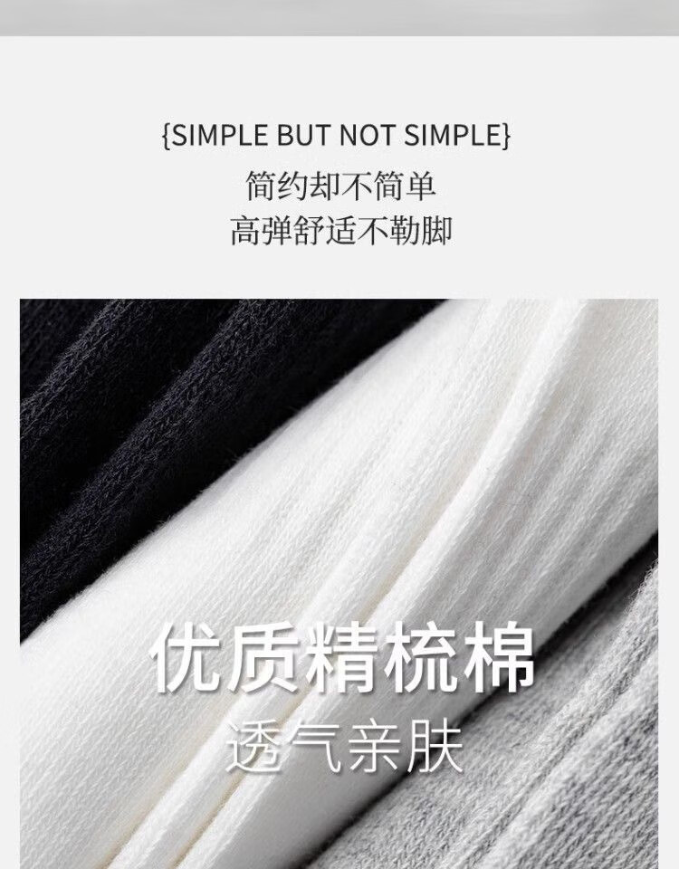 欧蓝薇雅(OULANWEIYA)新疆棉袜子男中筒袜透气不臭脚秋冬季黑色白色商务纯色高筒棉袜女 白色(中筒) 10双 均码