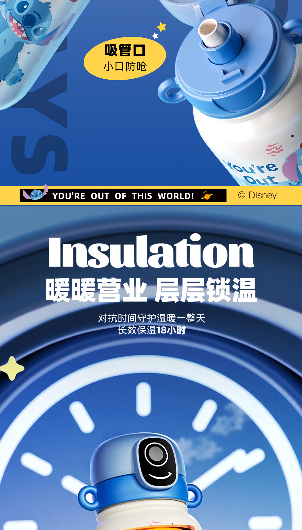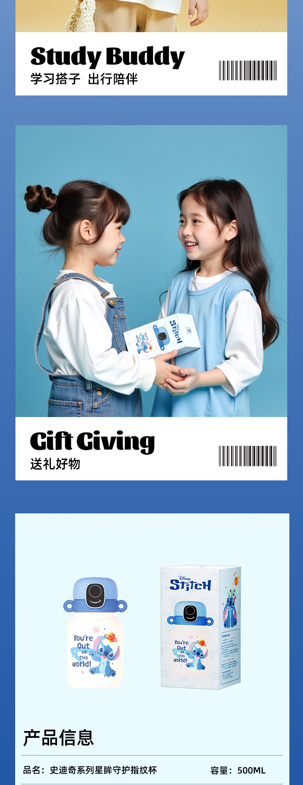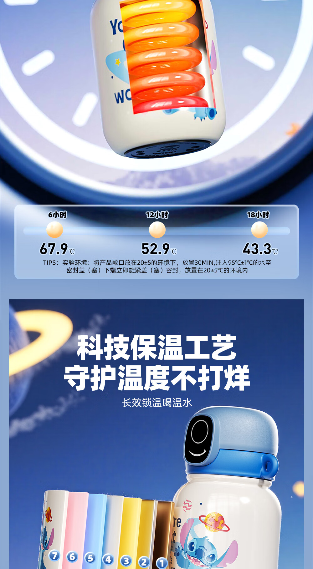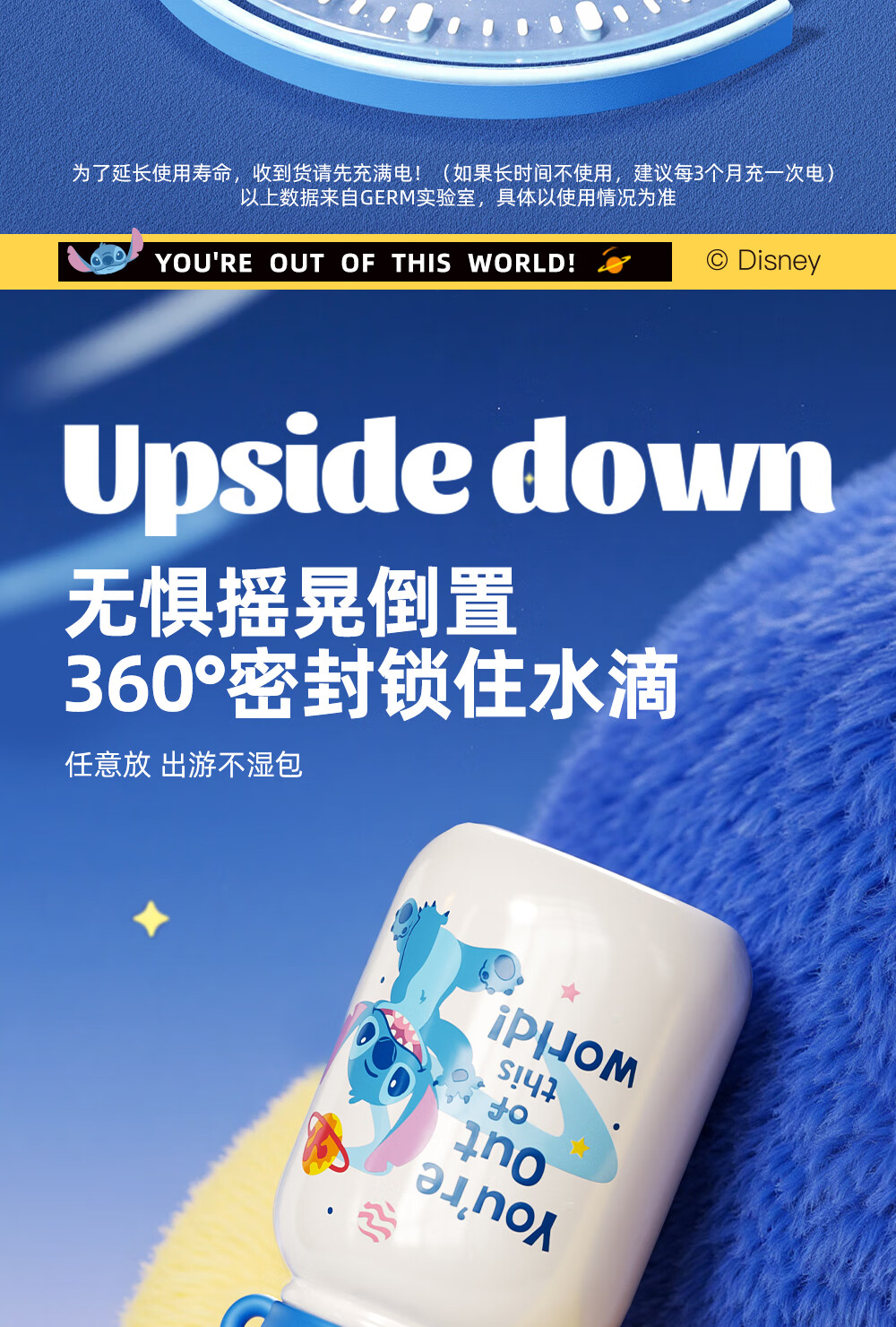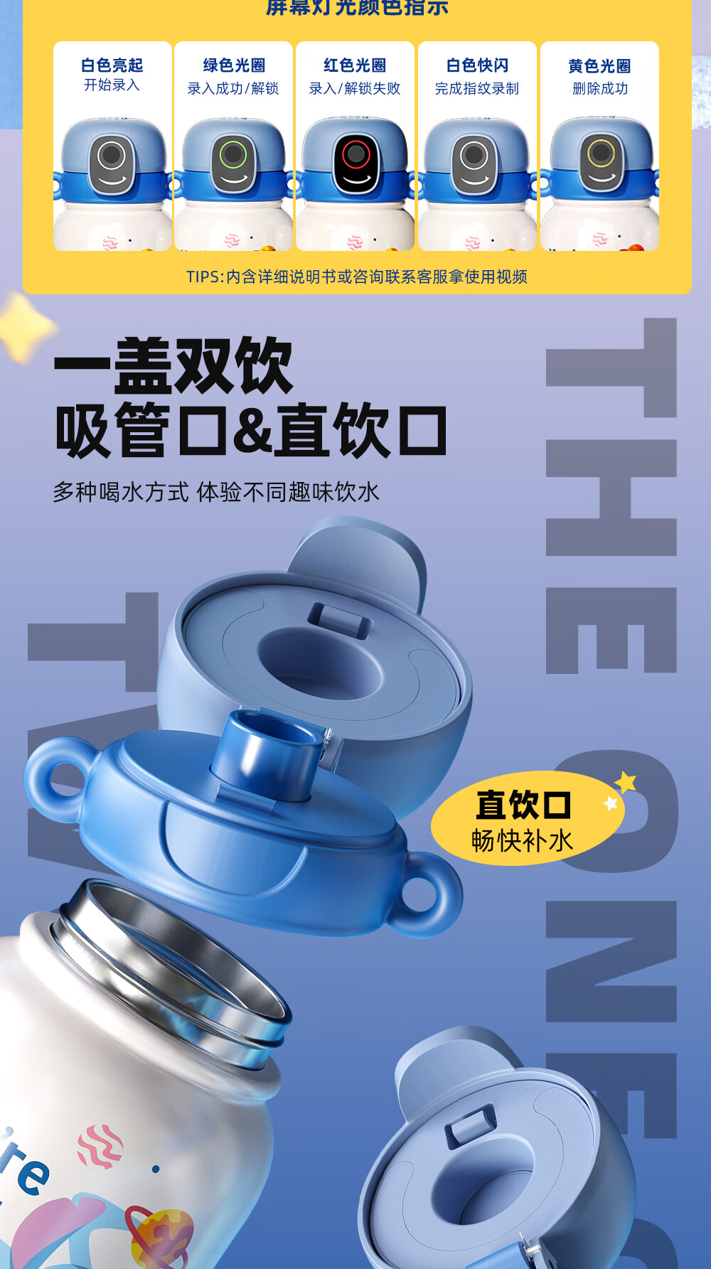 格米(germ)史迪奇指纹保温杯密码解锁儿童保温杯专用学生水杯高颜值水壶杯子 史迪奇500ML【可充电续航120天】