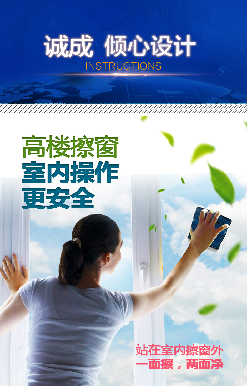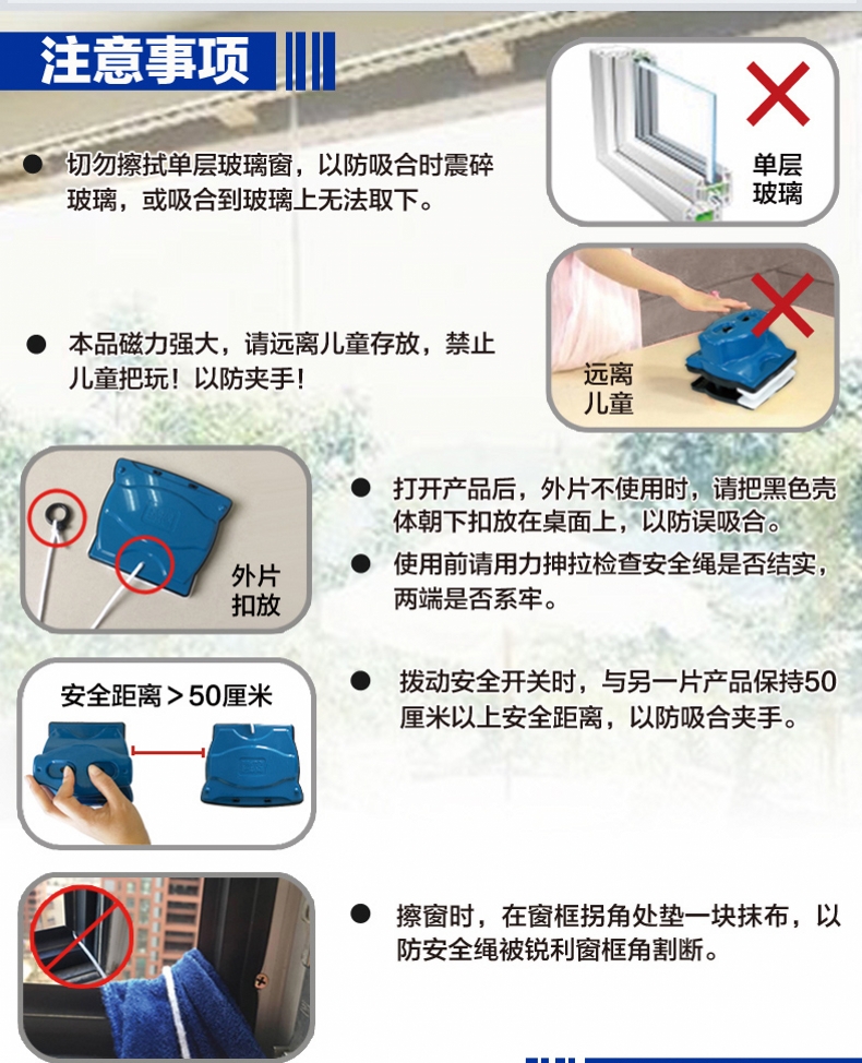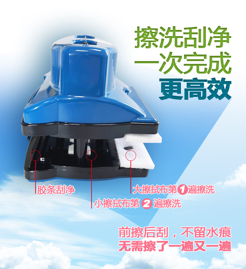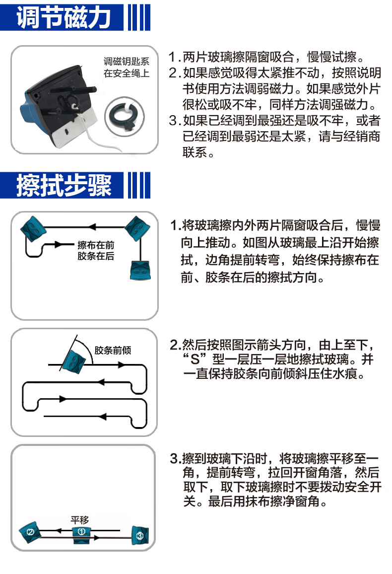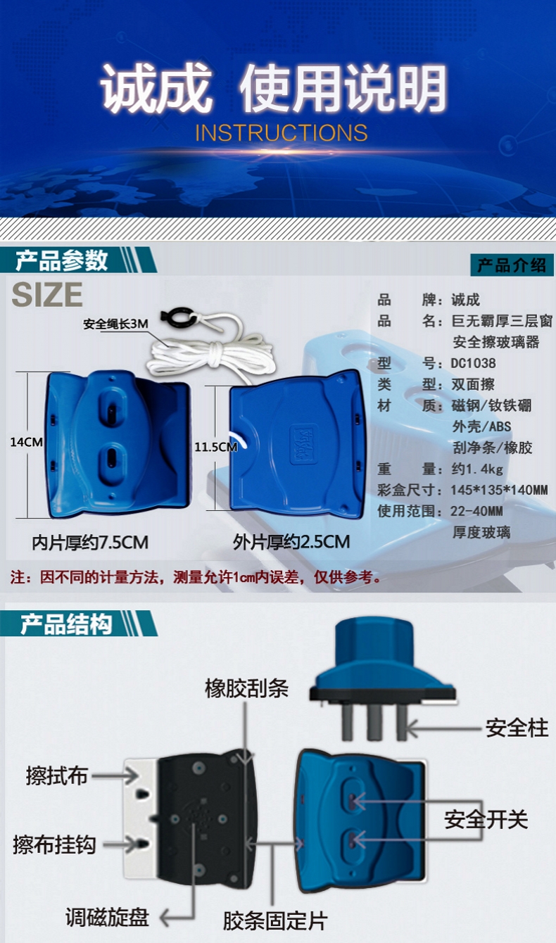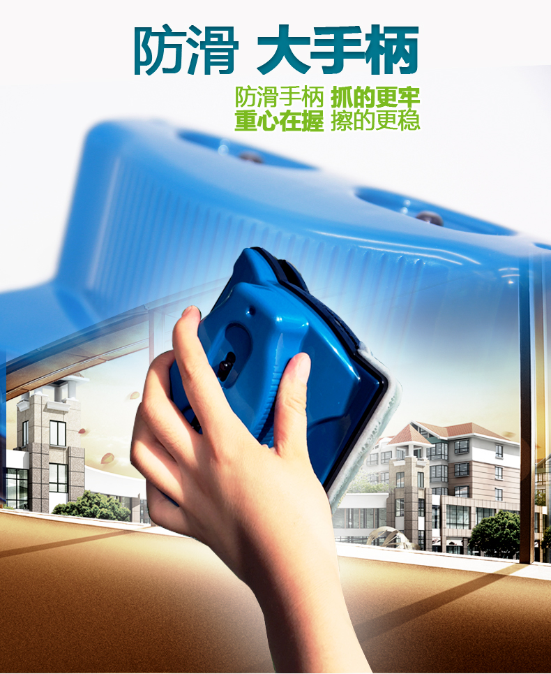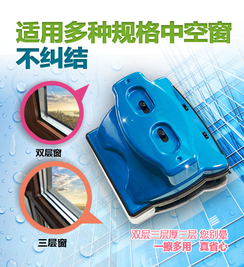诚成 巨无霸双面擦玻璃神器12调磁玻璃擦厚双层三层40毫米刮擦窗器 蓝色22-40mm双层三层中空玻璃