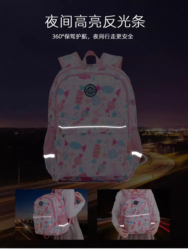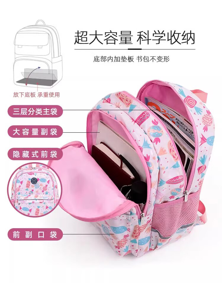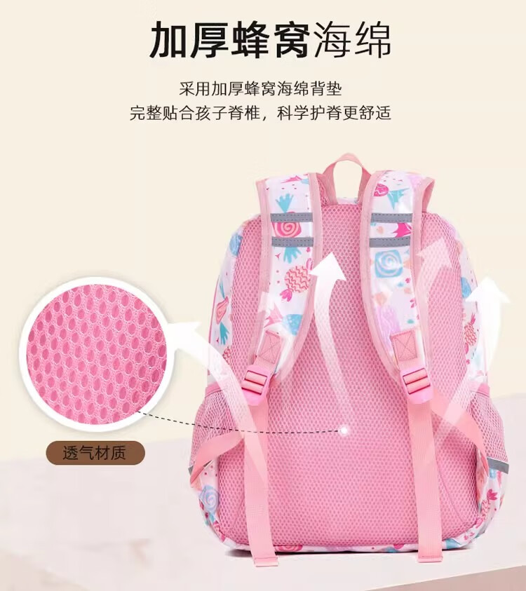 卡拉羊小学生1-6年级防下坠减负风琴书包大容量高颜值双肩包儿童书包 【精灵】藏青 【容量20L】身高135cm以上
