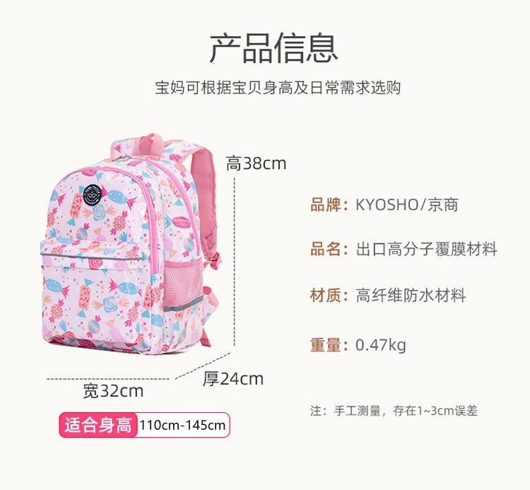 京商(Kyosho)日本超轻便防水小学生书包1-4年级护脊男女孩6-12儿童双肩包减负 黄色猫咪【超轻防水】