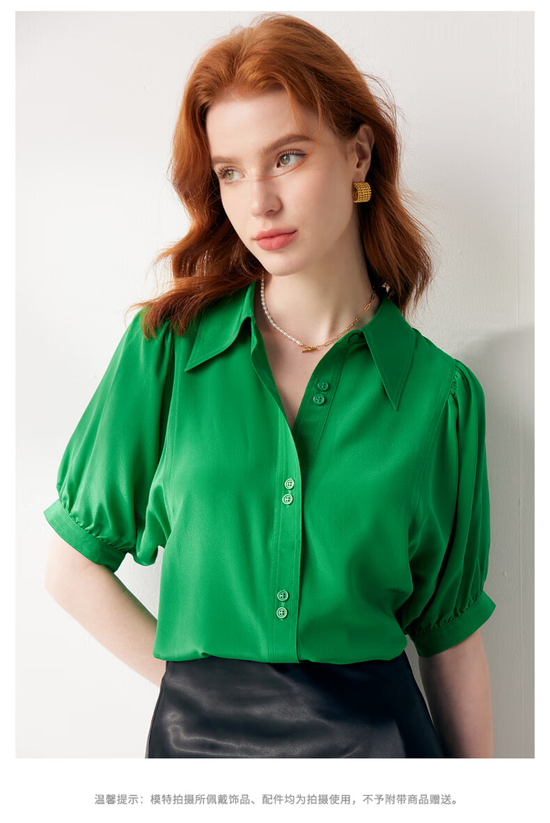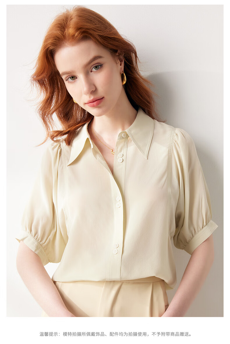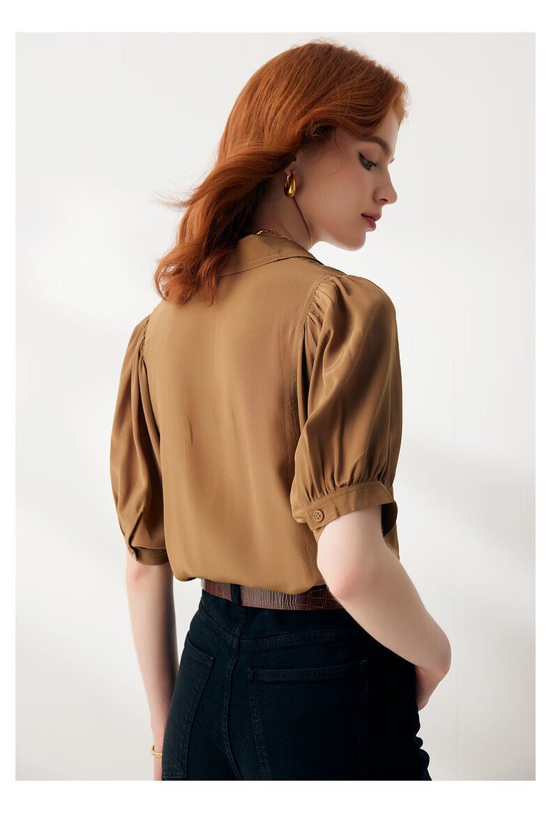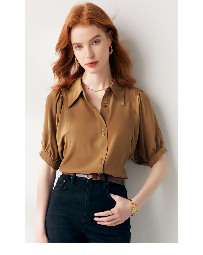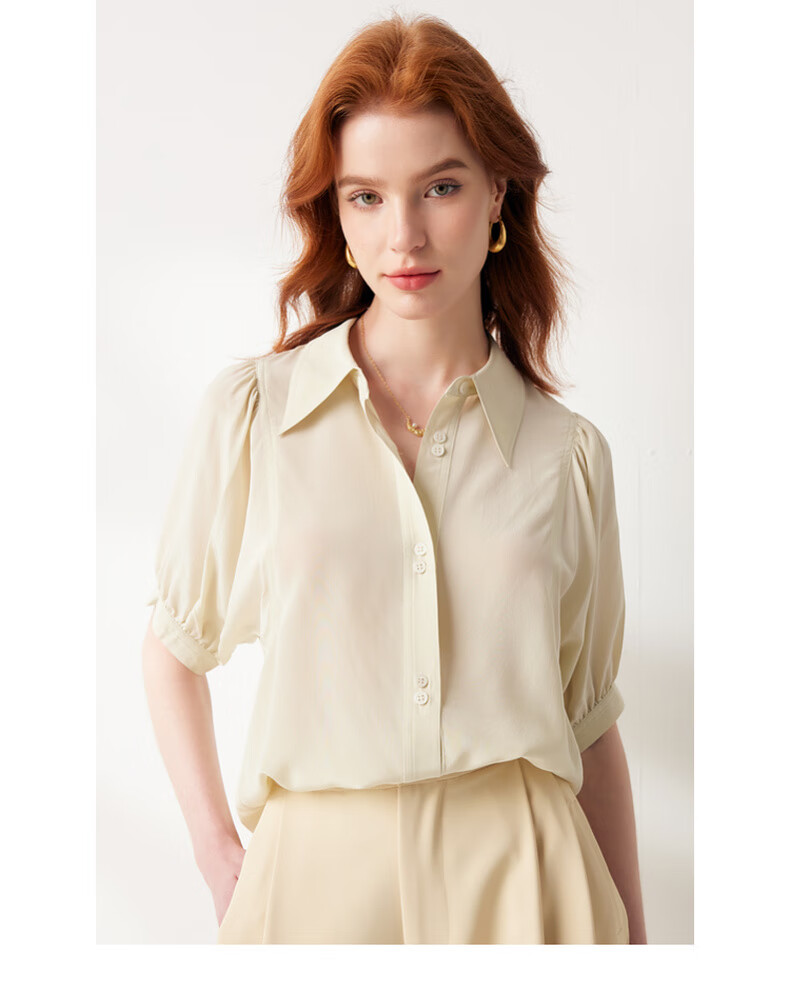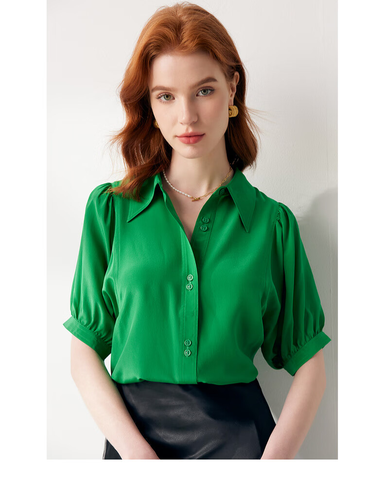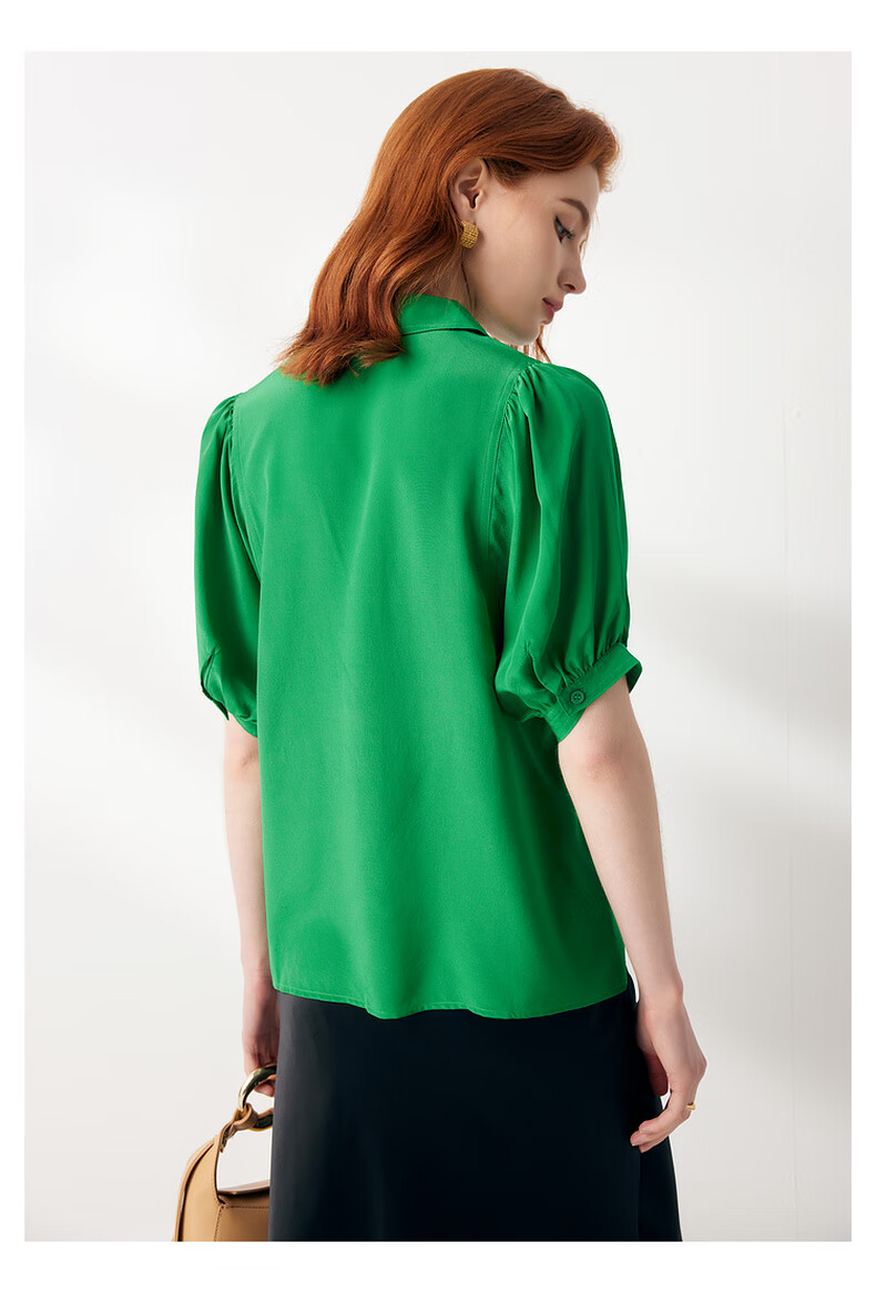 帕罗(PALUOPO)【慵懒气质】夏季季真丝衬衫领质感纯色泡泡袖桑蚕丝女士上装衬衣 黑 M (160/84A)