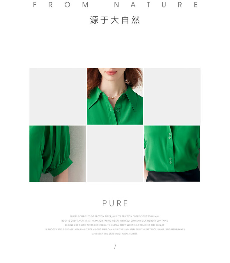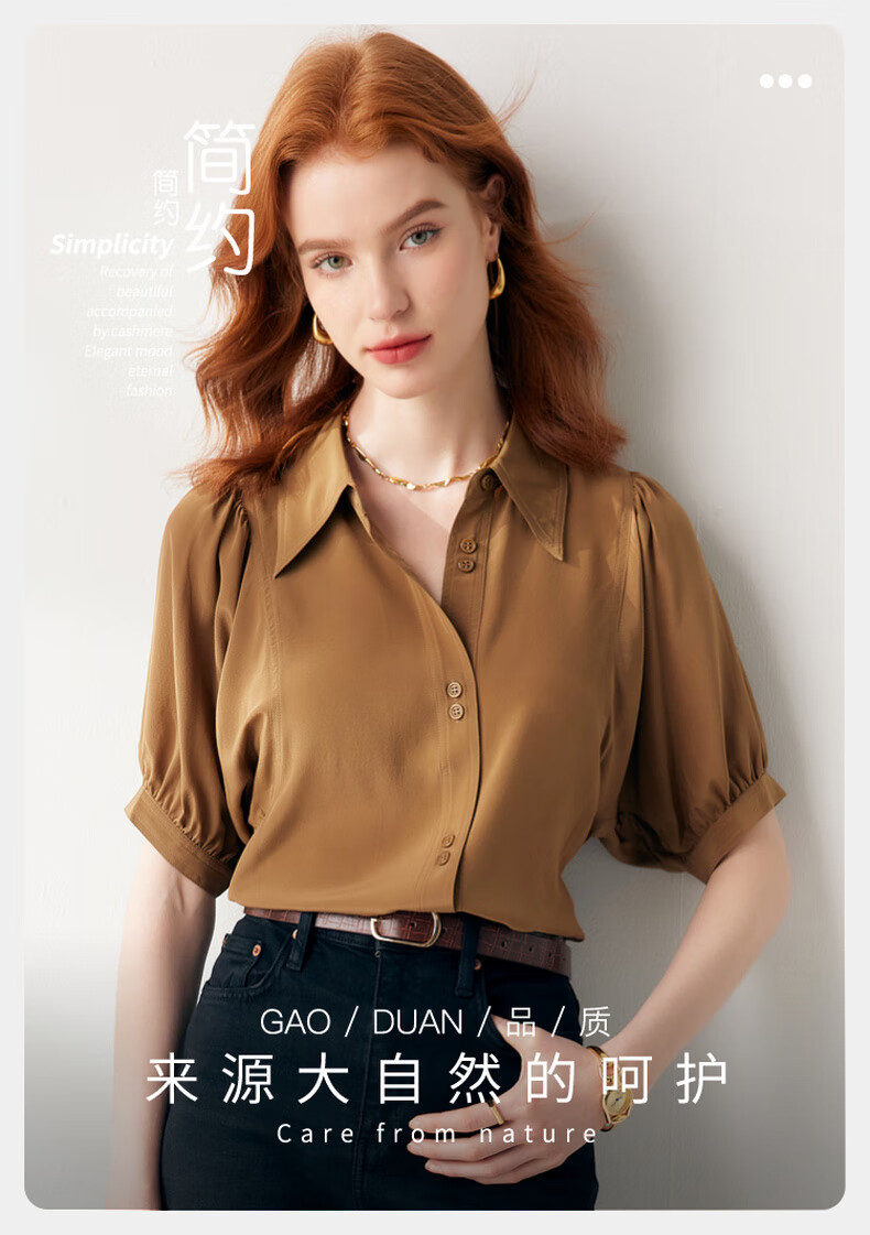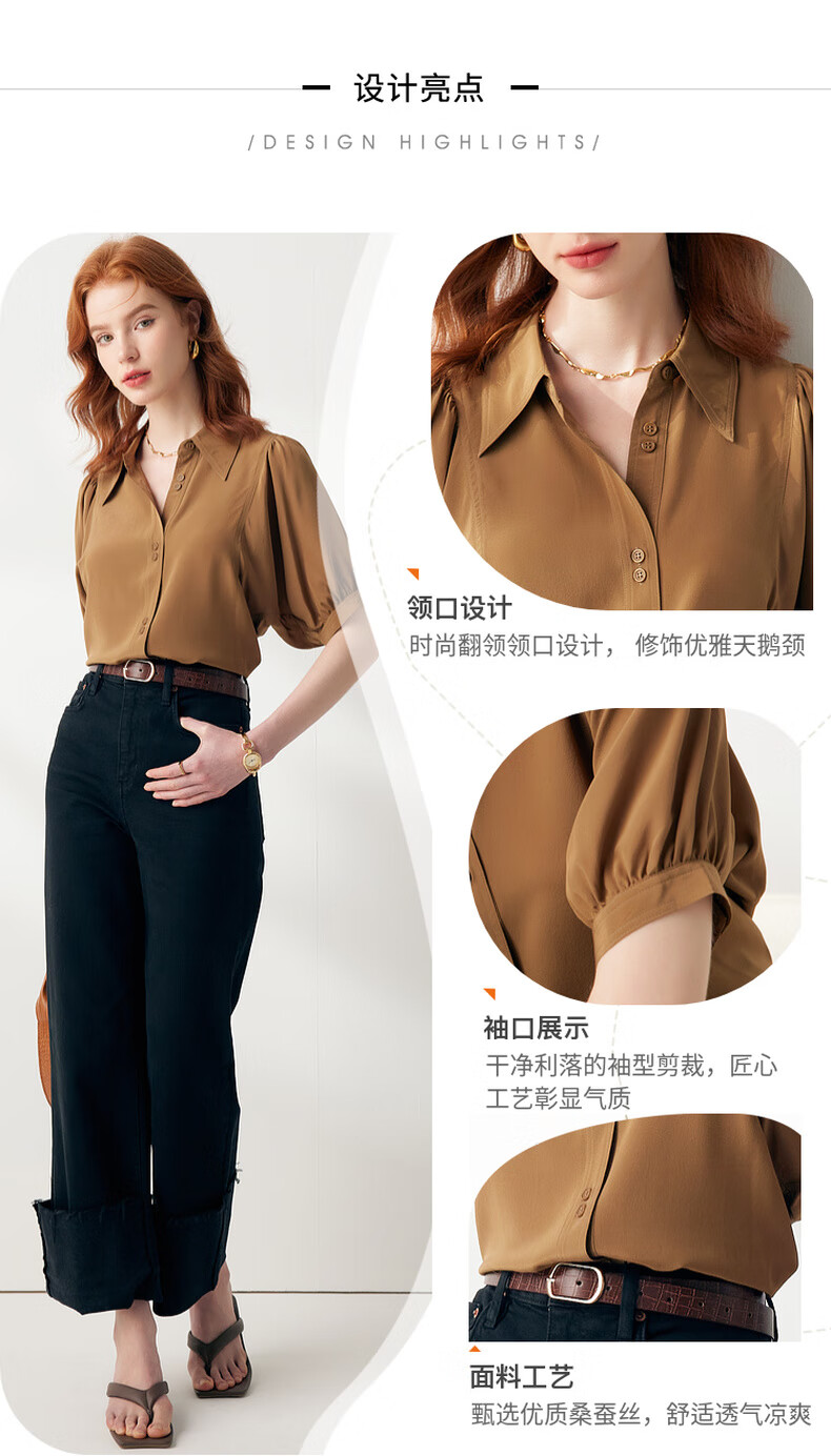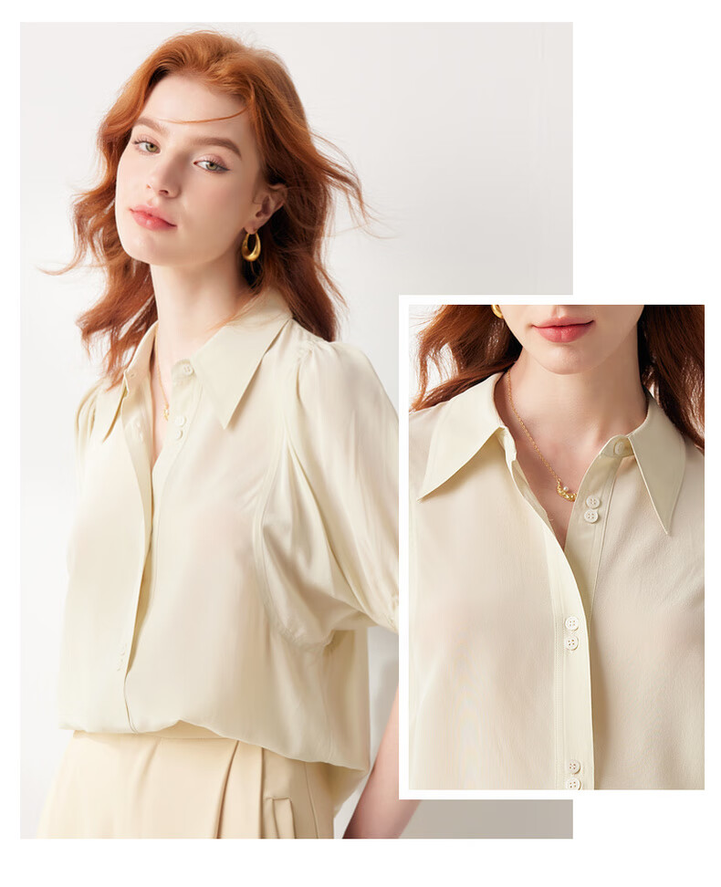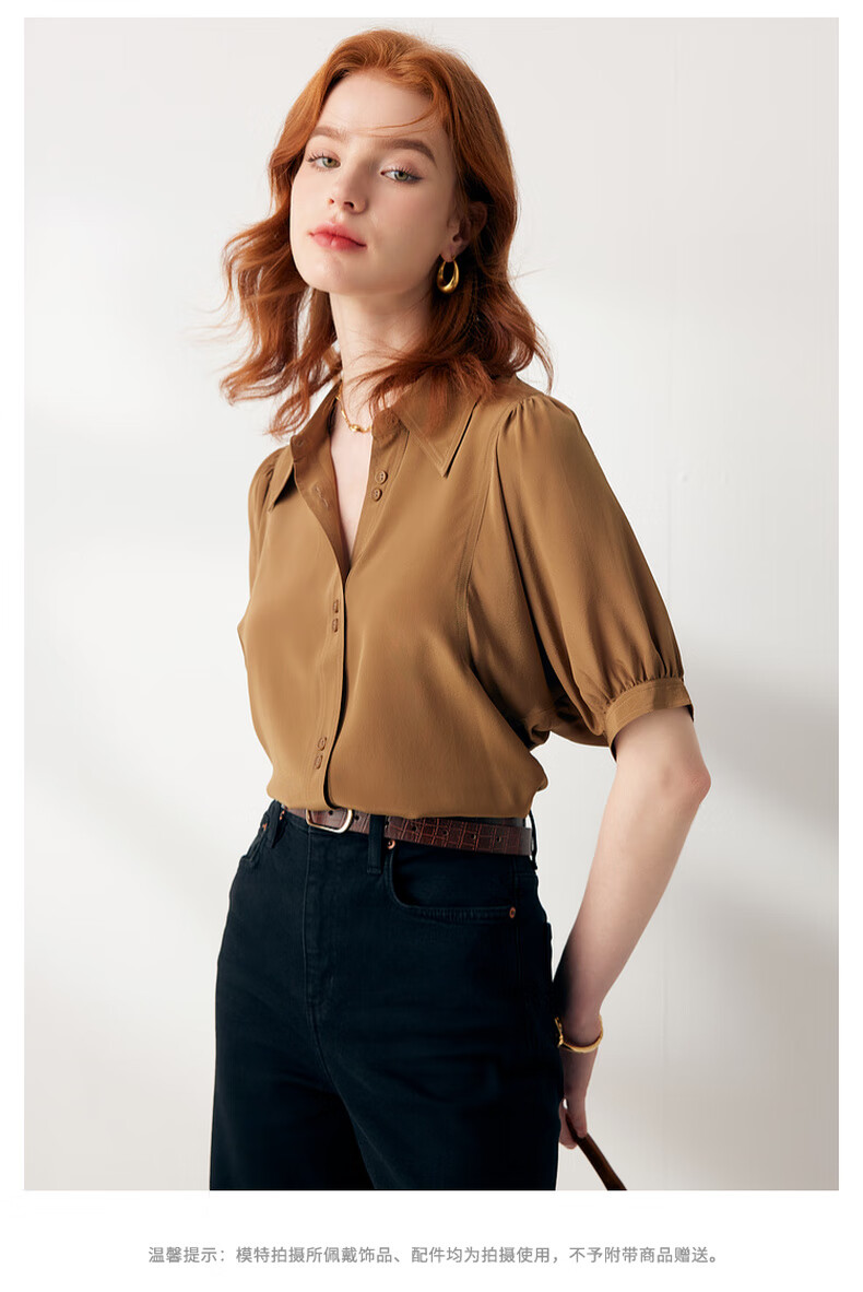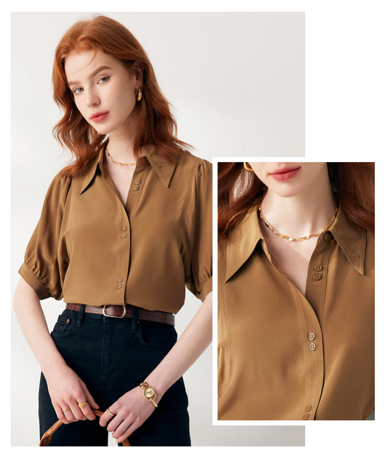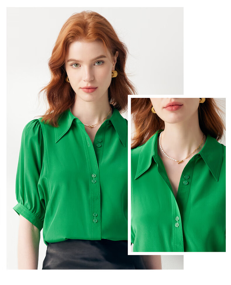 帕罗(PALUOPO)【慵懒气质】夏季季真丝衬衫领质感纯色泡泡袖桑蚕丝女士上装衬衣 黑 M (160/84A)
