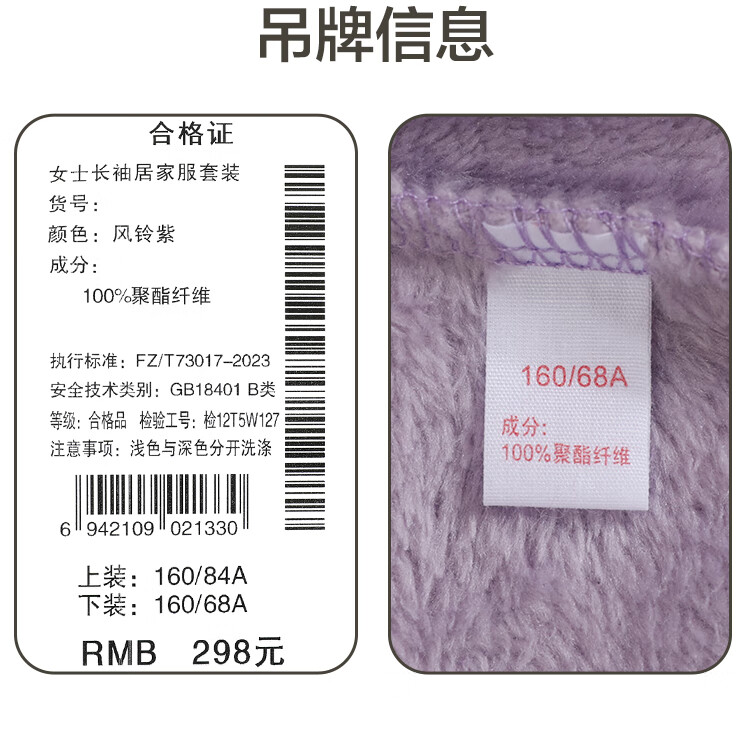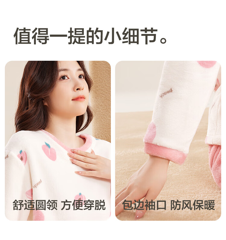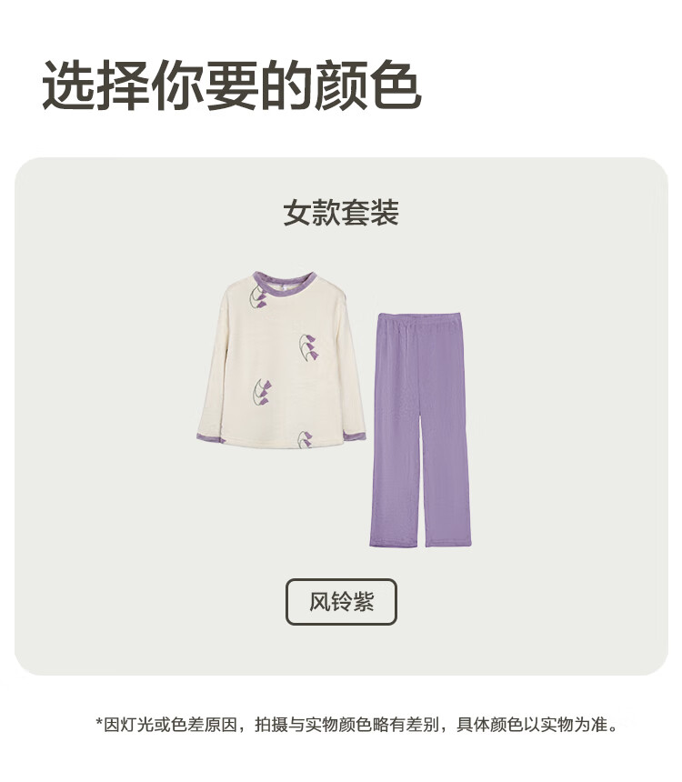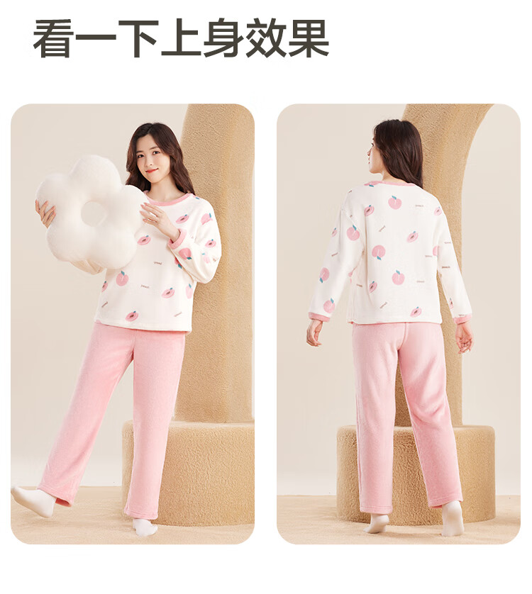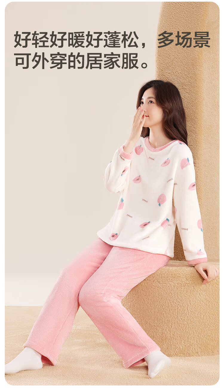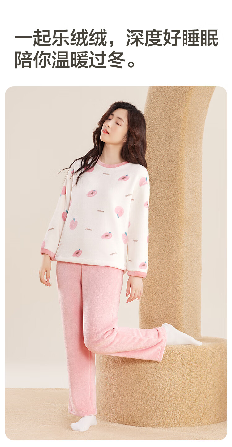 红豆居家睡衣女士法兰绒甜美套头睡衣女款柔软保暖圆领家居服 风铃紫728 M 165/88A