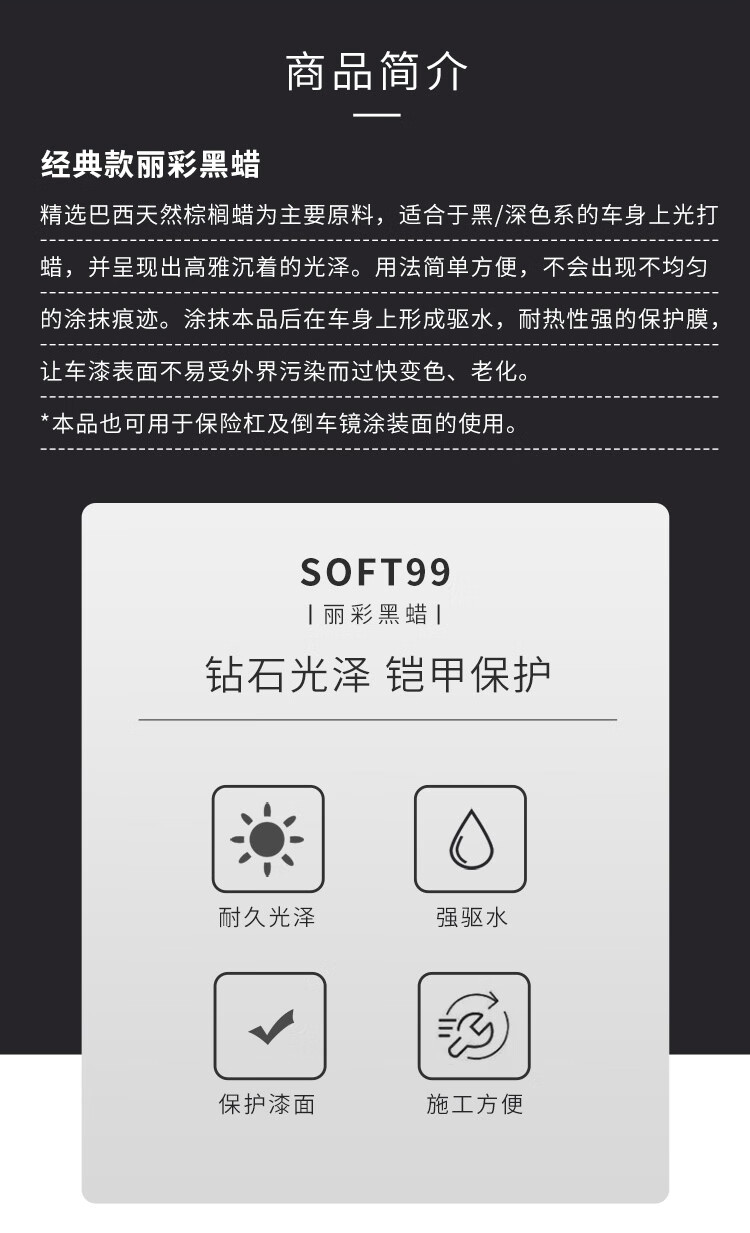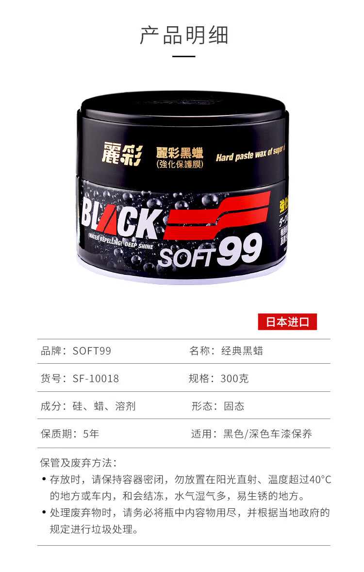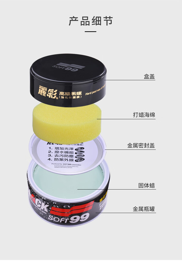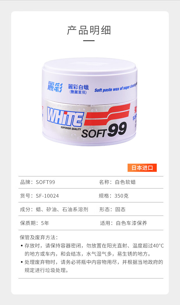 SOFT99汽车蜡抛光养护蜡日本进口 丽彩黑白蜡车漆打蜡去污防划痕上光蜡 白蜡 白色/浅色车用350g