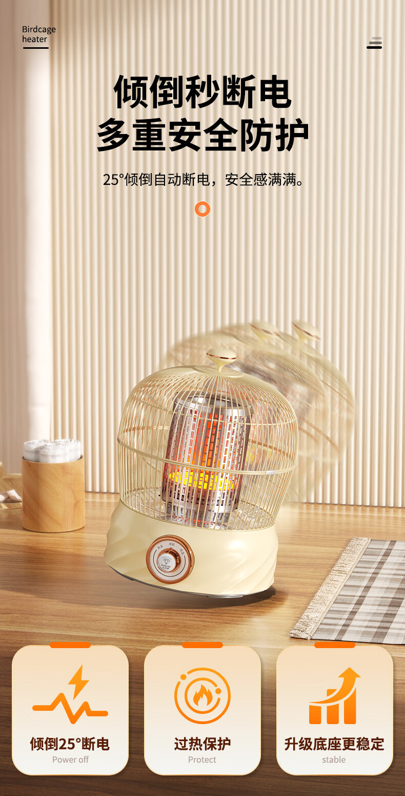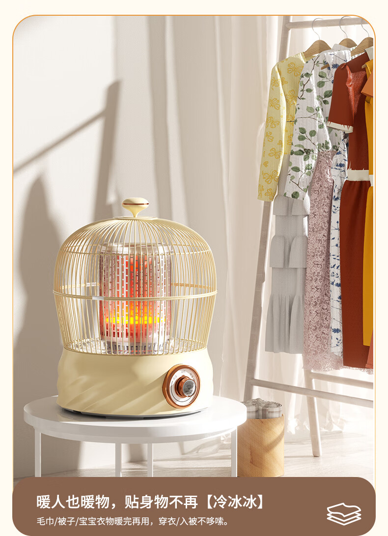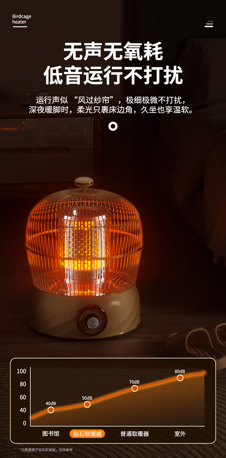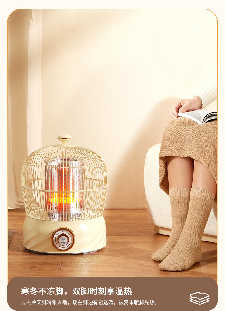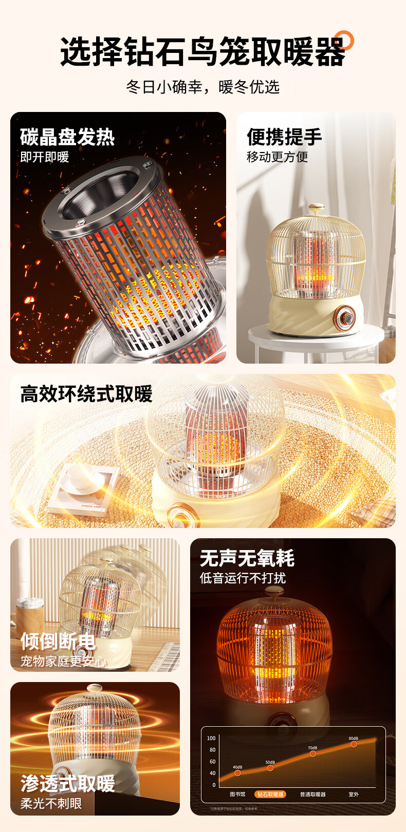 钻石牌(DIAMOND)鸟笼取暖器家用烤火炉取暖器鸟笼电暖器速热小太阳取暖器客厅电热取暖器节能电烤炉 奶油色【碳晶盘】无极调温+延长线