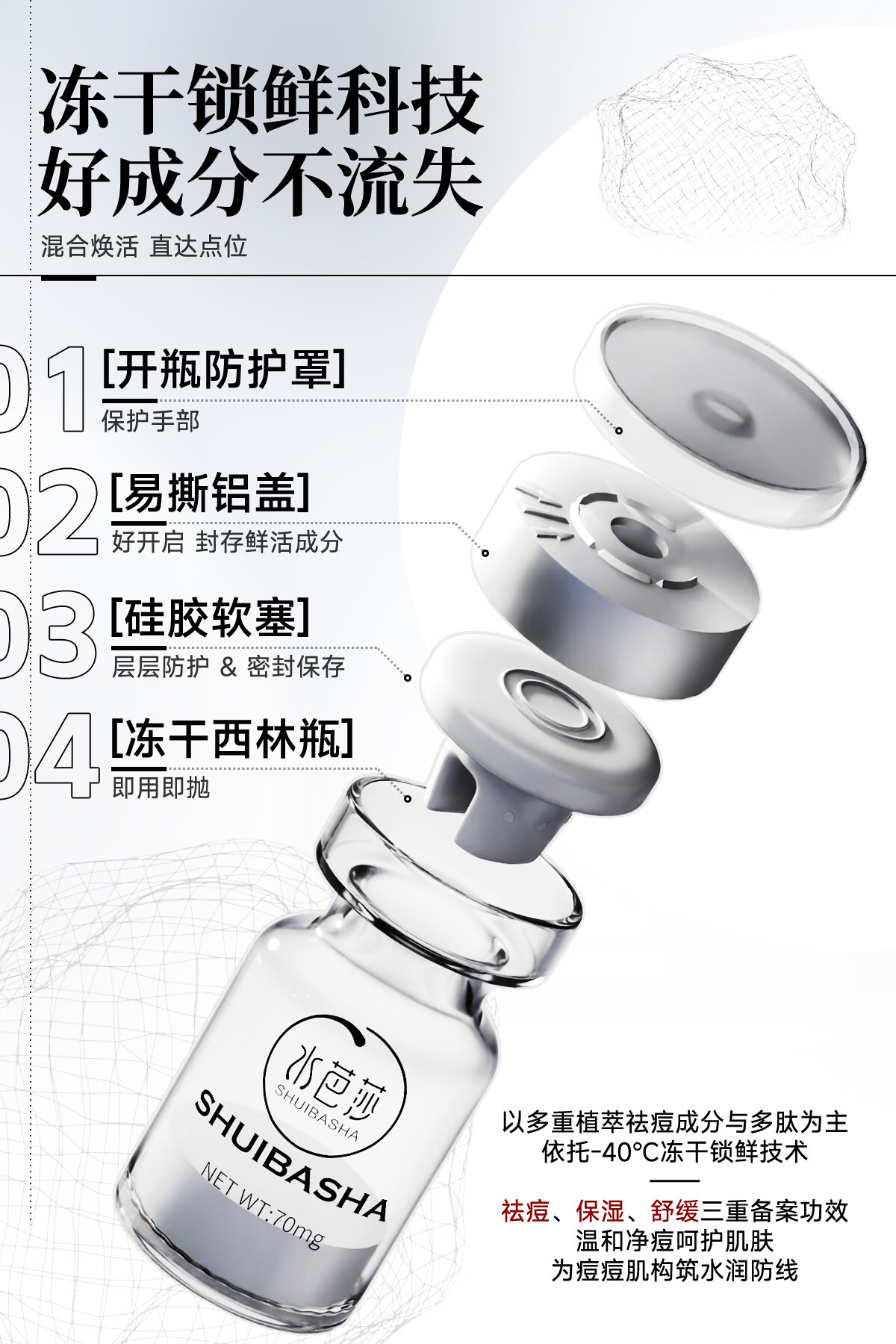 水芭莎20对装祛痘冻干粉多肽精华液淡化痘印保湿舒缓精华液护肤品礼物 祛痘5对装