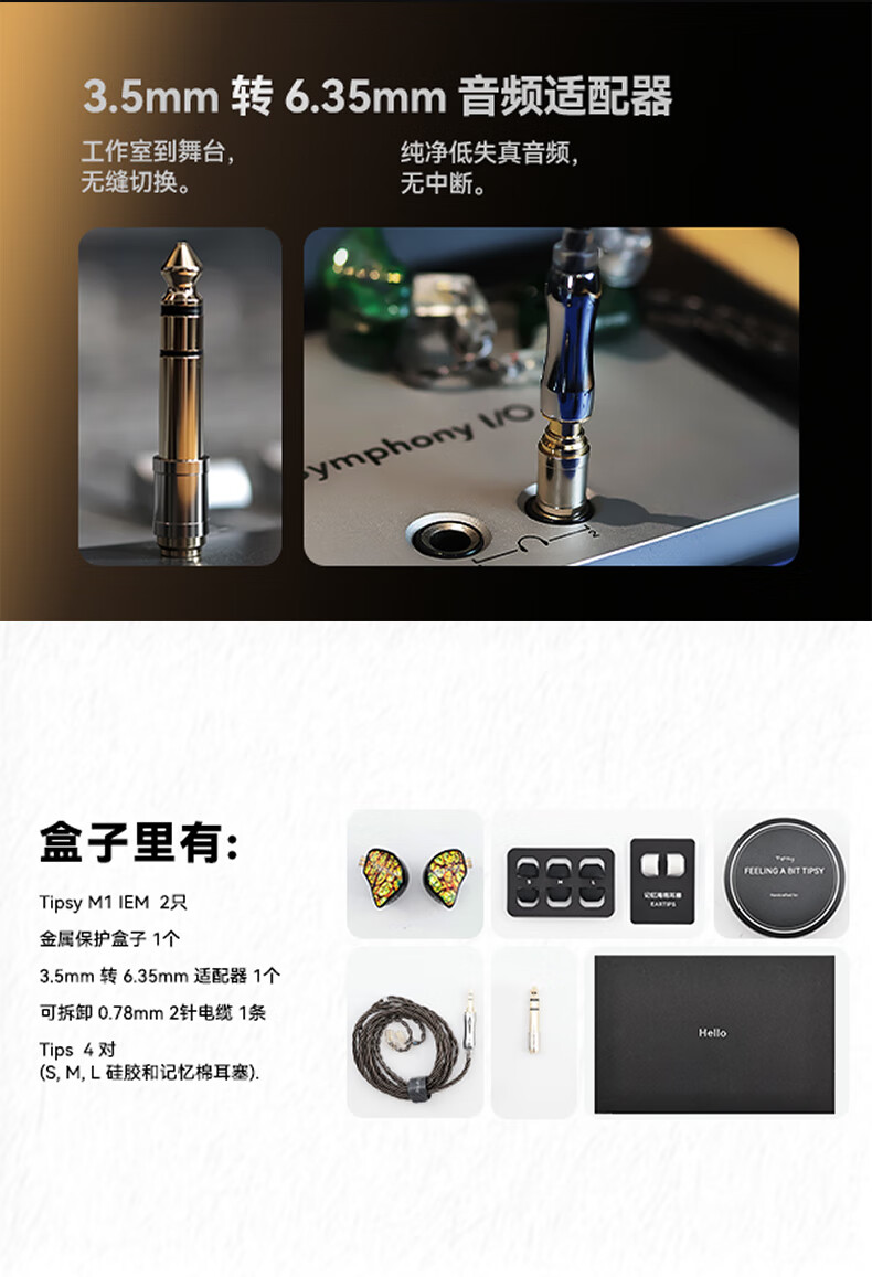 Tipsy微醺M1入耳式有线监听耳机高解析专业舞台歌手动圈耳返发烧发烧级游戏电竞麦克风hifi 夜溟蓝