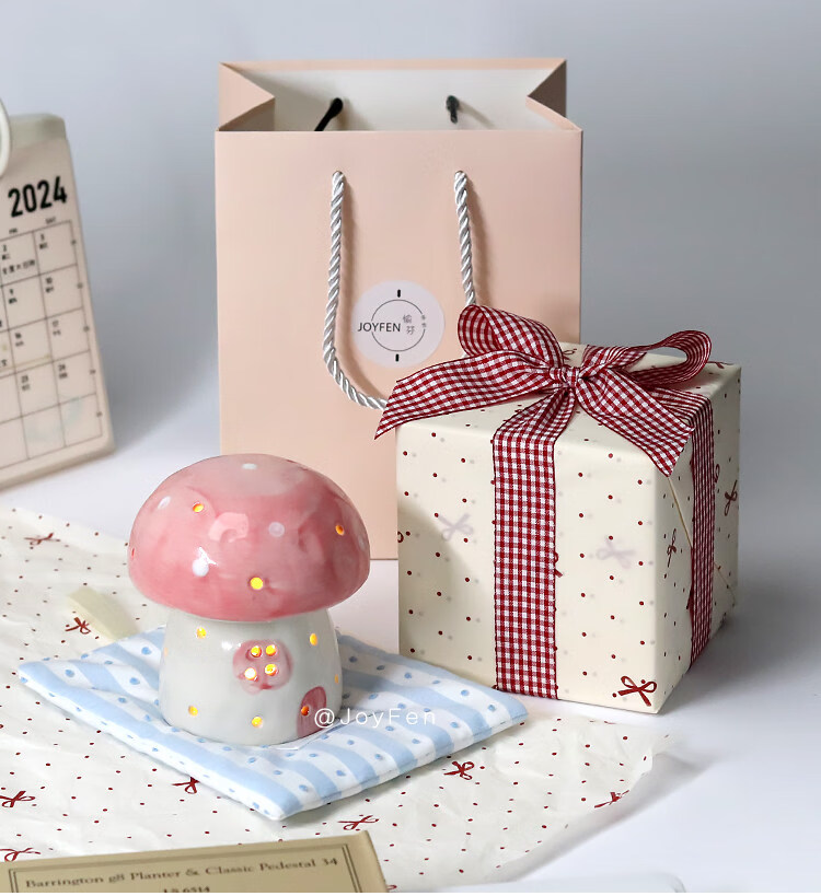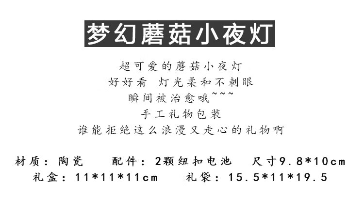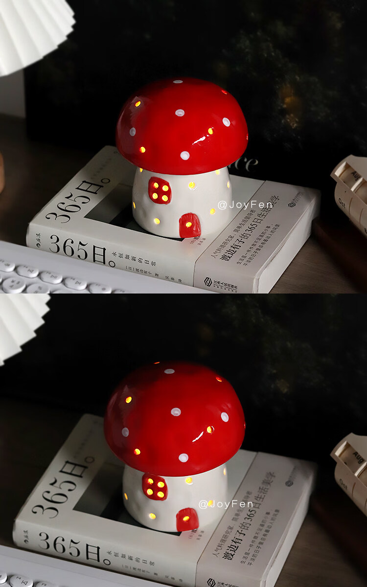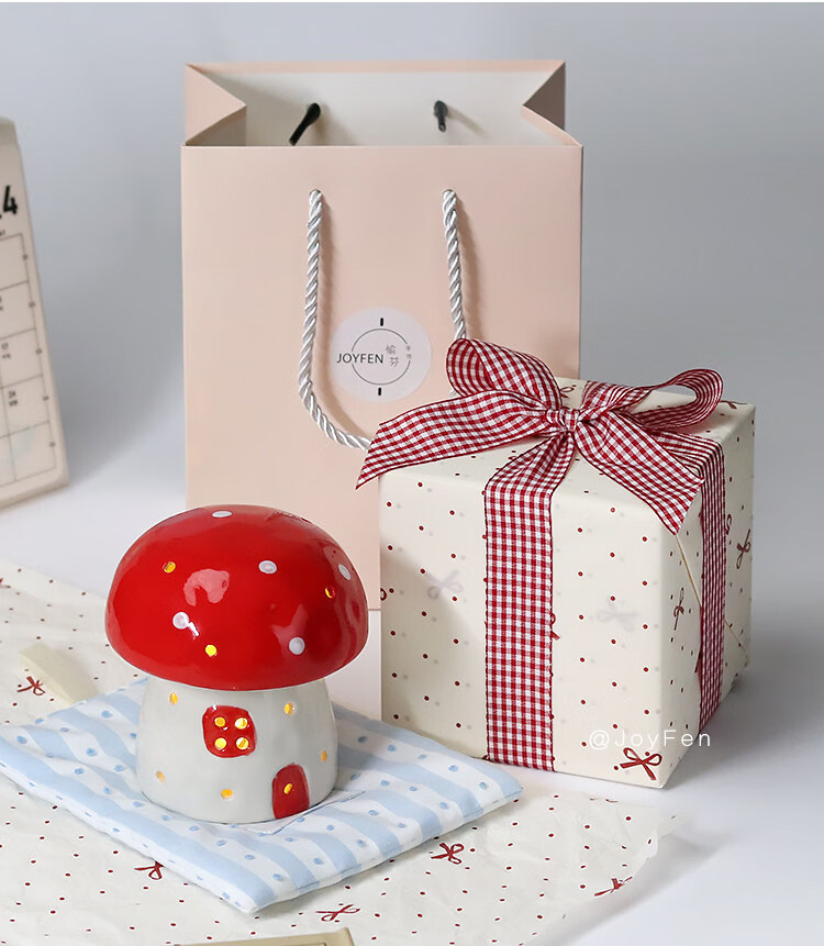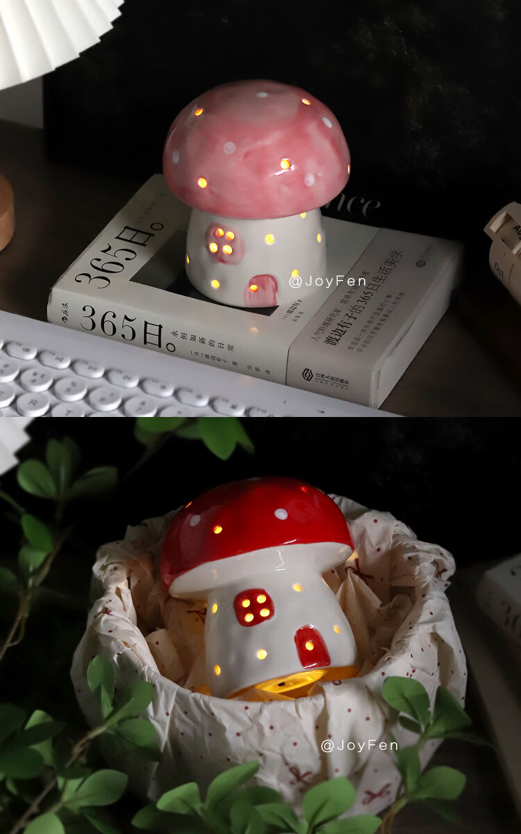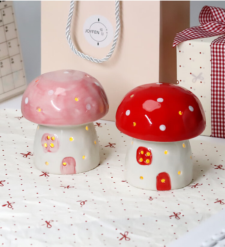 陶瓷蘑菇小夜灯闺蜜生日礼物女生氛围感可爱儿童女孩卧室宿舍床头 红色蘑菇【礼物纸包装】