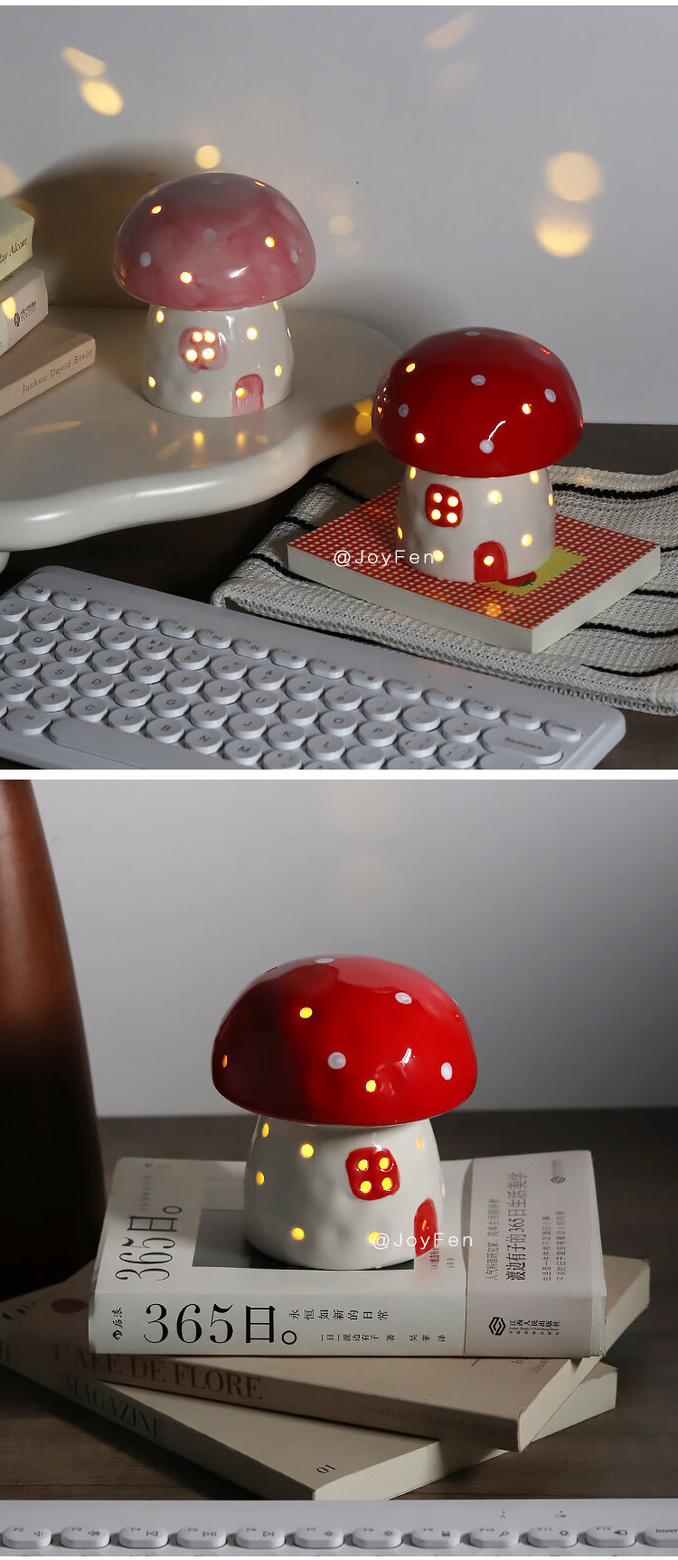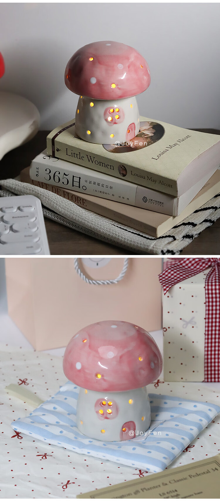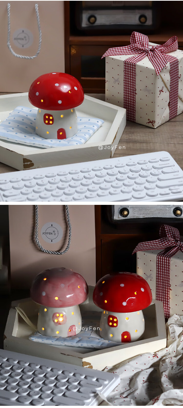 陶瓷蘑菇小夜灯闺蜜生日礼物女生氛围感可爱儿童女孩卧室宿舍床头 红色蘑菇【礼物纸包装】