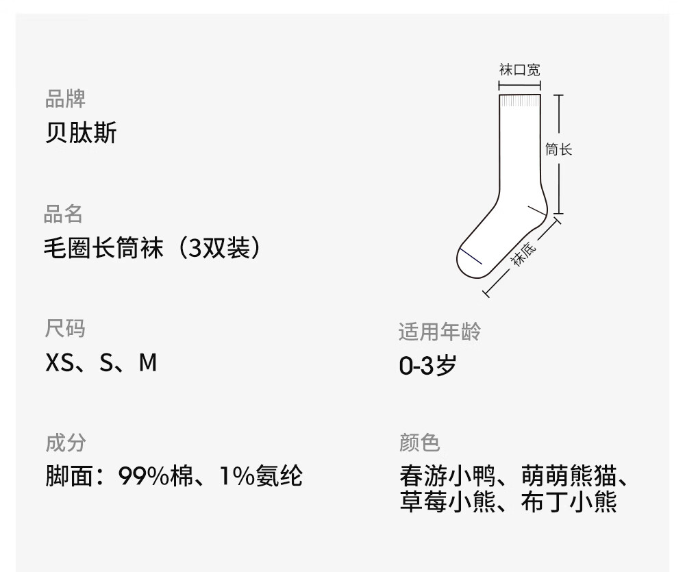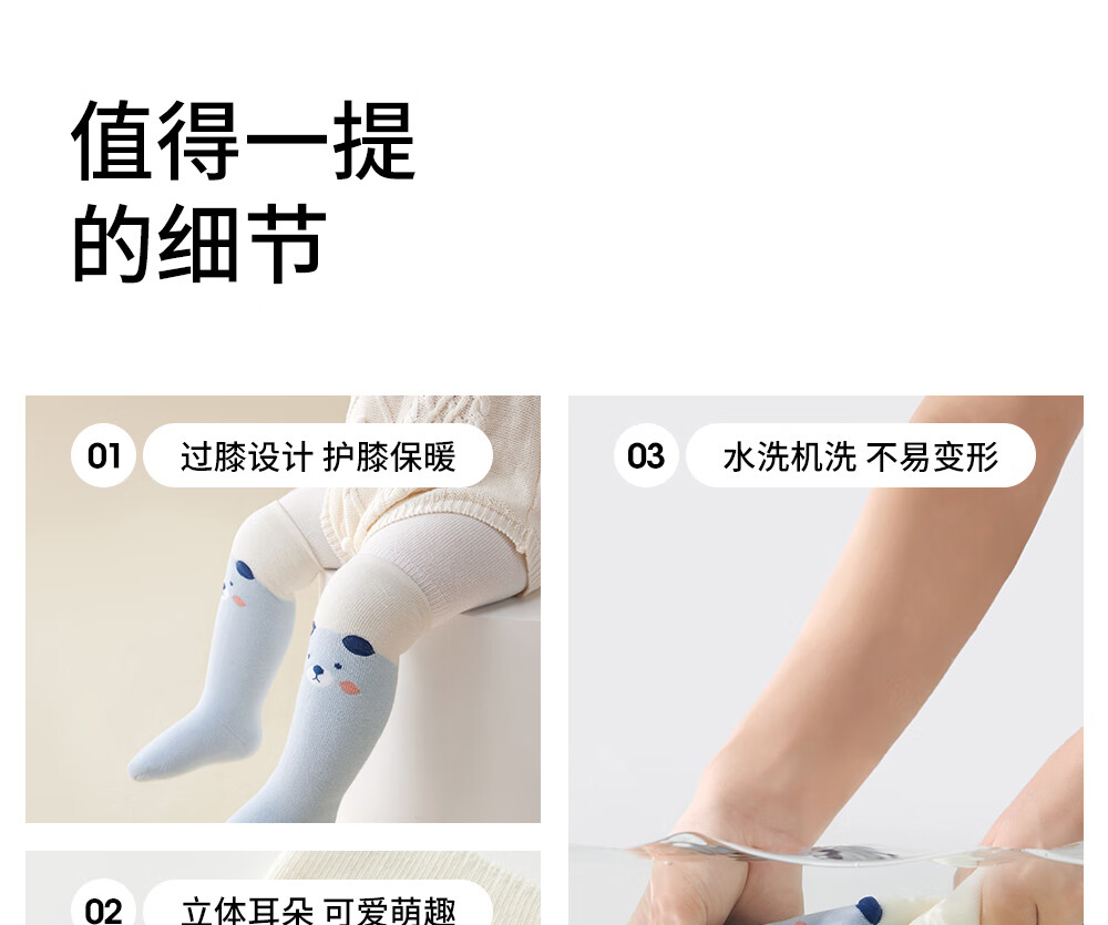 贝肽斯婴儿长筒袜秋冬宝宝过膝袜加厚0到3月新生儿长袜不勒腿 萌萌熊猫 1-3岁 【适合脚长12-14cm】3双装