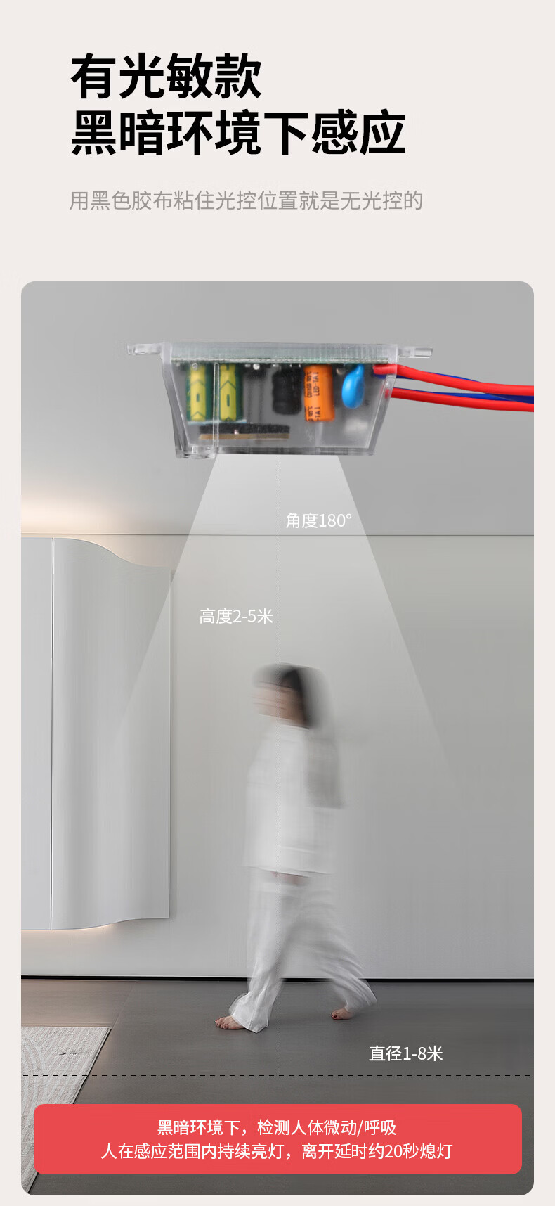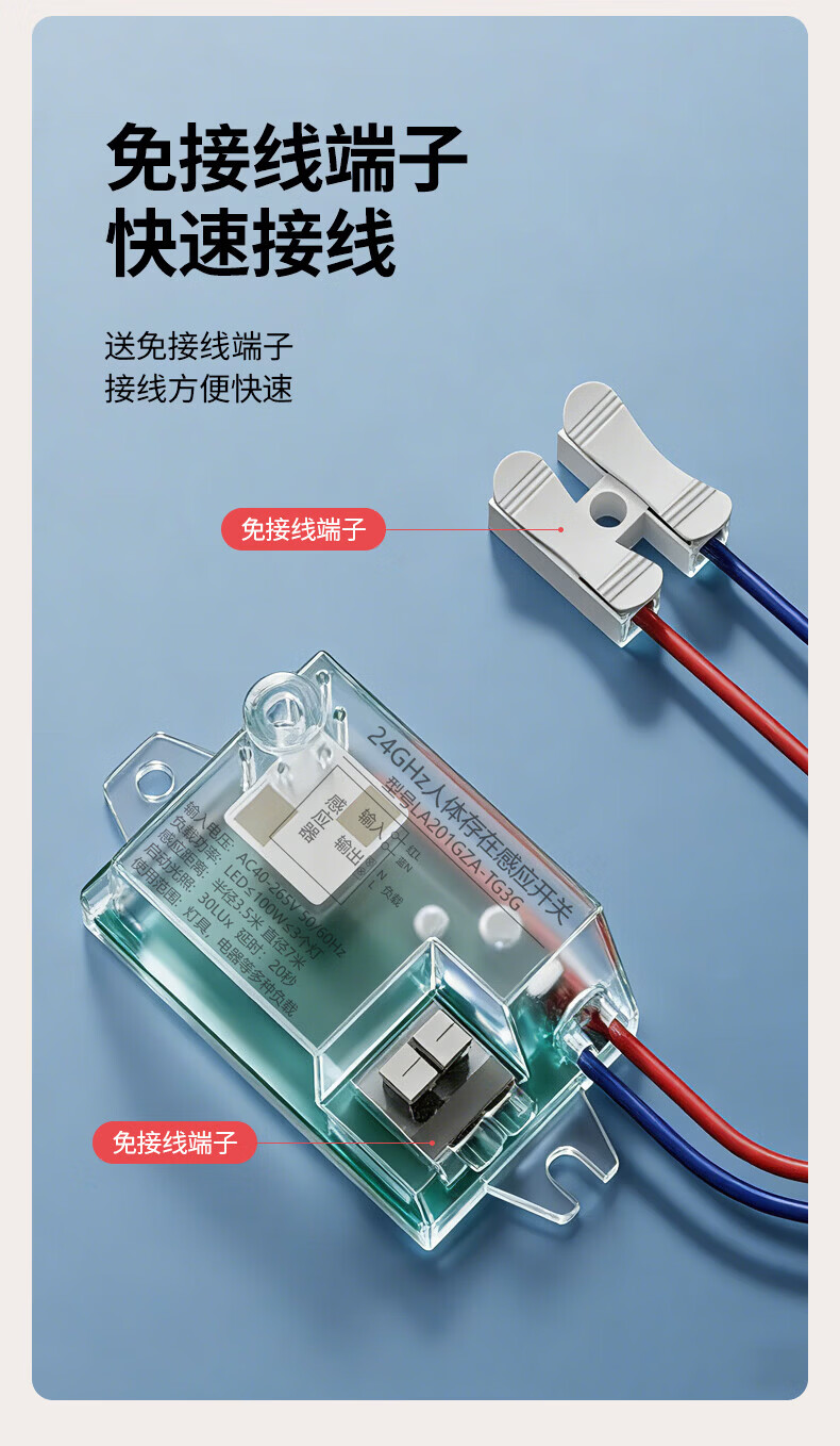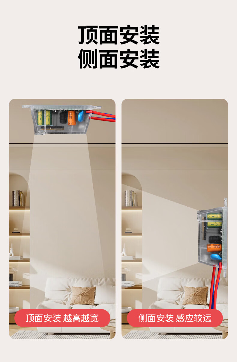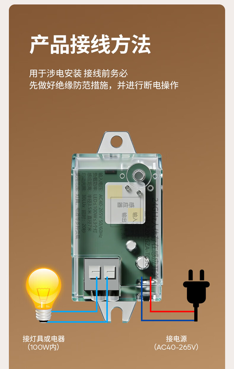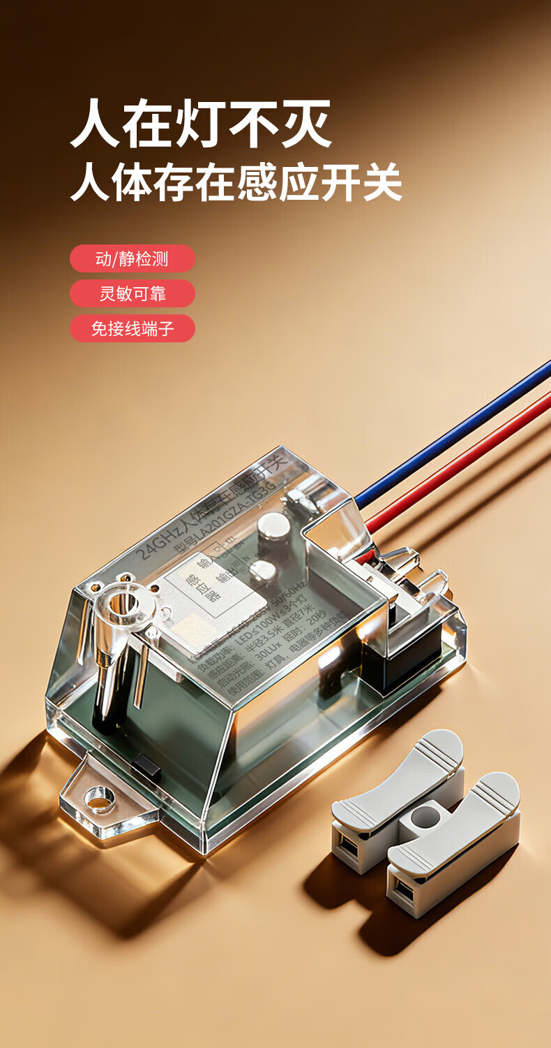 国际电工220v人体存在感应开关24G毫米波呼吸心跳人在灯不灭 智能雷达控制 雷达人体感应开关-100W【1只装】