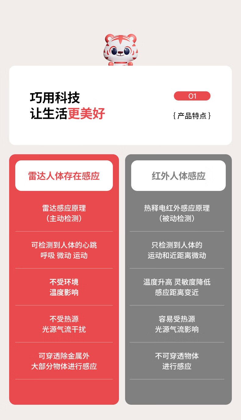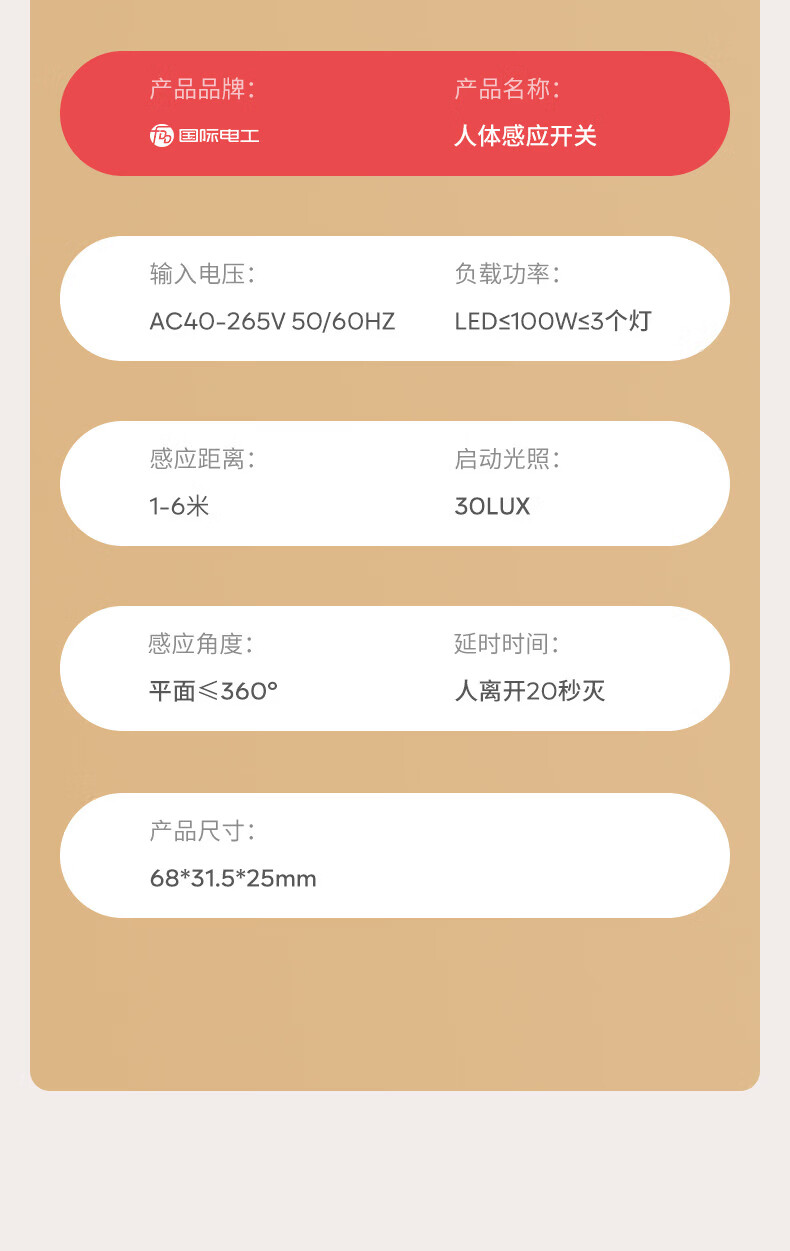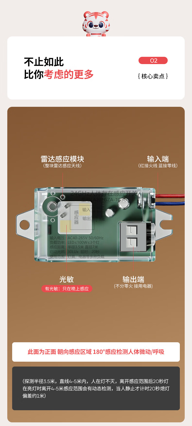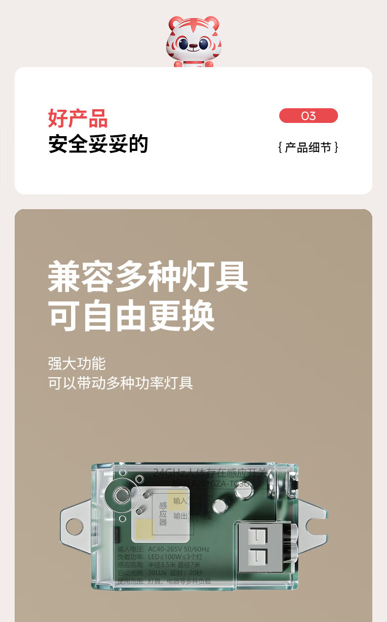 国际电工220v人体存在感应开关24G毫米波呼吸心跳人在灯不灭 智能雷达控制 雷达人体感应开关-100W【1只装】