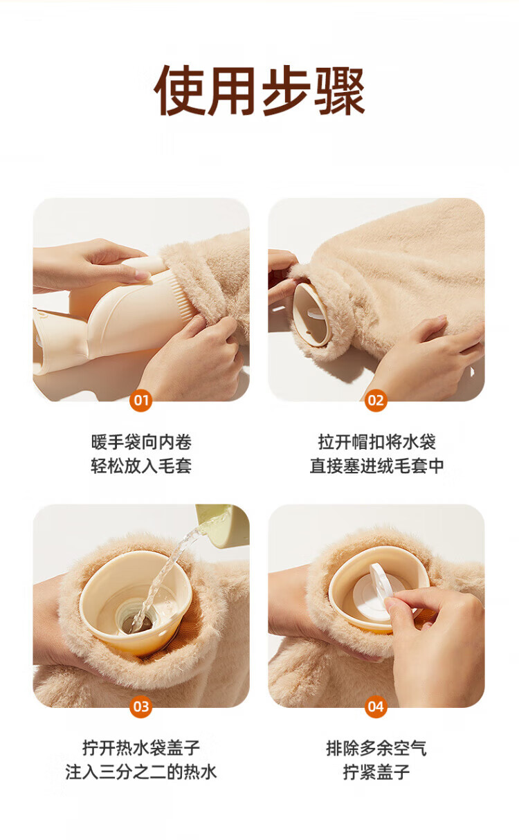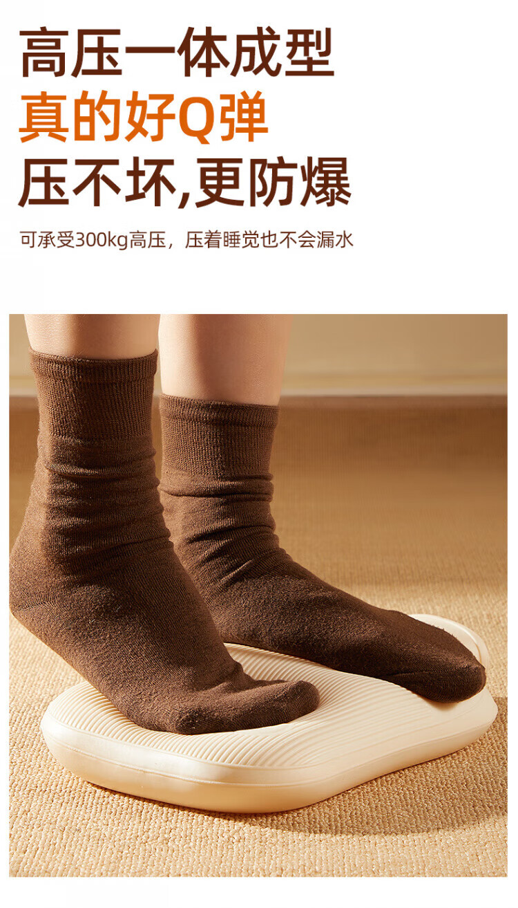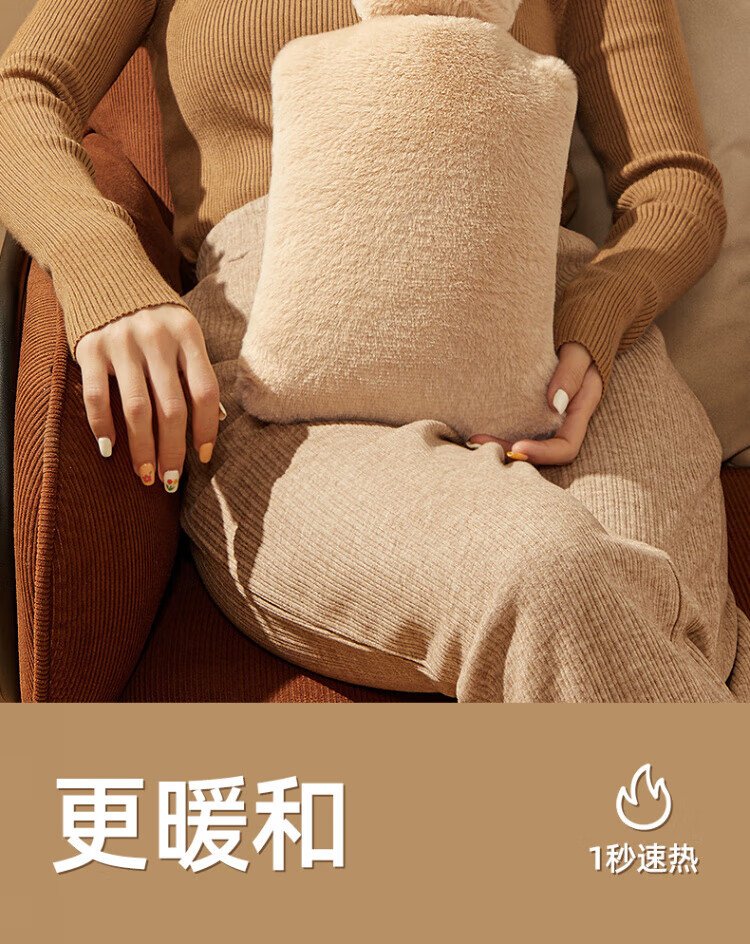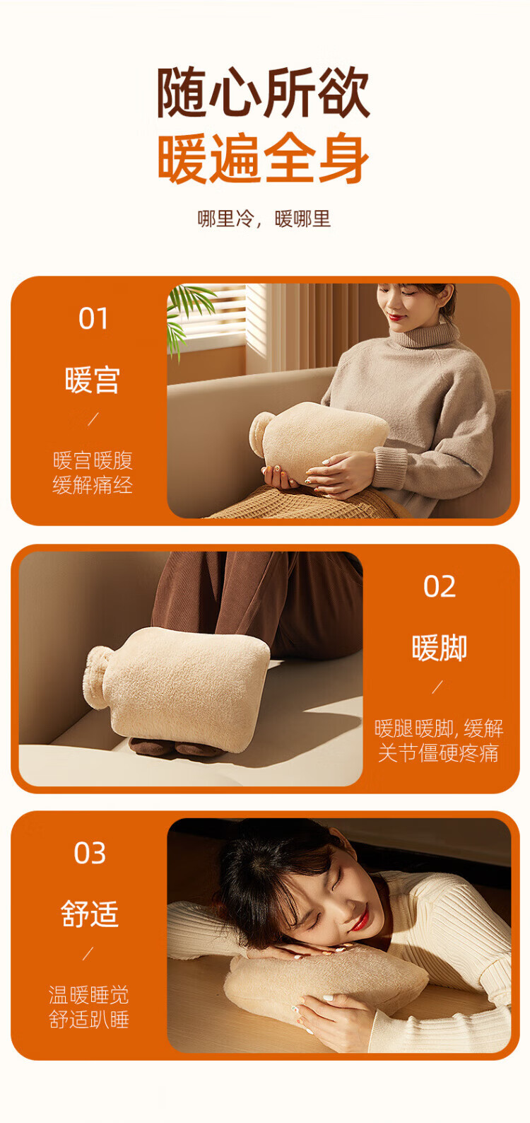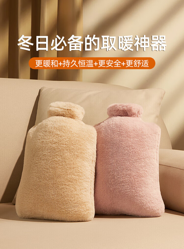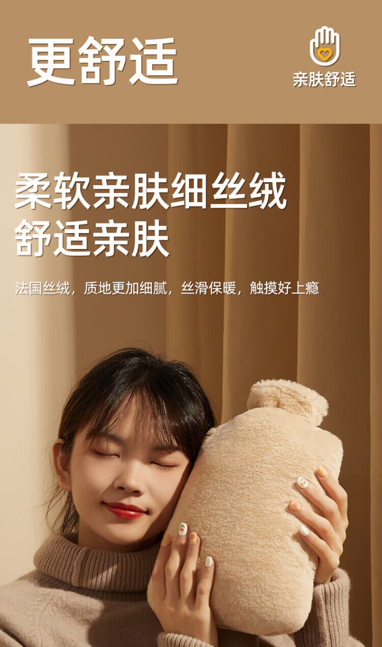 WCZ德国热水袋注水暖水袋暖手宝防爆女生被窝热敷肚子用圣诞节礼物 浅米咖-中号【食品级加厚硅胶+兔毛绒布套】