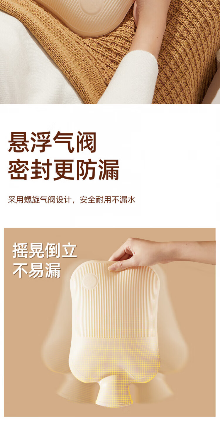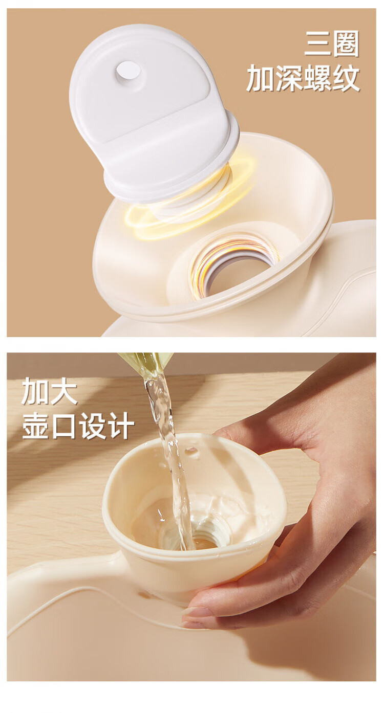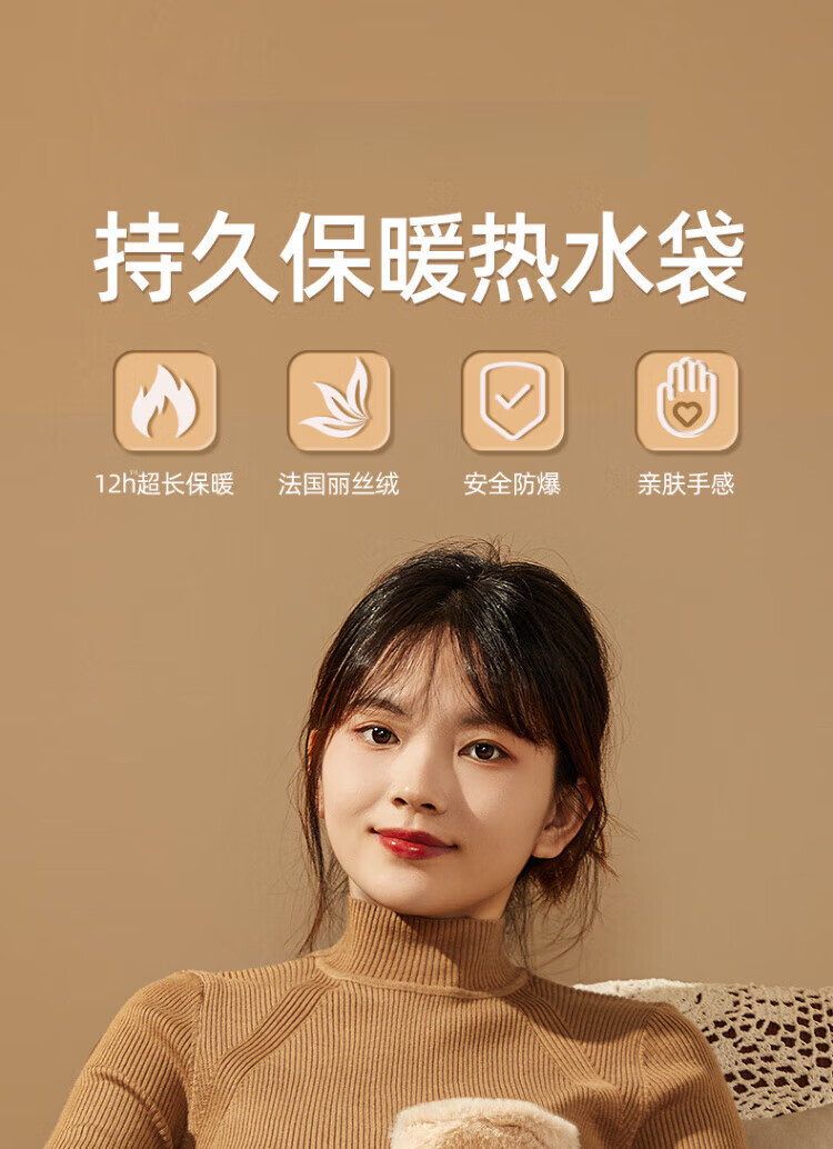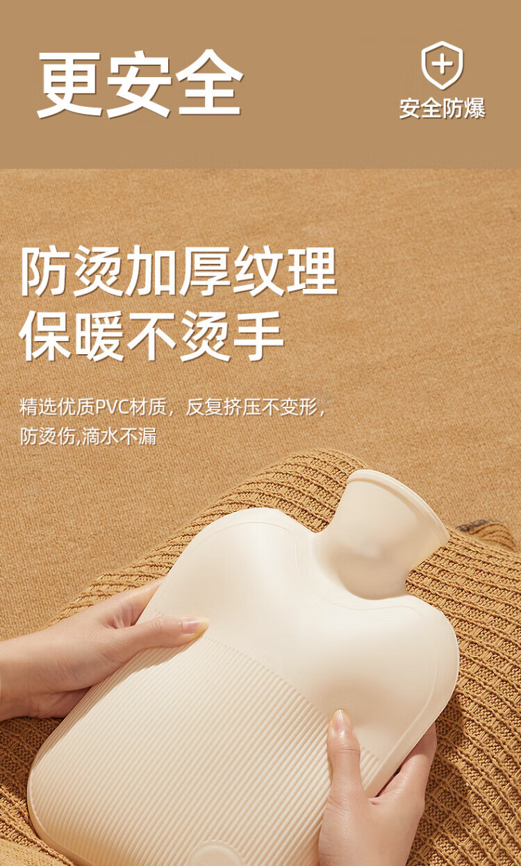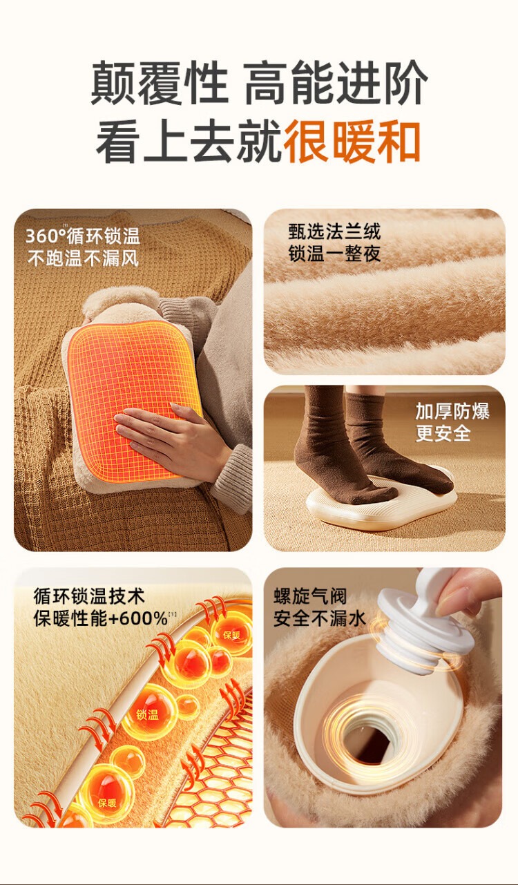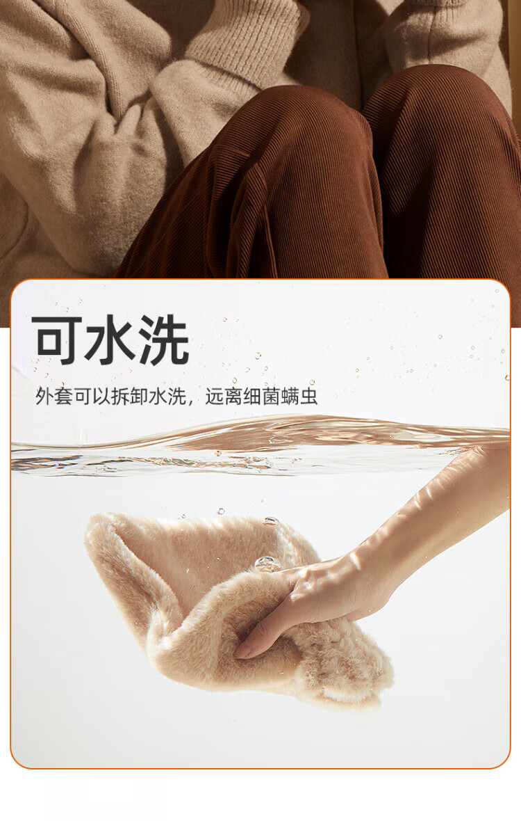 WCZ德国热水袋注水暖水袋暖手宝防爆女生被窝热敷肚子用圣诞节礼物 浅米咖-中号【食品级加厚硅胶+兔毛绒布套】