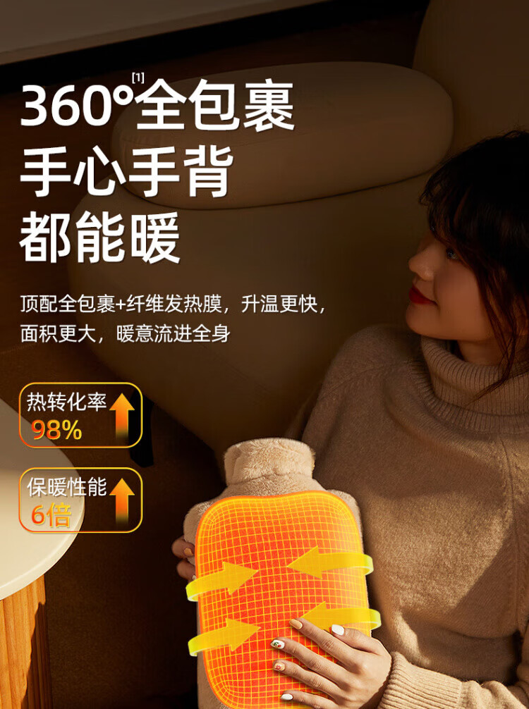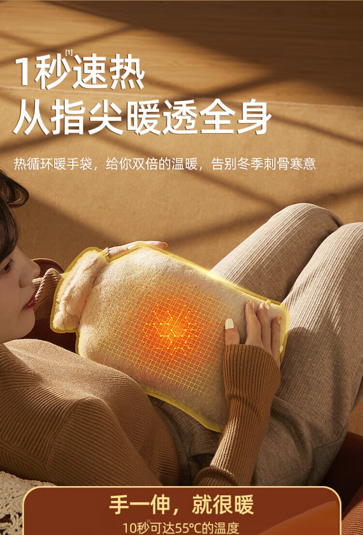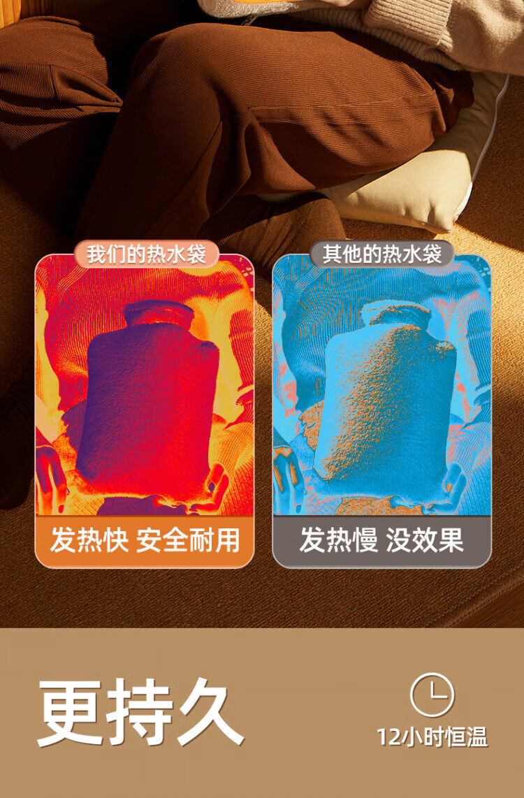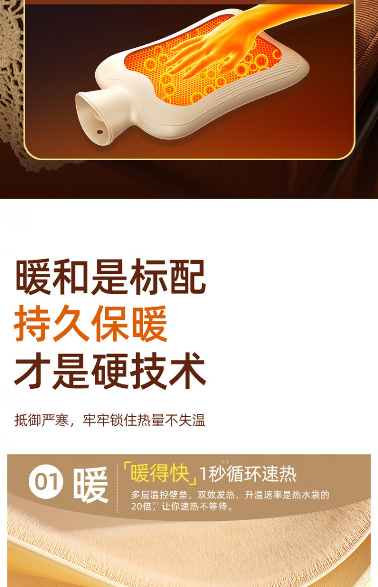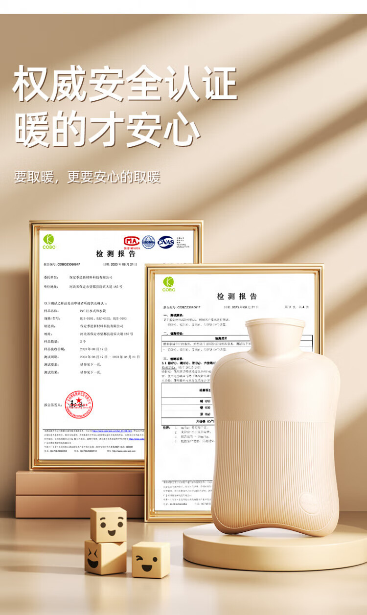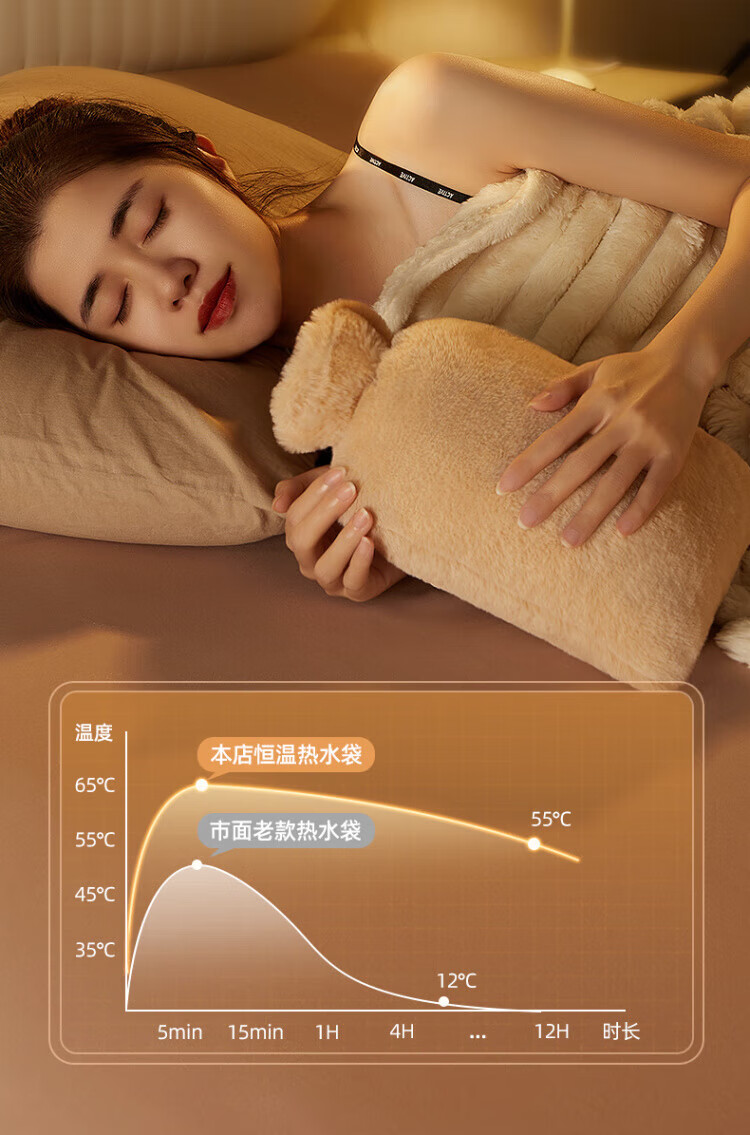 WCZ德国热水袋注水暖水袋暖手宝防爆女生被窝热敷肚子用圣诞节礼物 浅米咖-中号【食品级加厚硅胶+兔毛绒布套】