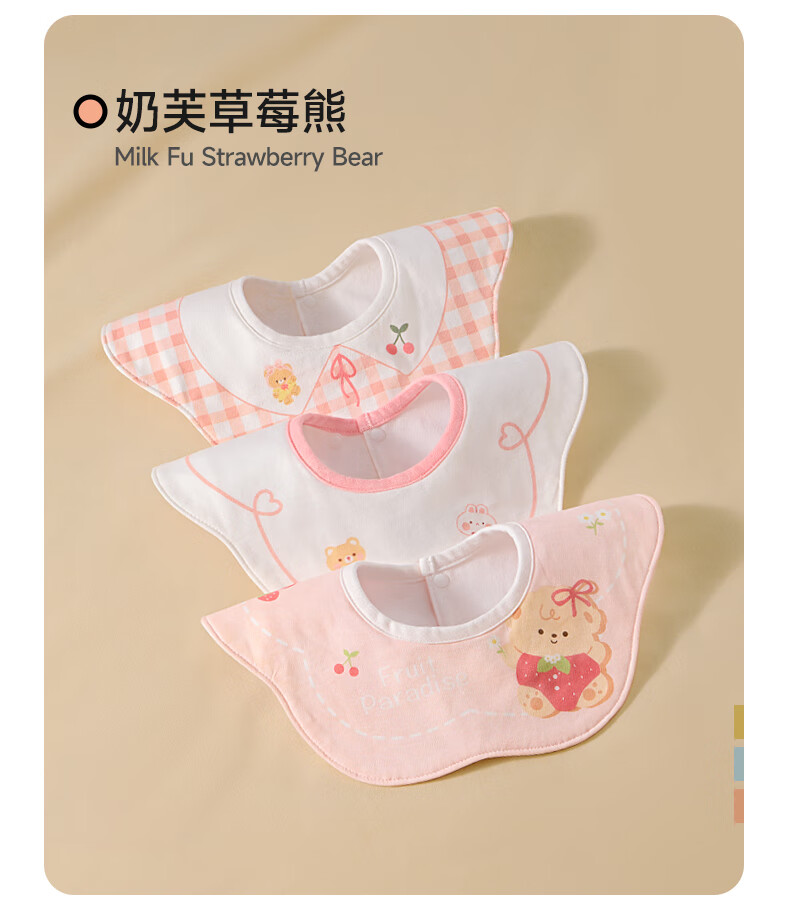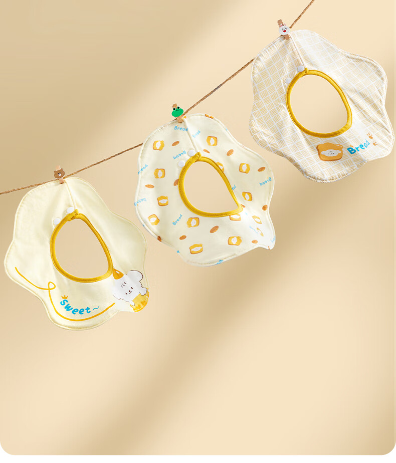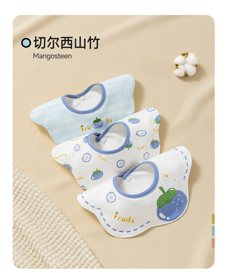 贝肽斯婴儿口水巾宝宝围嘴导湿速干纯棉儿童防水围兜 山竹3条装 28*26cm