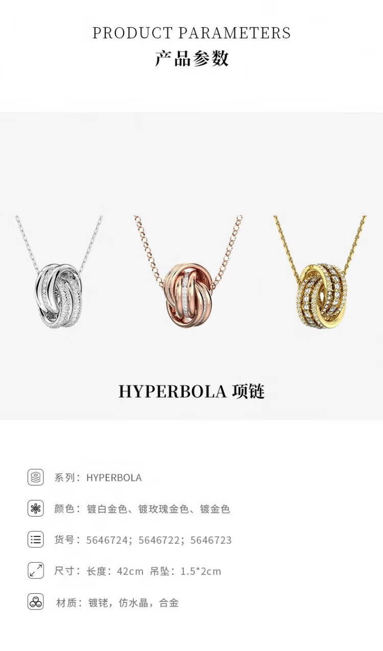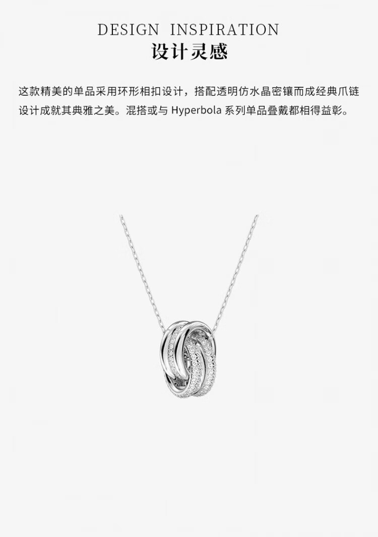 施华洛世奇(SWAROVSKI)圣诞礼物Hyperbola项链女绳结吊坠轻奢小众送女友女 镀白金色5646724