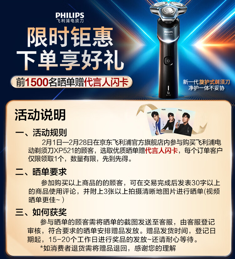 飞利浦电动剃须刀新一代旋护机皇5系 净护双升级AI智能痘敏肌刮胡刀 生日礼物送男生老公父亲