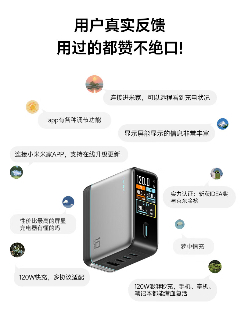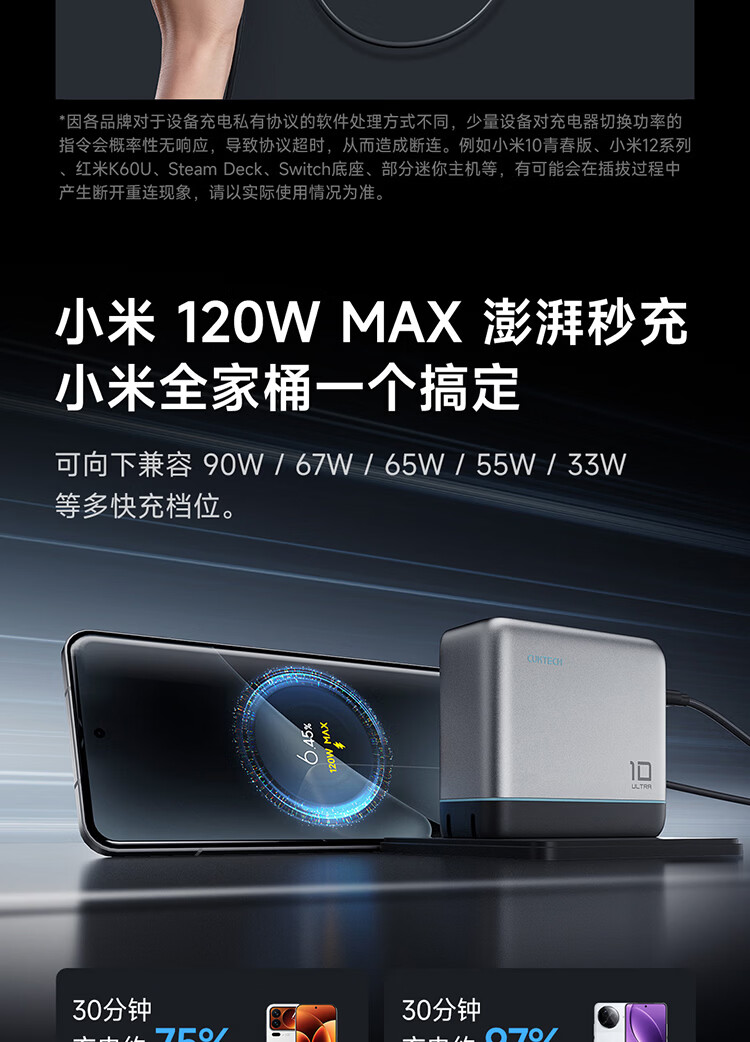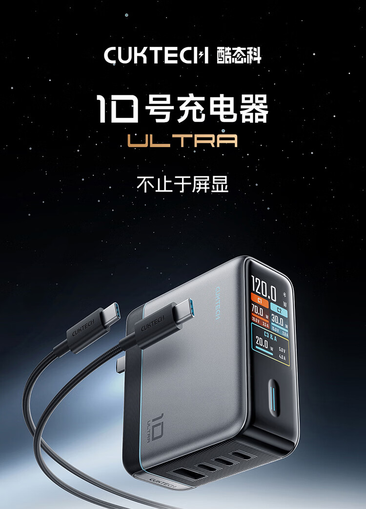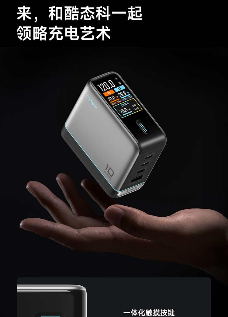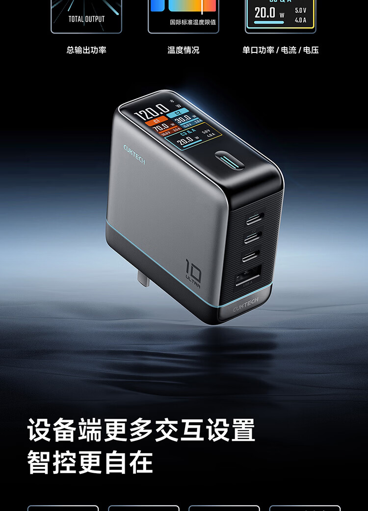 CUKTECH酷态科10号超级电能充Ultra氮化镓充电器120W多口快充头接入米家APP兼容PPS100W笔记本小米/苹果17