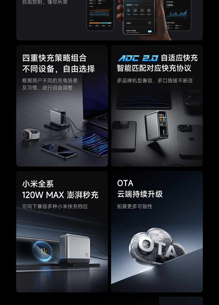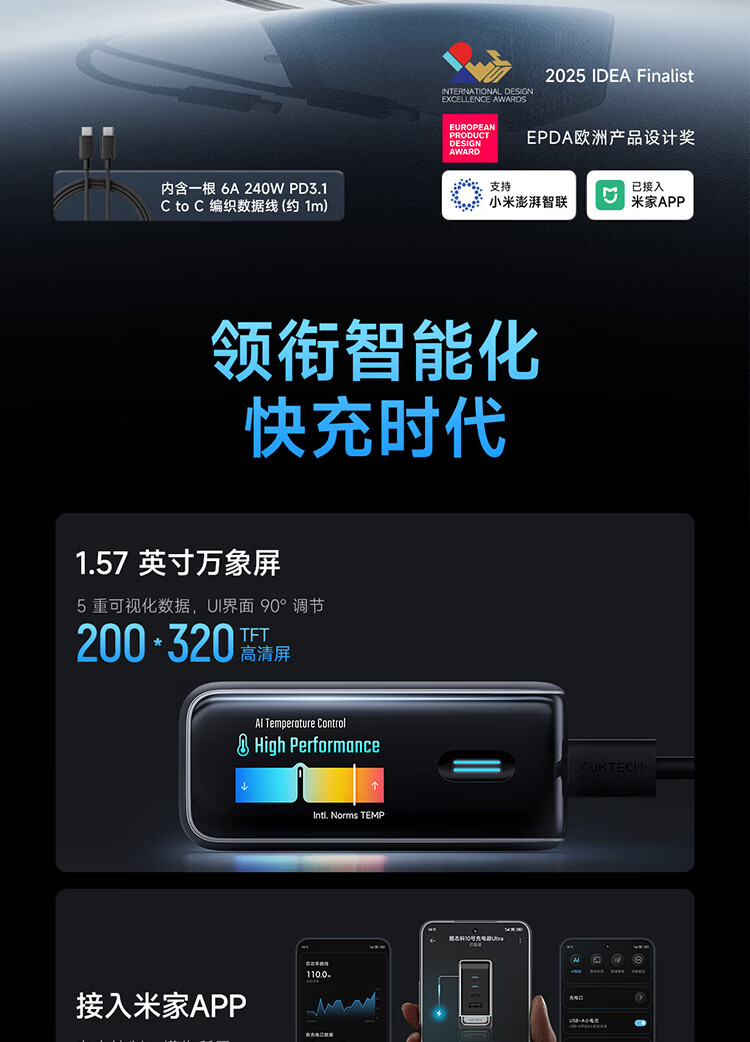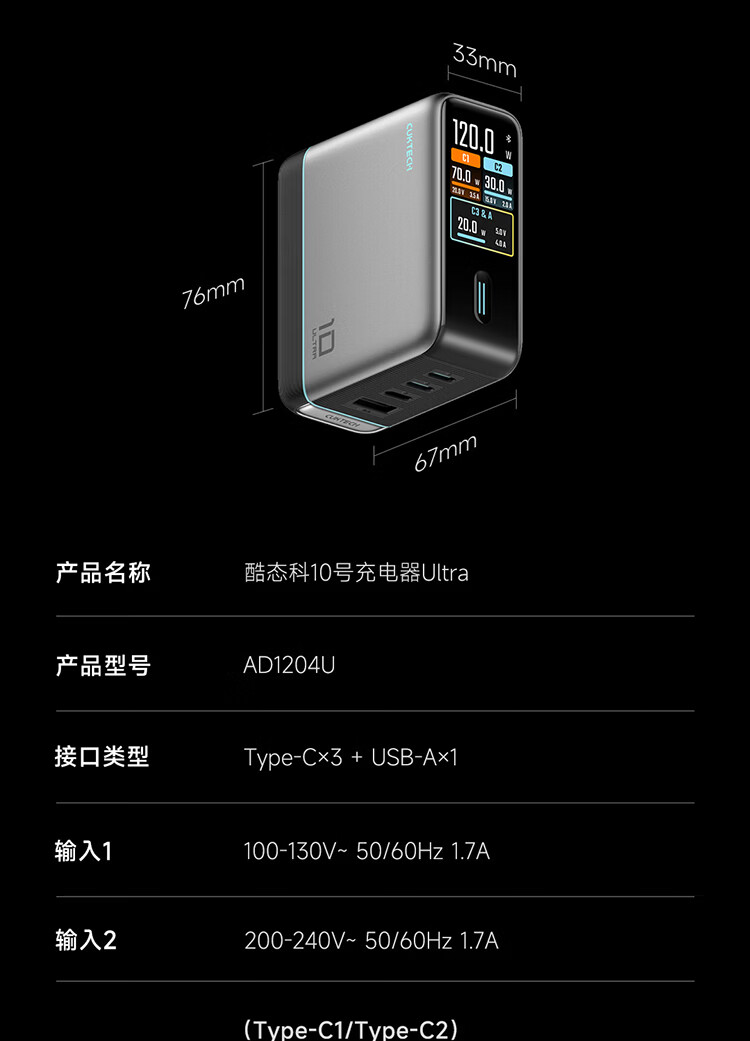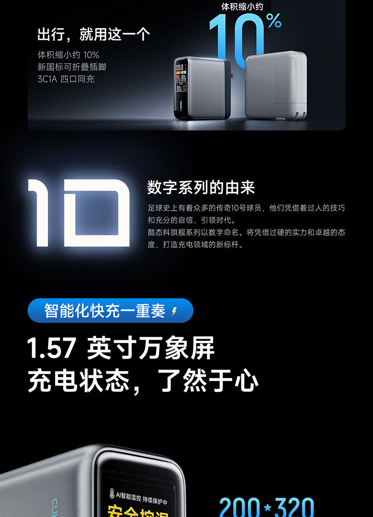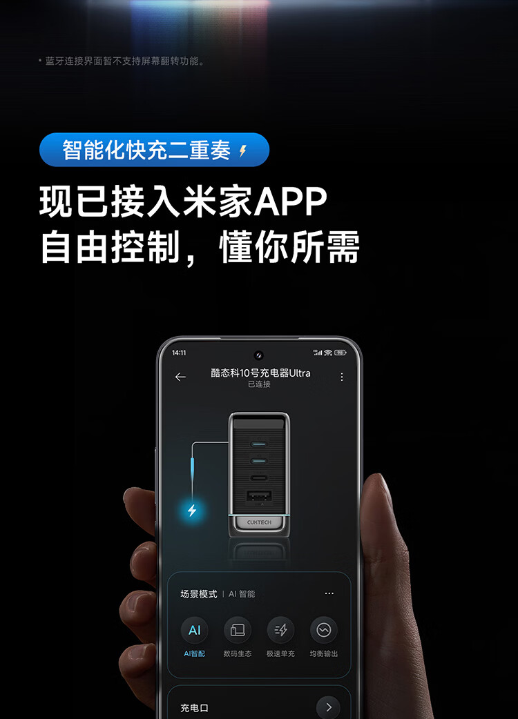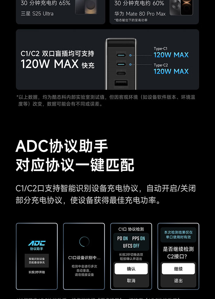CUKTECH酷态科10号超级电能充Ultra氮化镓充电器120W多口快充头接入米家APP兼容PPS100W笔记本小米/苹果17