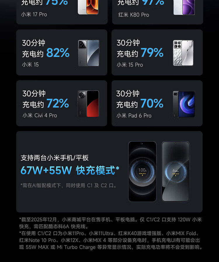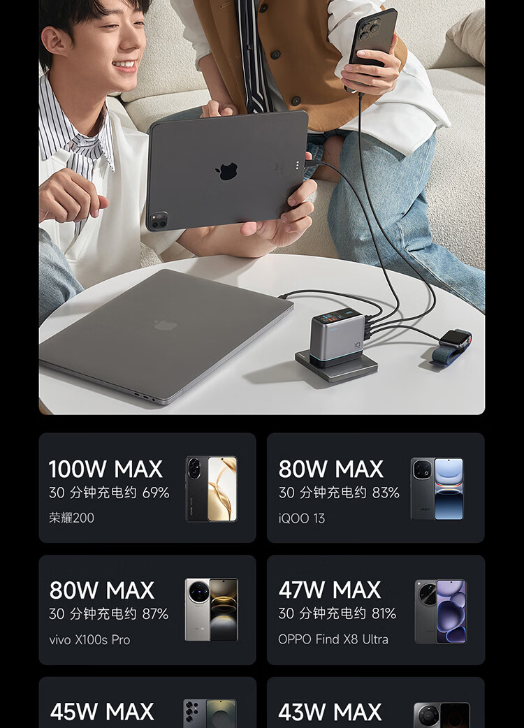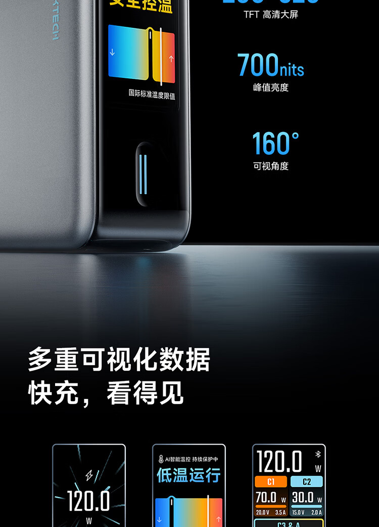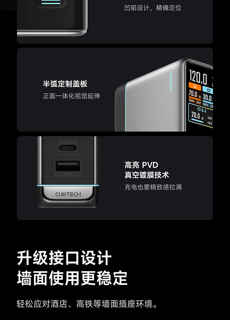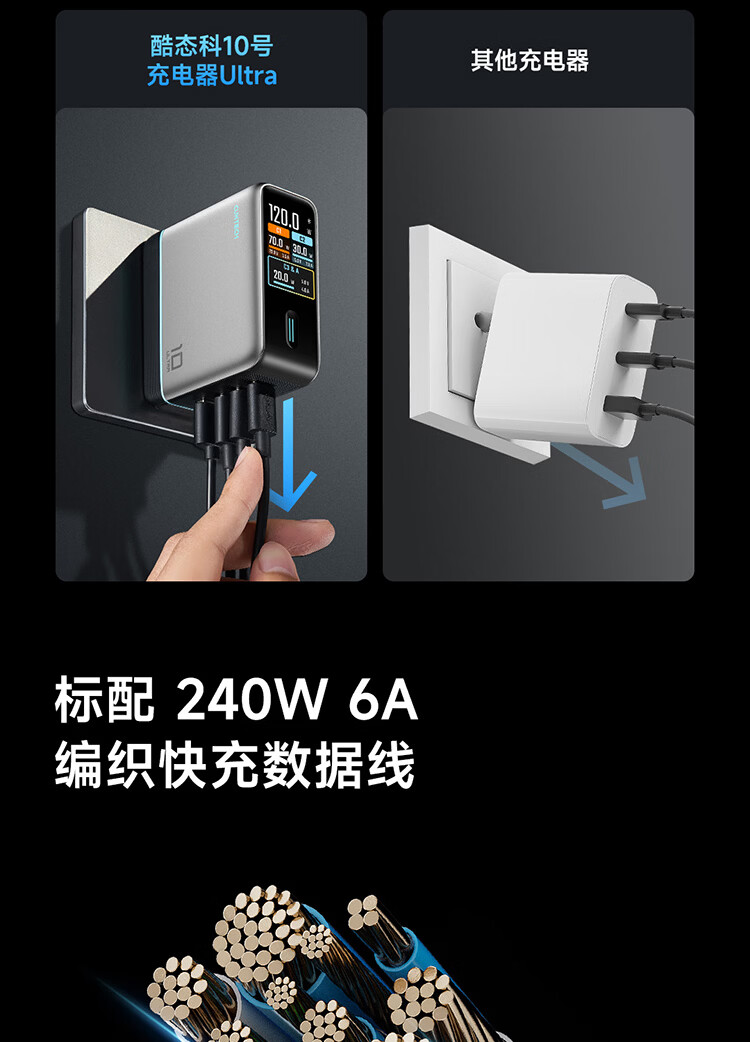 CUKTECH酷态科10号超级电能充Ultra氮化镓充电器120W多口快充头接入米家APP兼容PPS100W笔记本小米/苹果17