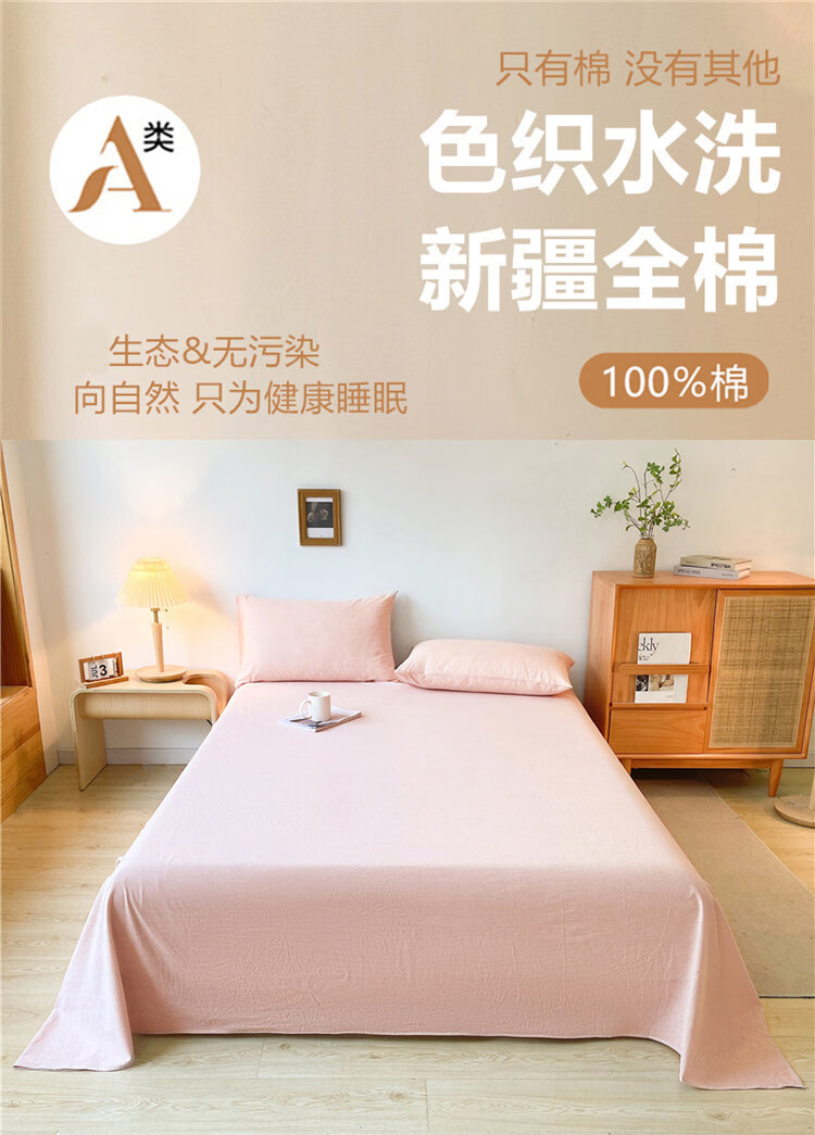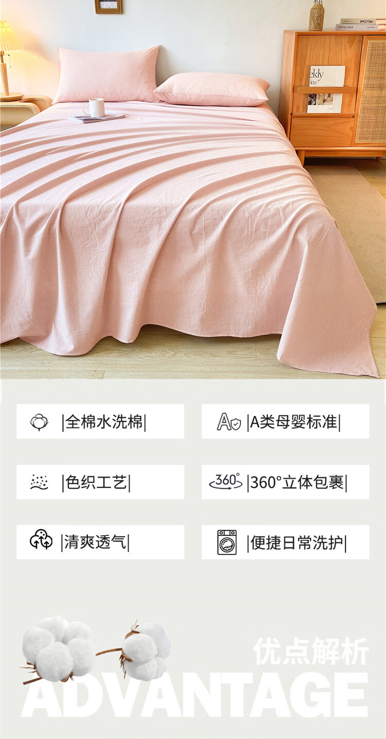 恒源祥 纯棉四件套 60S新疆长绒棉四件套100%棉面料四季通用轻奢套件 悦妍-粉 60支 【100%纯棉】 1.5米床 床单款 (被套200*230cm)