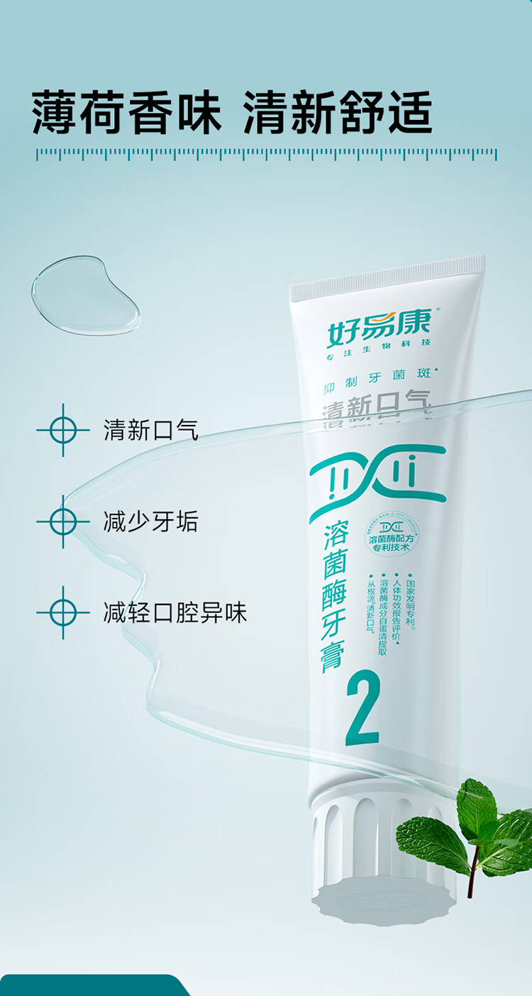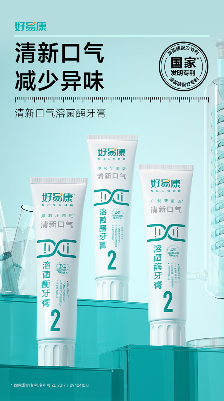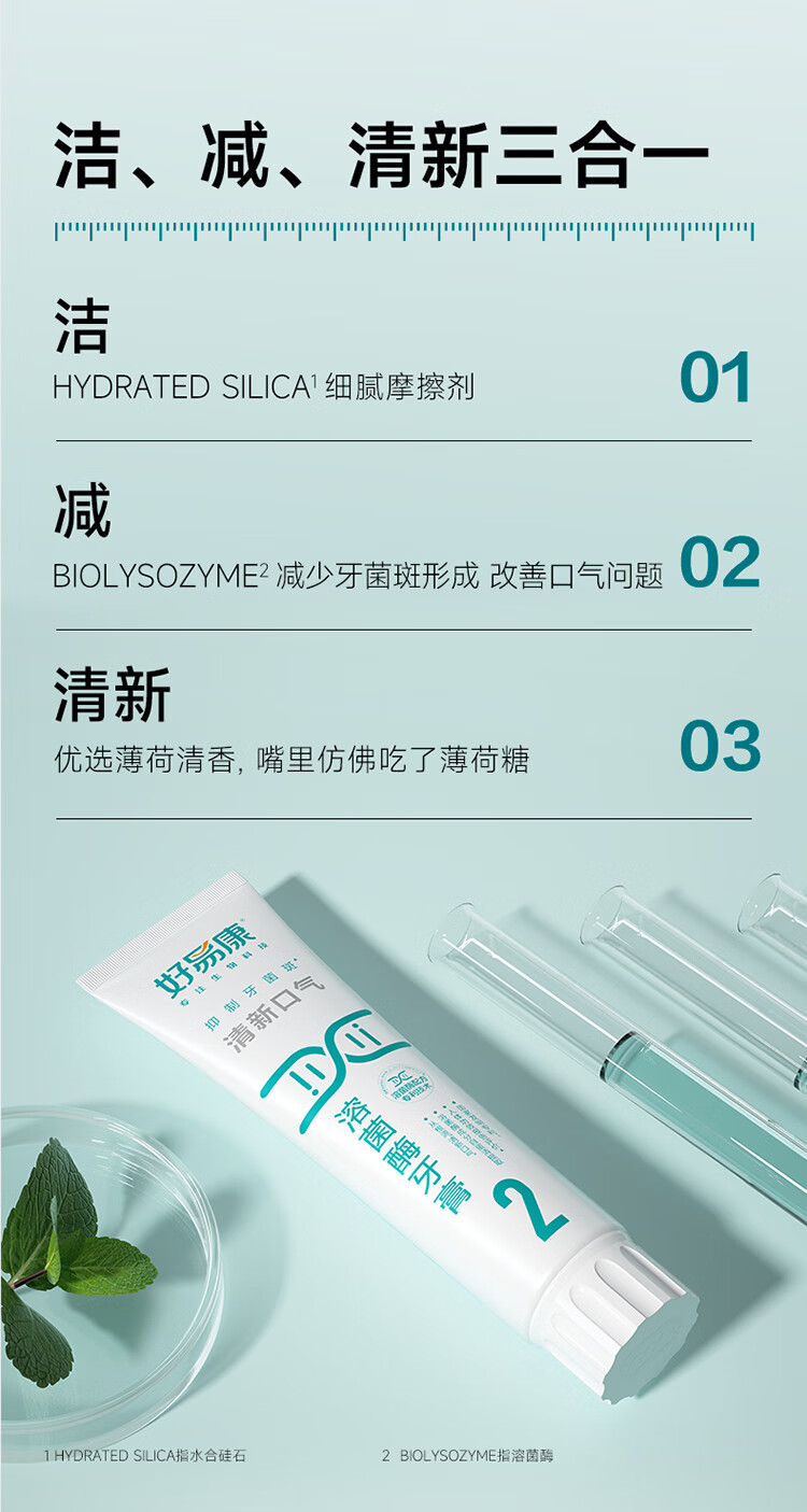 好易康溶菌酶牙膏 清新口气减轻口腔异味 清新净白套装【100g*3】