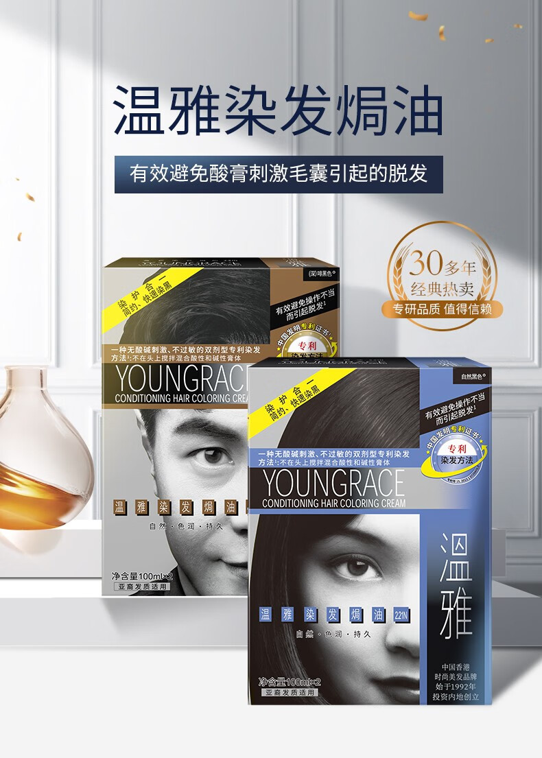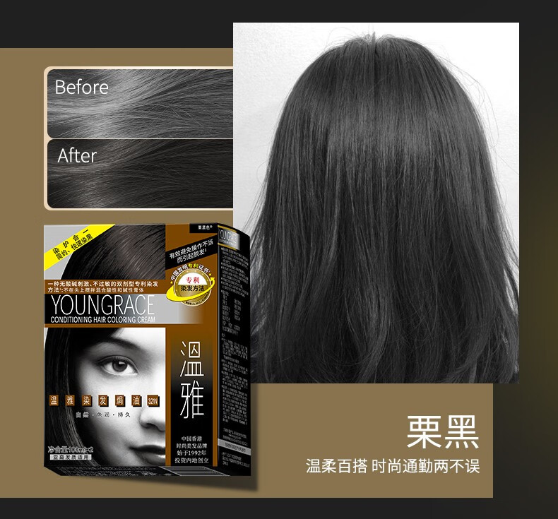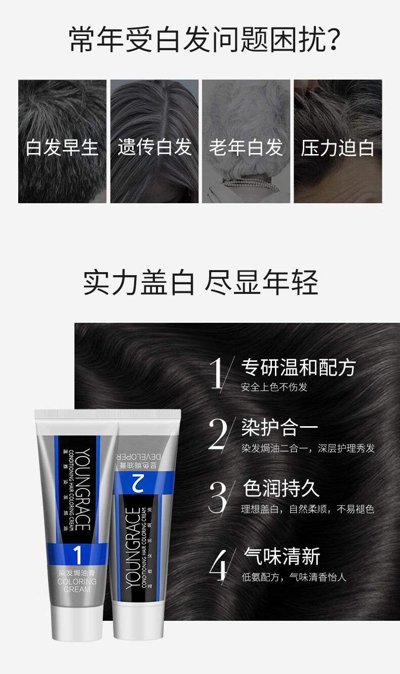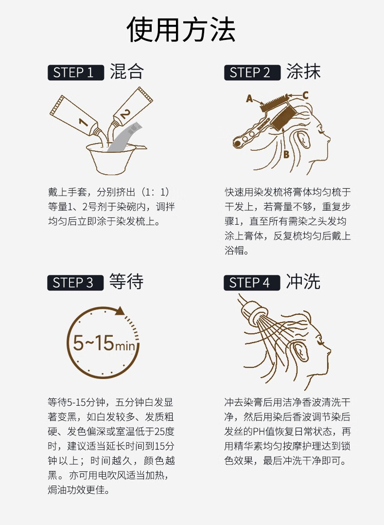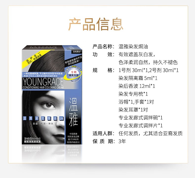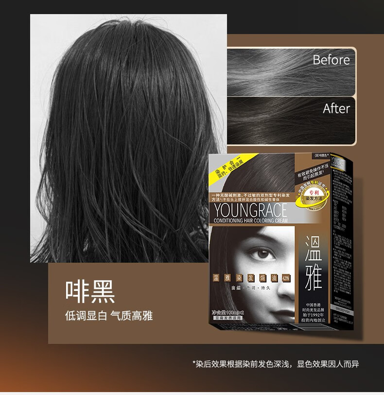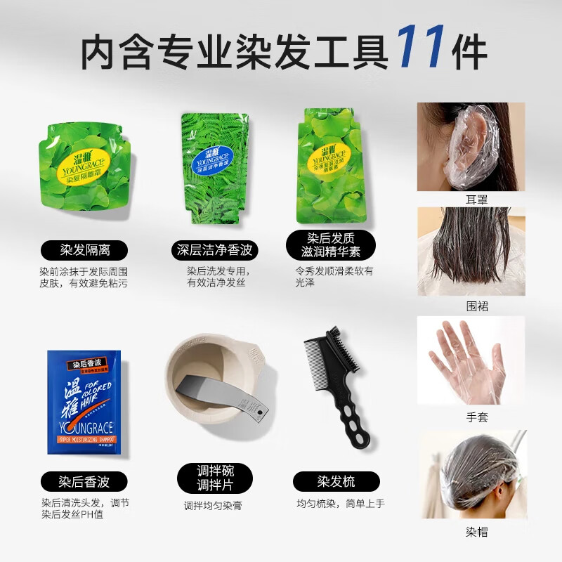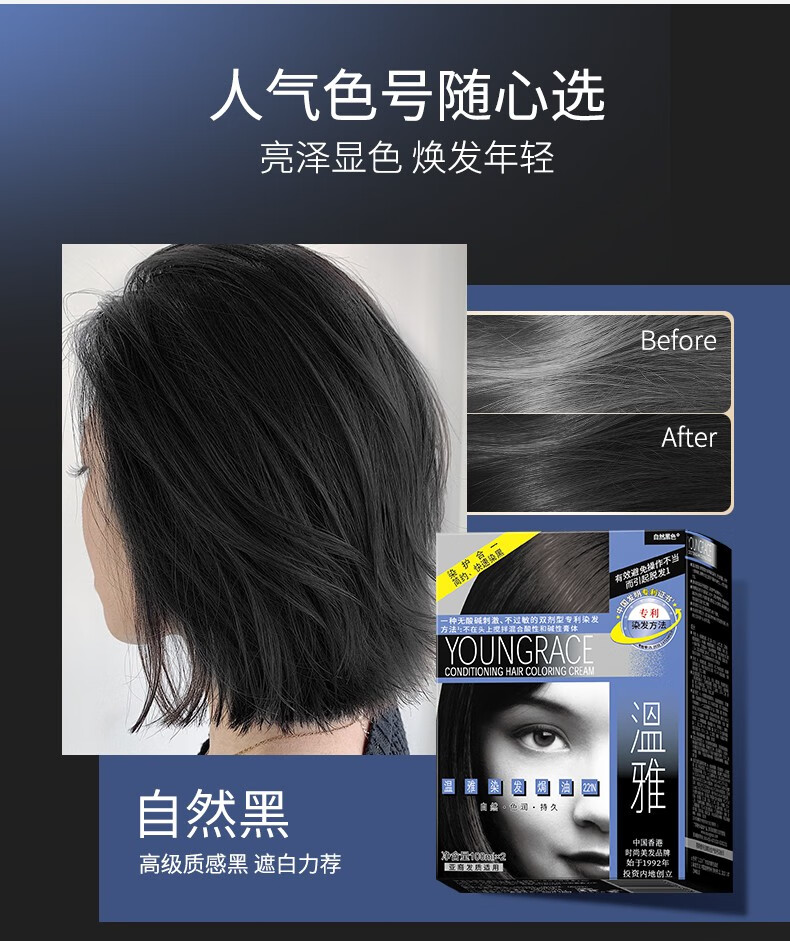 温雅染发剂染黑染发膏植物护发焗油染头膏白发遮盖神器男士女 自然黑 100ml*2支 (赠3袋染洗专配组合)